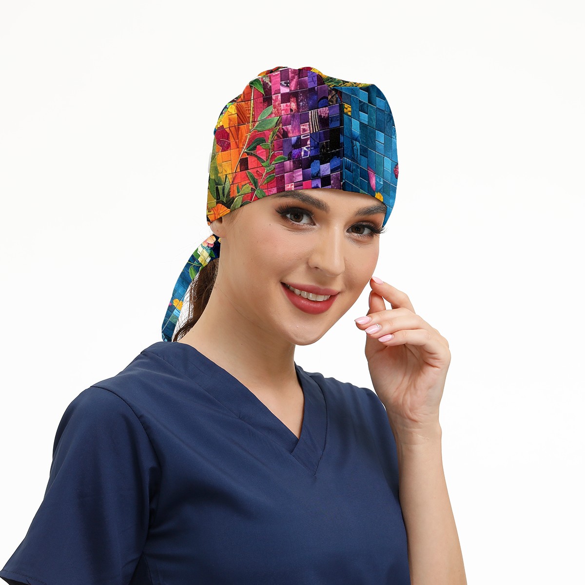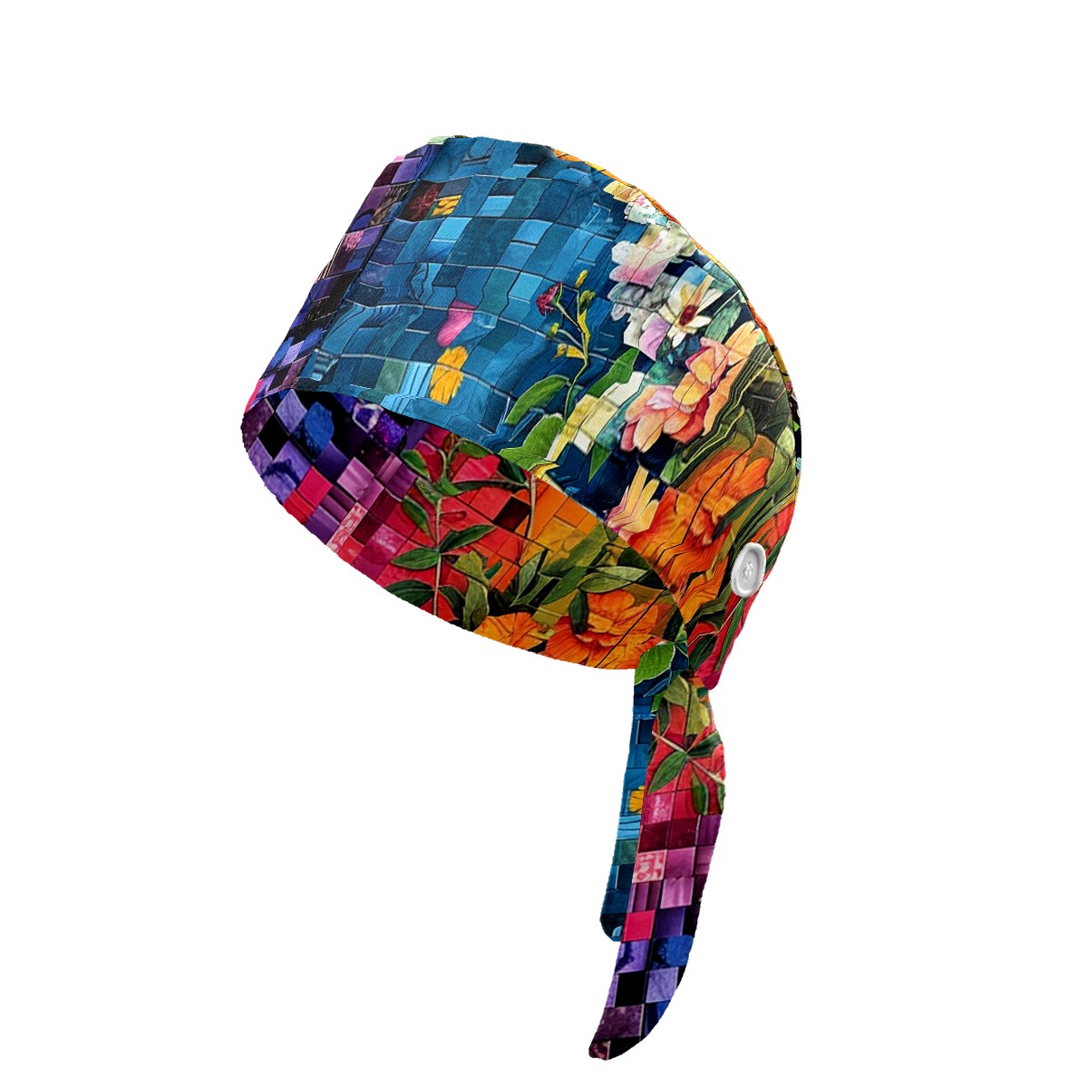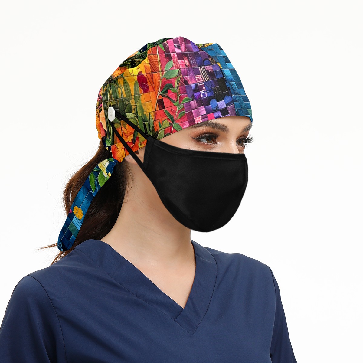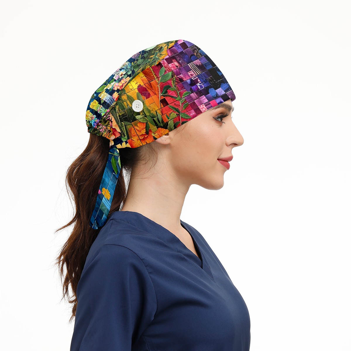 Working Caps with Button & Sweatband Satin Lined Cotton Adjustable Nurse Hats Elastic Band Scrub Cap Surgeon Hat Artistic Floral (2)