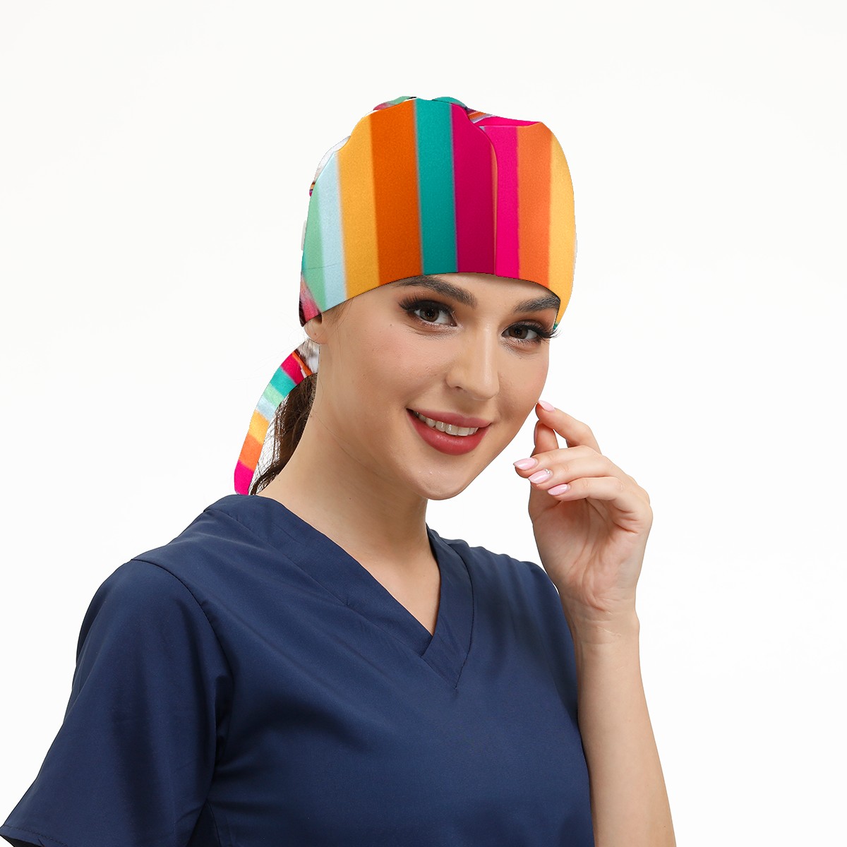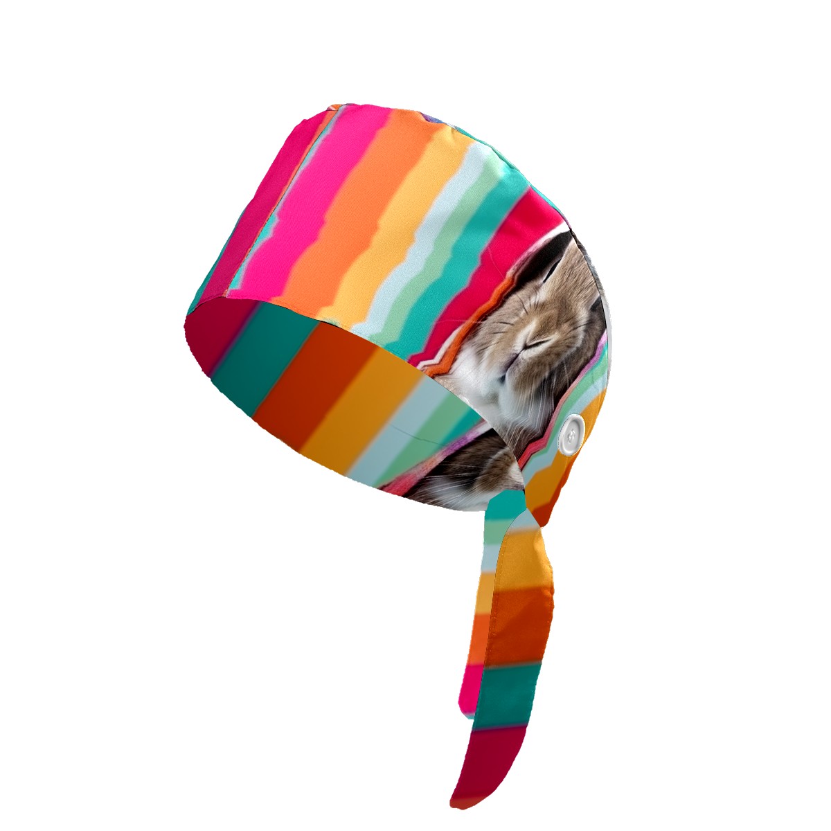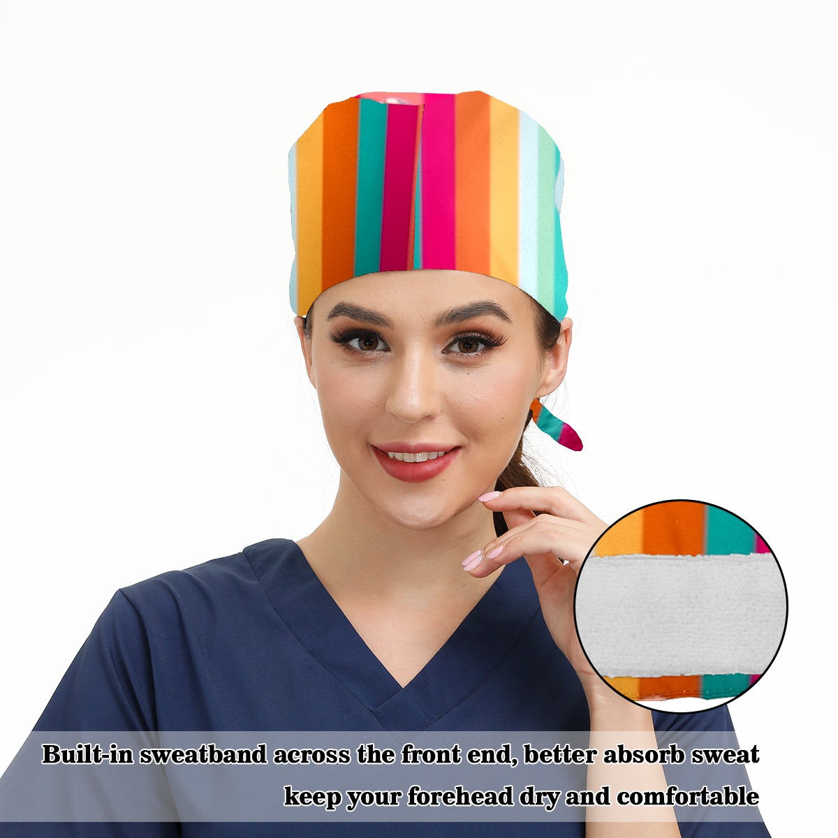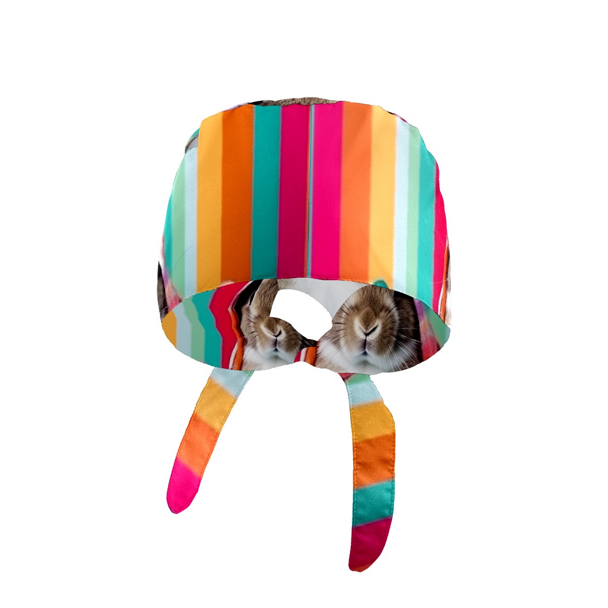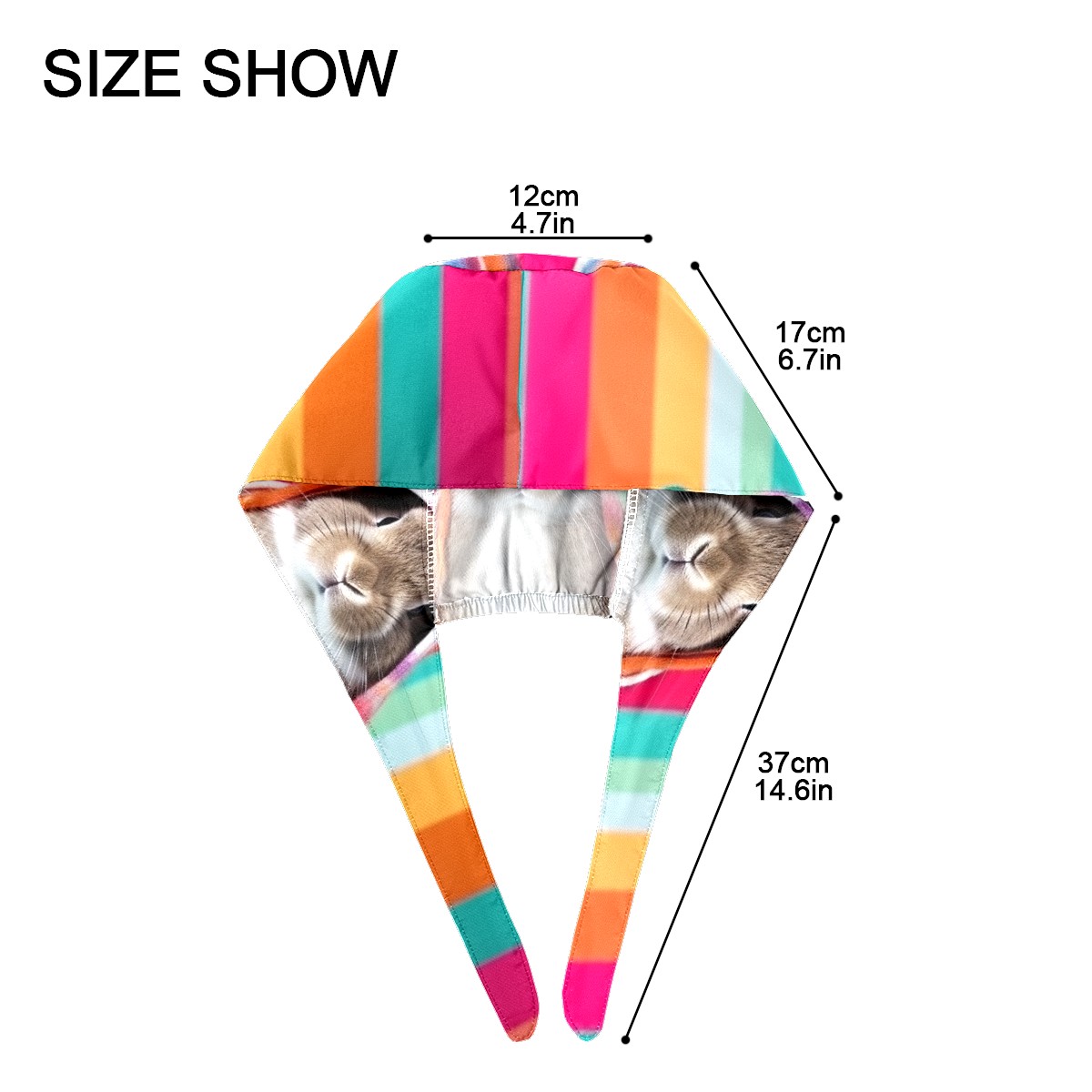 Working Caps with Button & Sweatband Satin Lined Cotton Adjustable Nurse Hats Elastic Band Scrub Cap Surgeon Hat Easter Bunny (98)