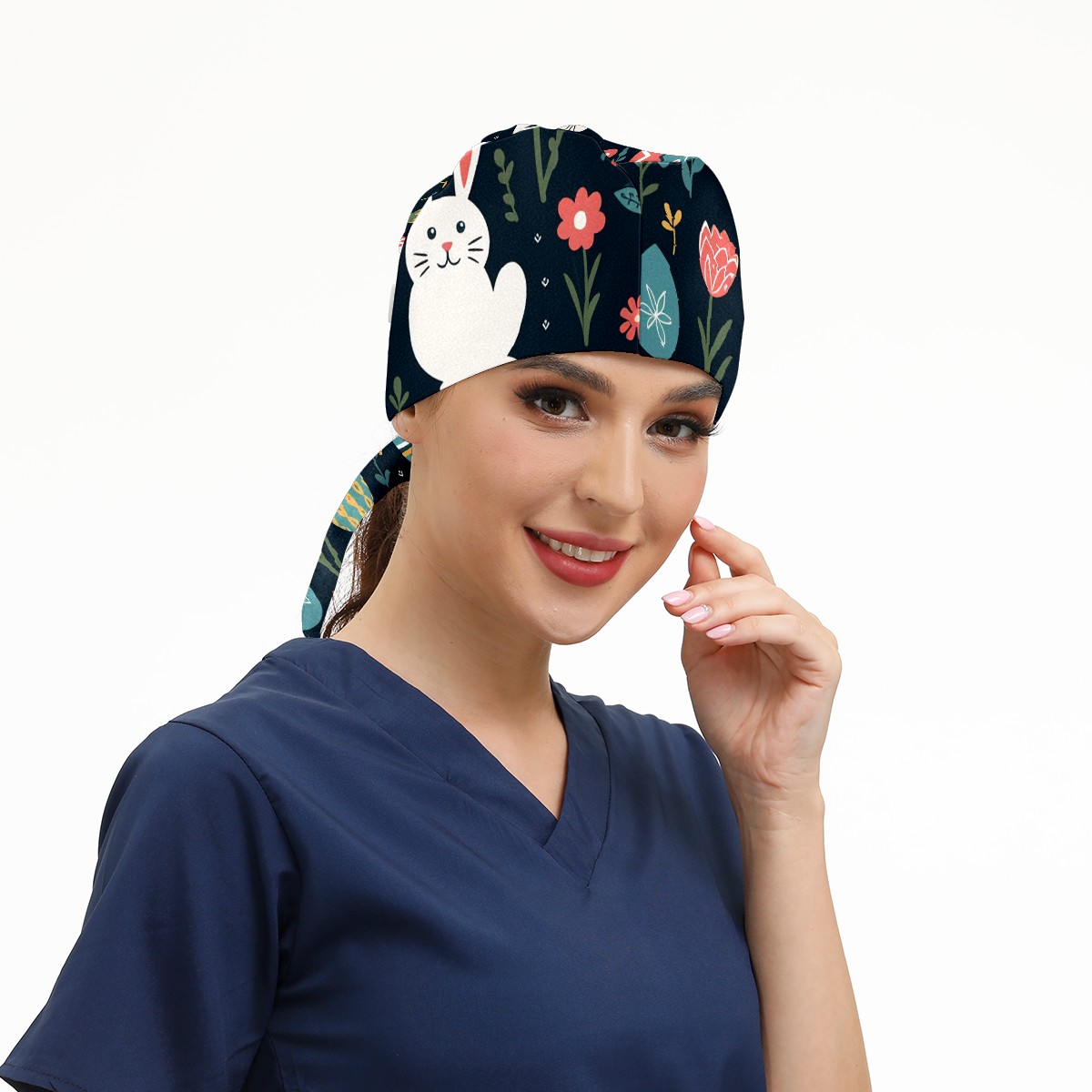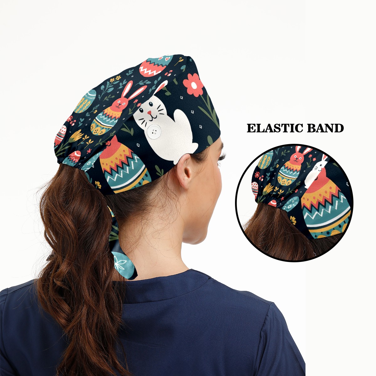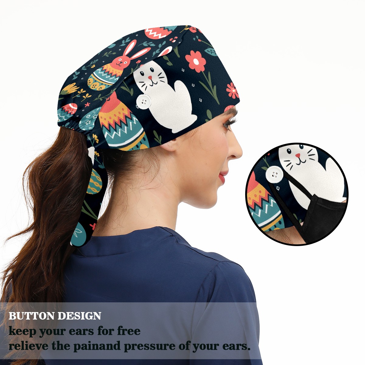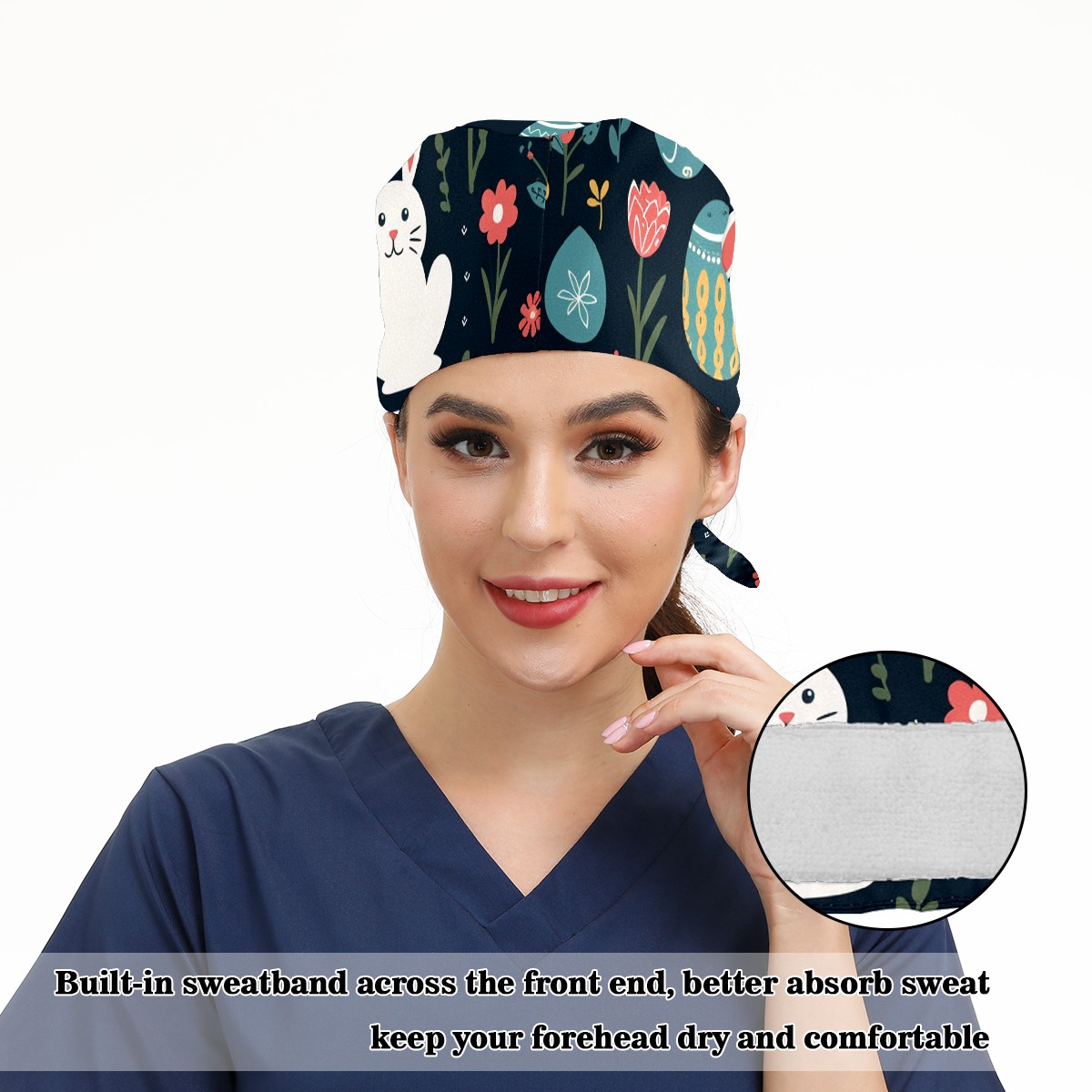 Working Caps with Button & Sweatband Satin Lined Cotton Adjustable Nurse Hats Elastic Band Scrub Cap Surgeon Hat Easter (178)
