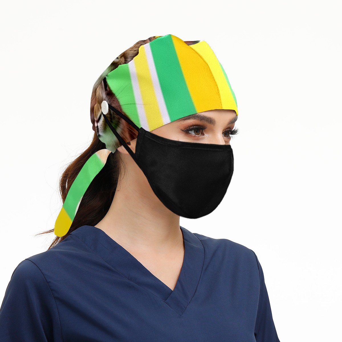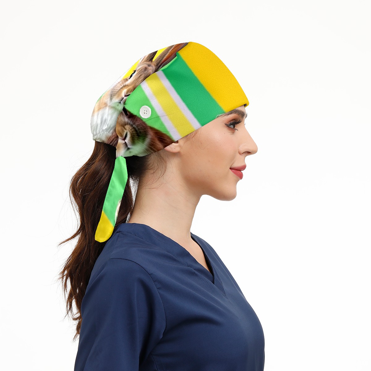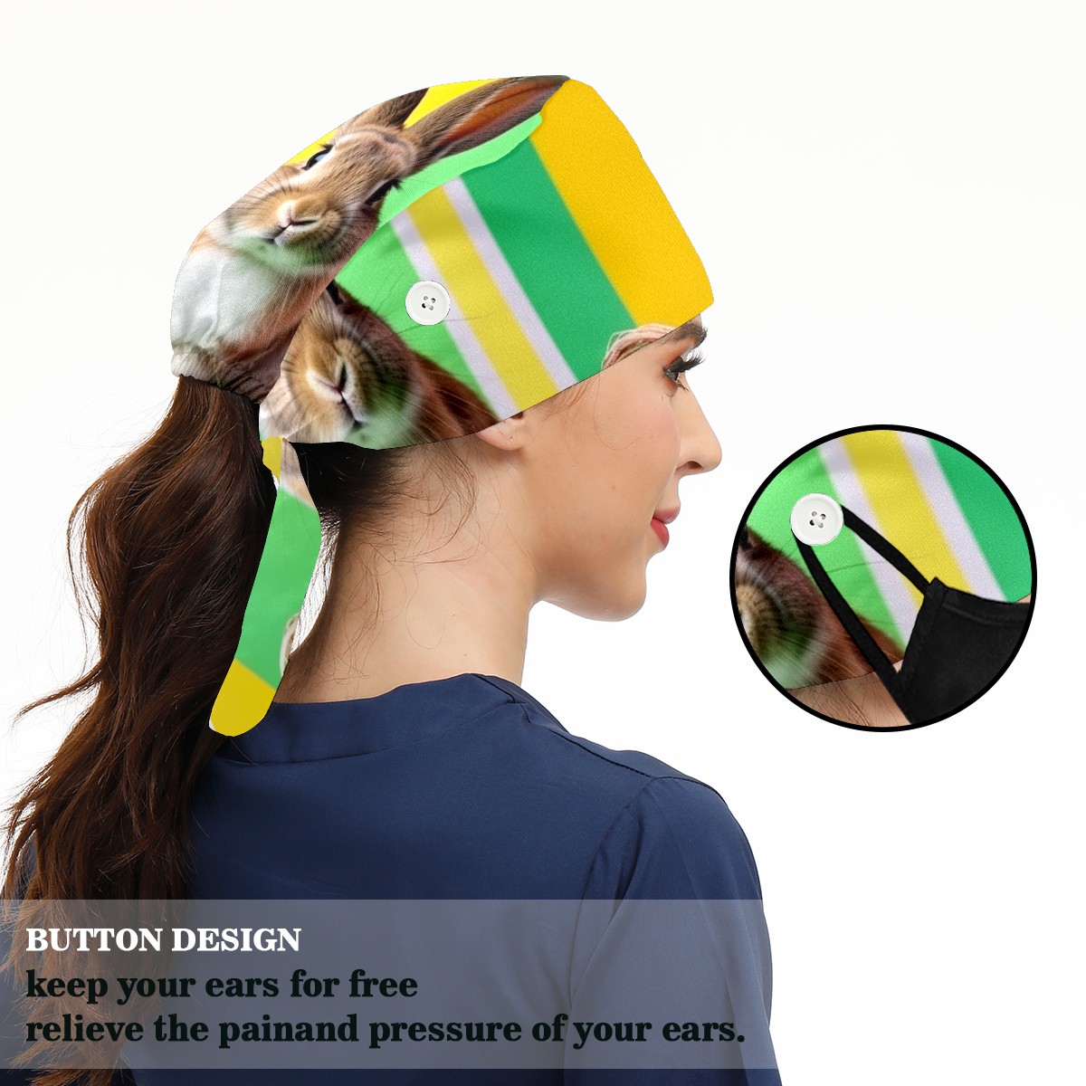 Working Caps with Button & Sweatband Satin Lined Cotton Adjustable Nurse Hats Elastic Band Scrub Cap Surgeon Hat Easter (107)
