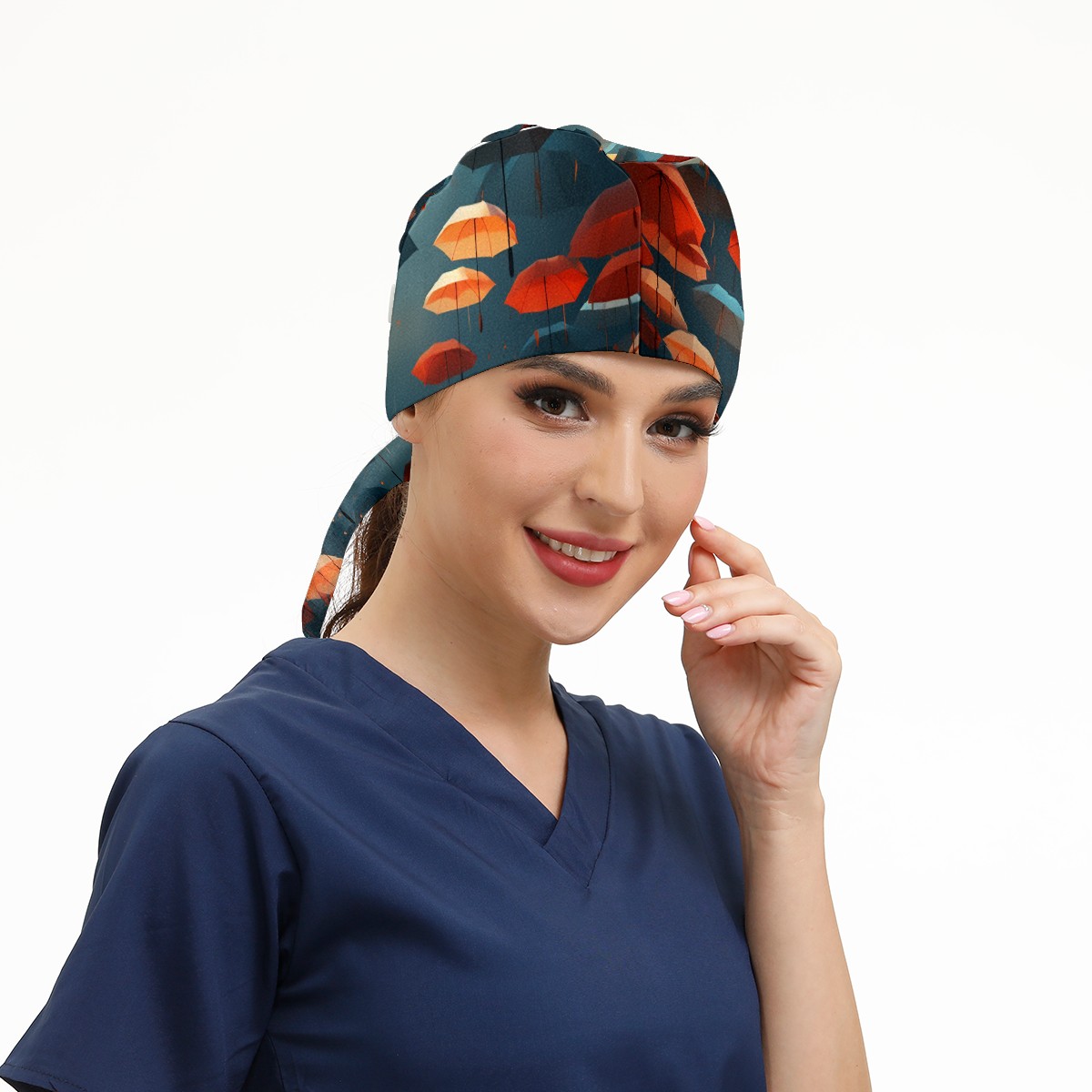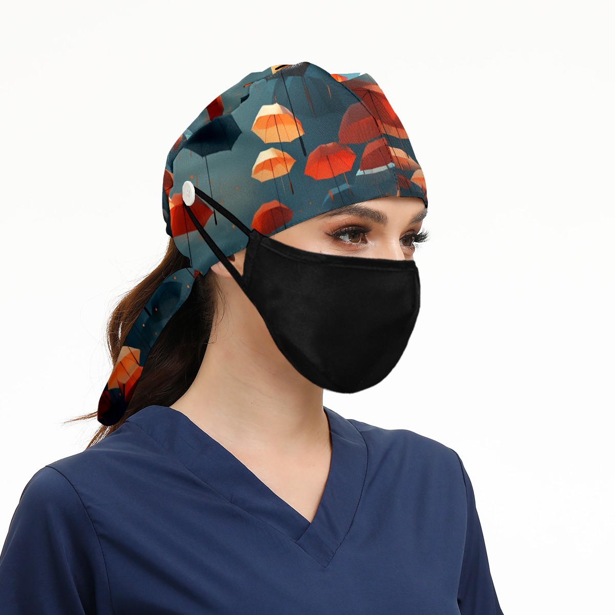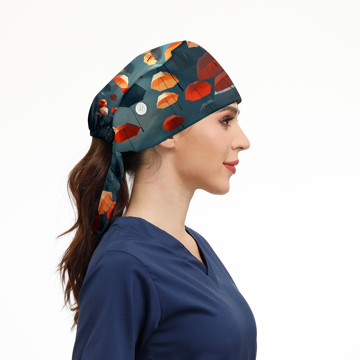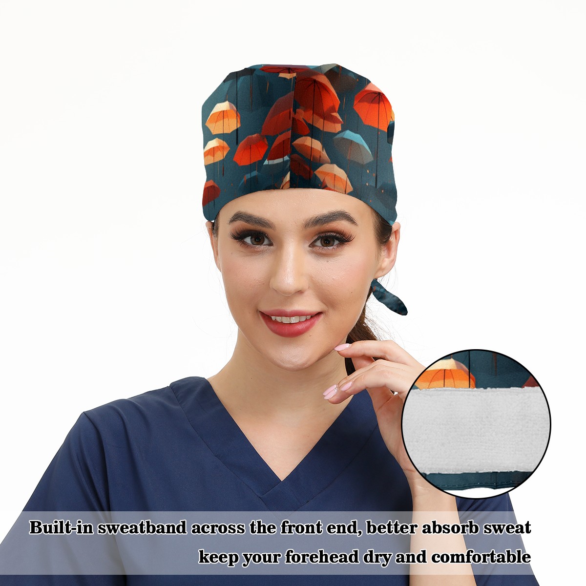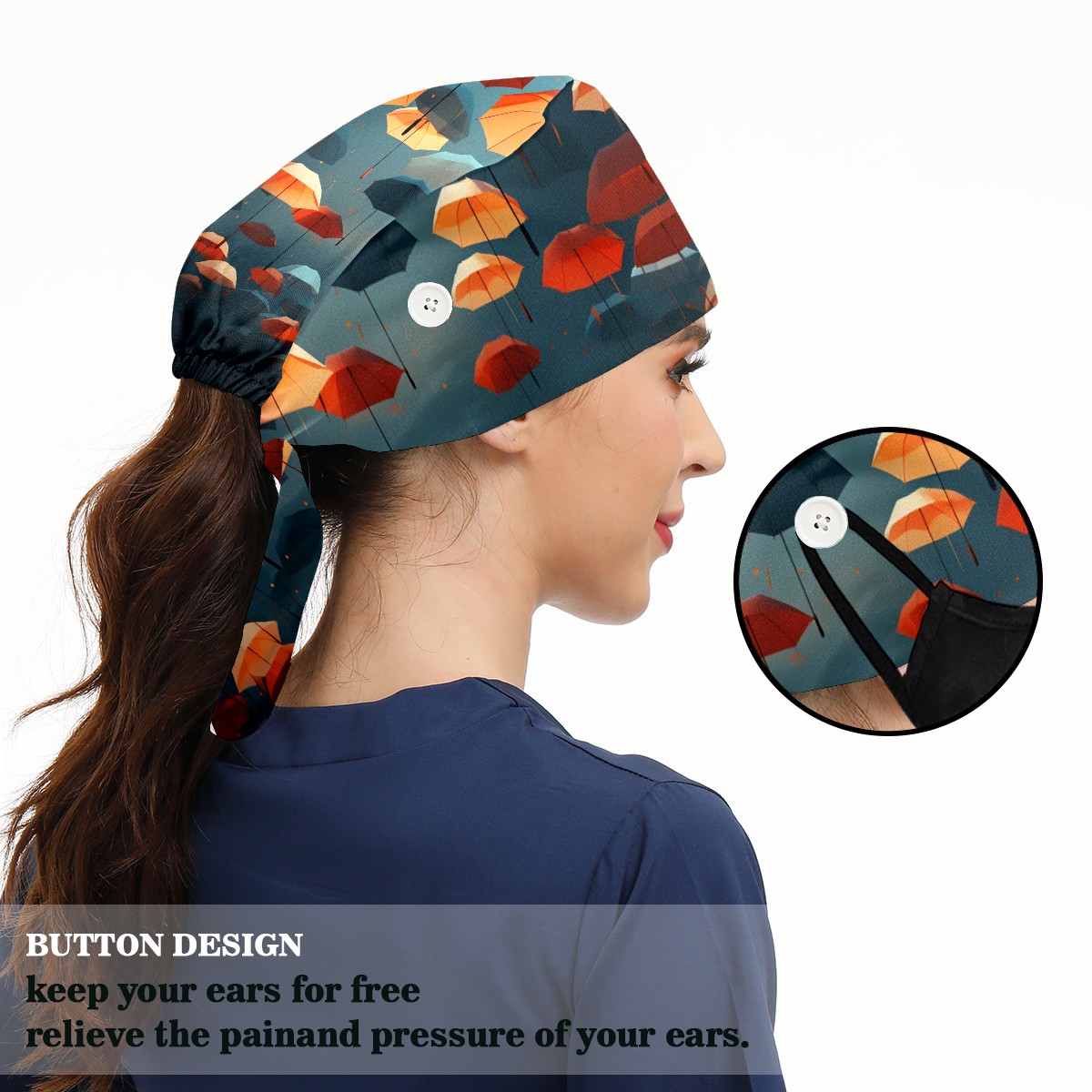Working Caps with Button & Sweatband Satin Lined Cotton Adjustable Nurse Hats Elastic Band Scrub Cap Surgeon Hat Umbrellas