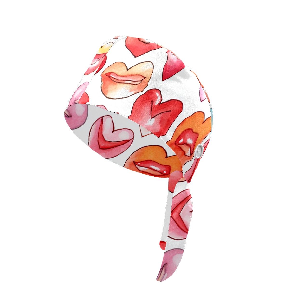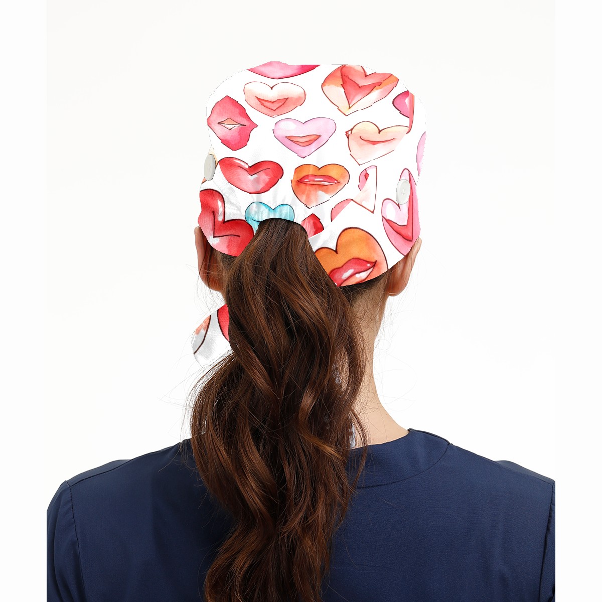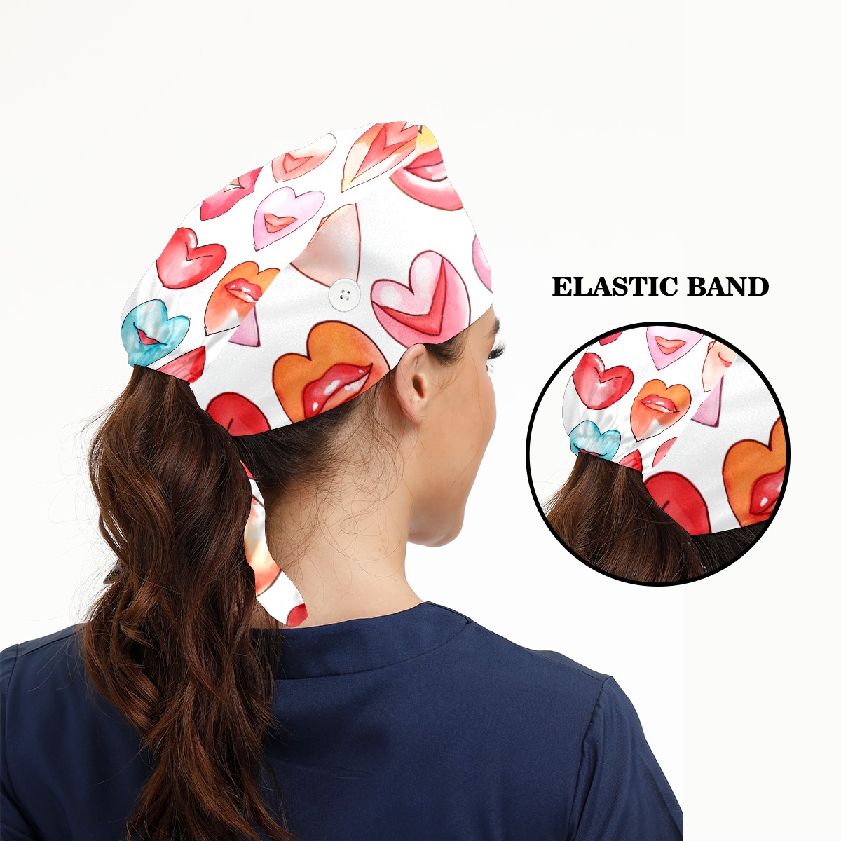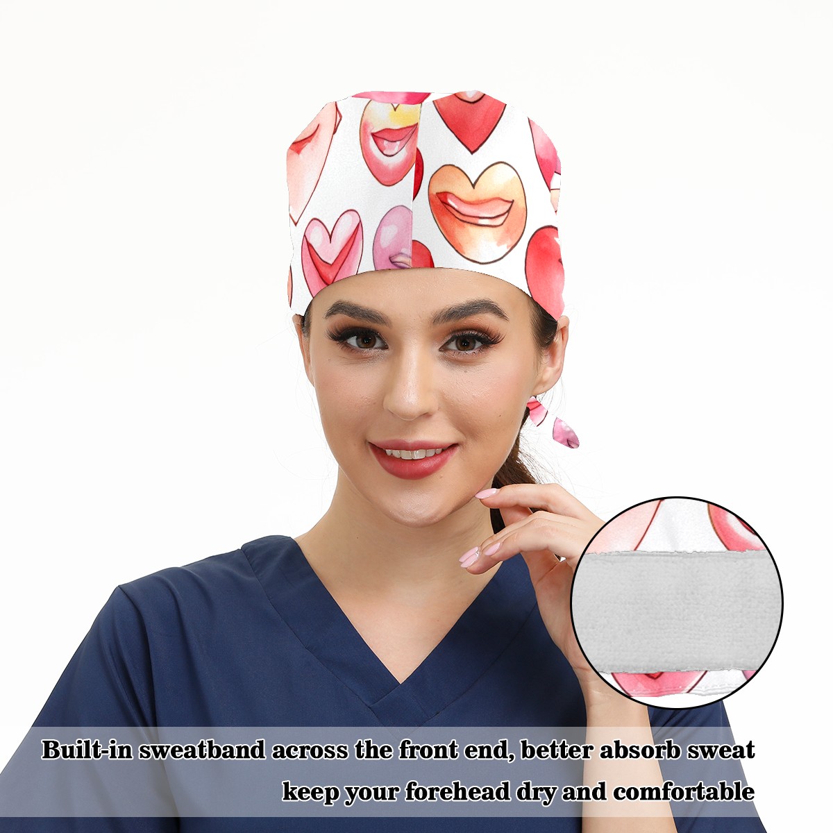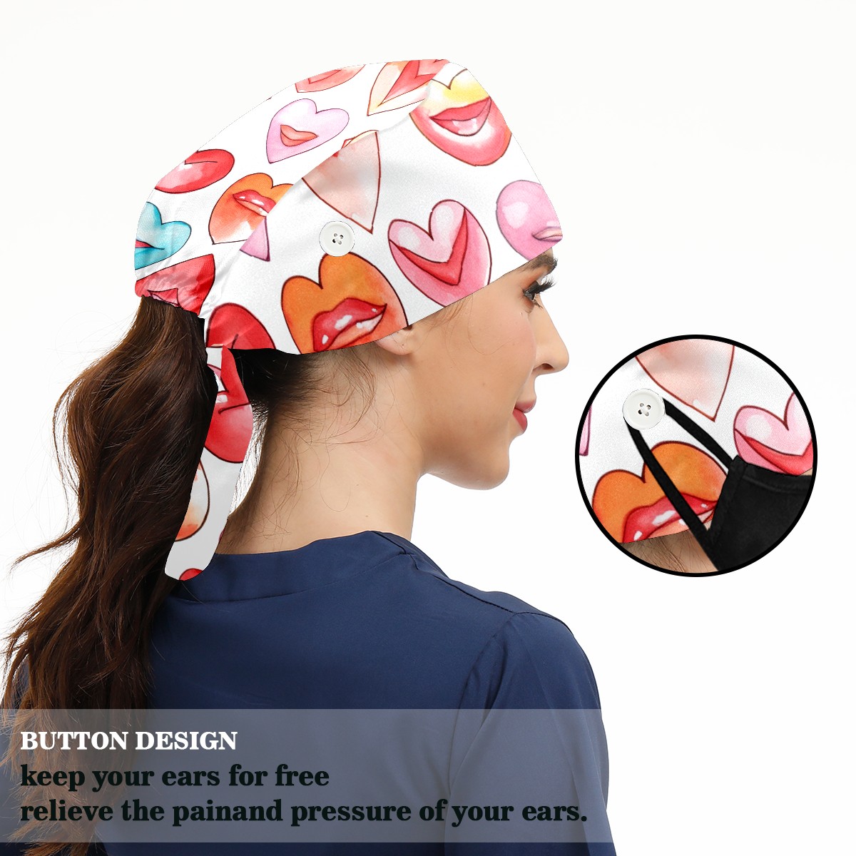 Working Caps with Button & Sweatband Satin Lined Cotton Adjustable Nurse Hats Elastic Band Scrub Cap Surgeon Hat Love