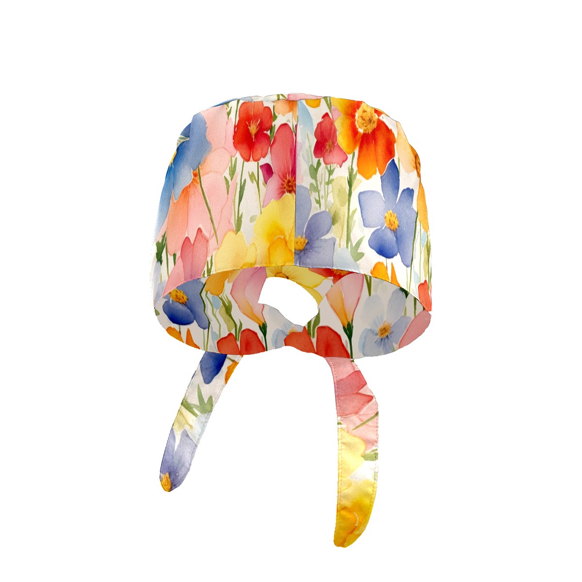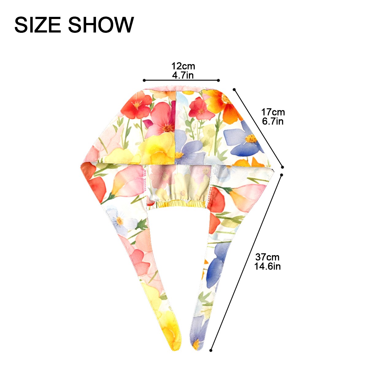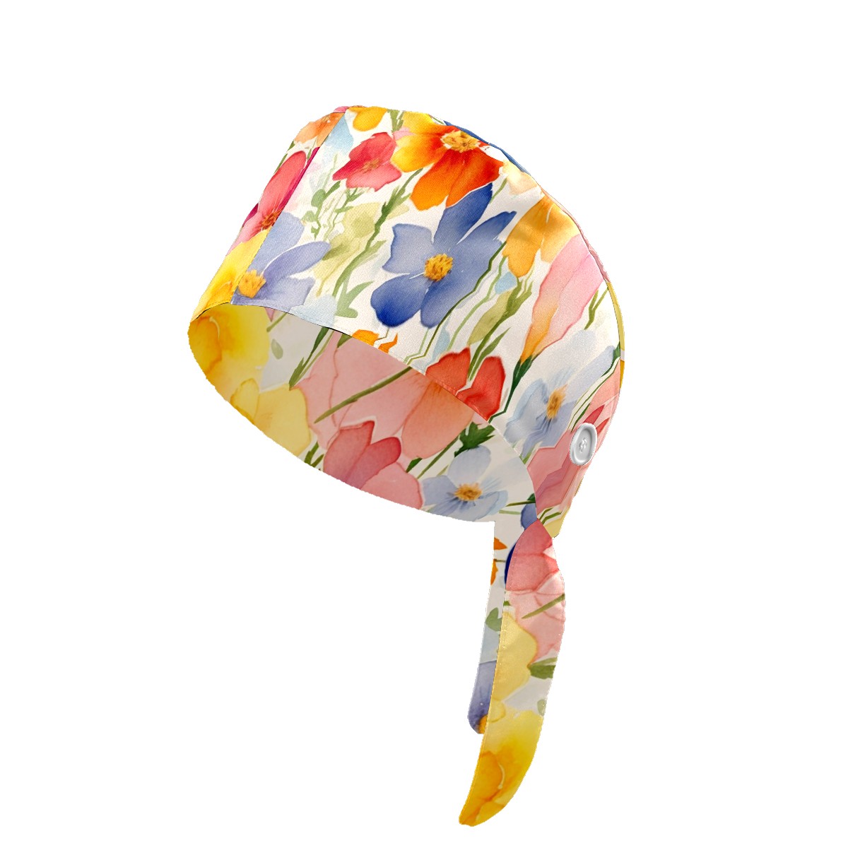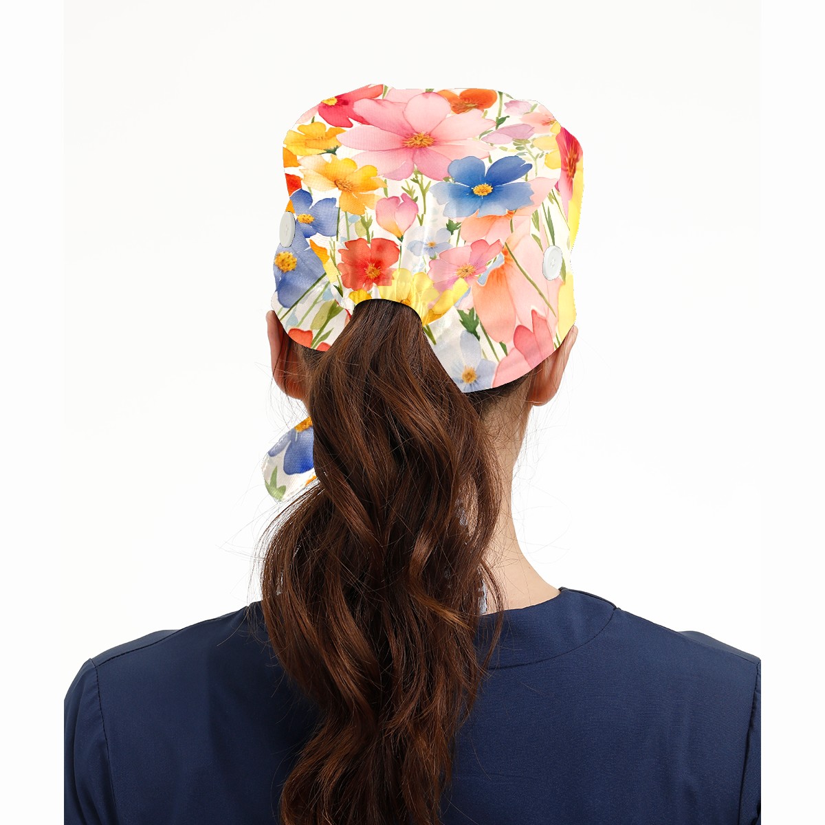 Working Caps with Button & Sweatband Satin Lined Cotton Adjustable Nurse Hats Elastic Band Scrub Cap Surgeon Hat Flowers 12