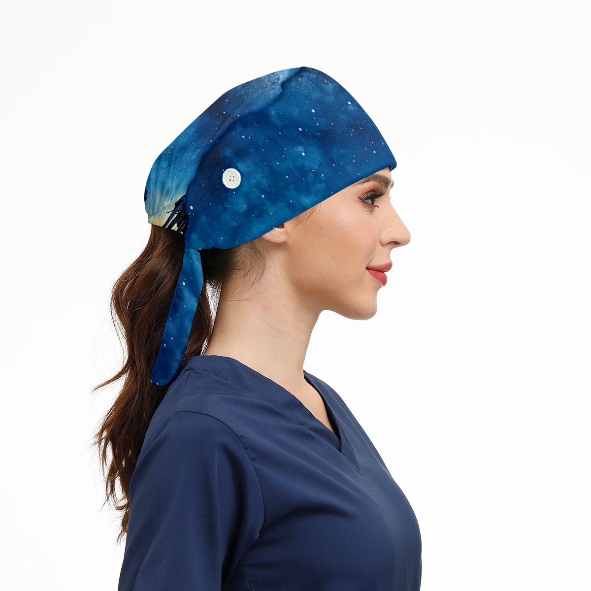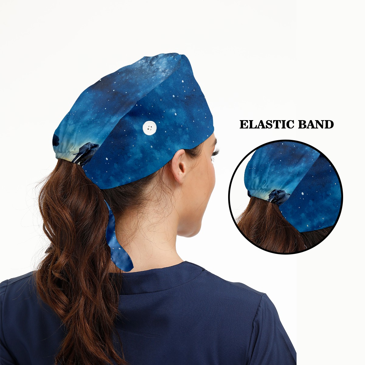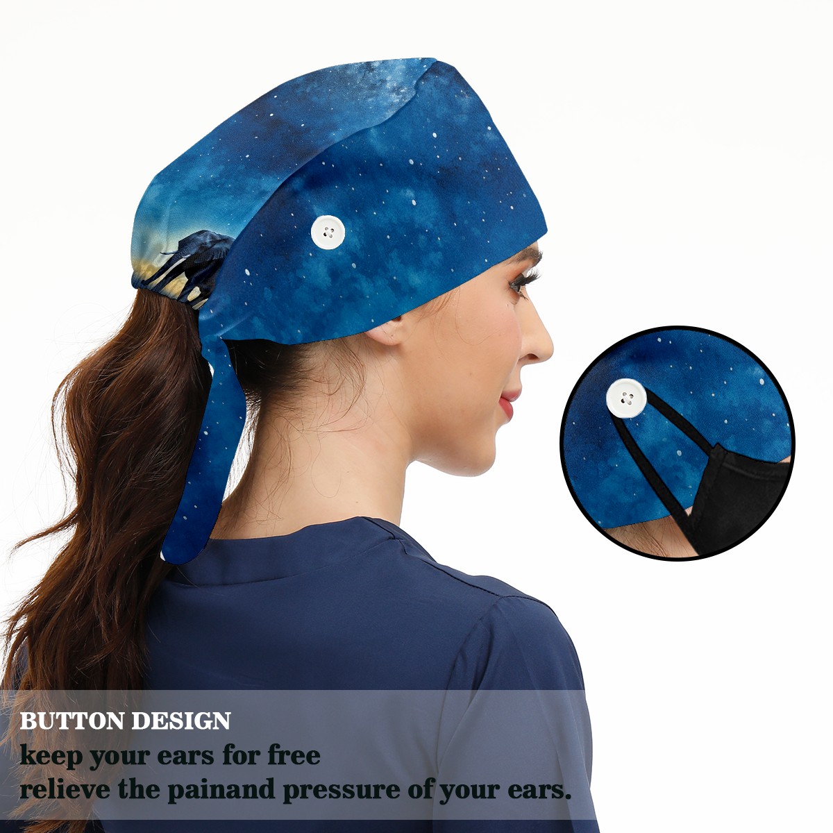 Working Caps with Button & Sweatband Satin Lined Cotton Adjustable Nurse Hats Elastic Band Scrub Cap Surgeon Hat Elephant And Sky