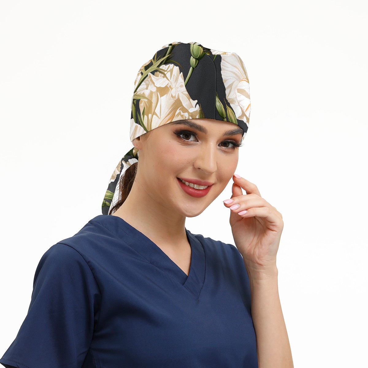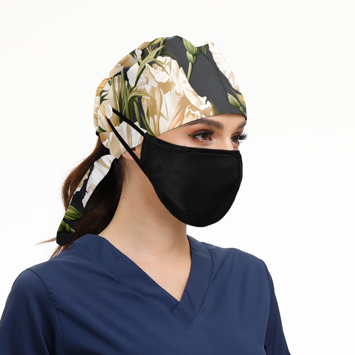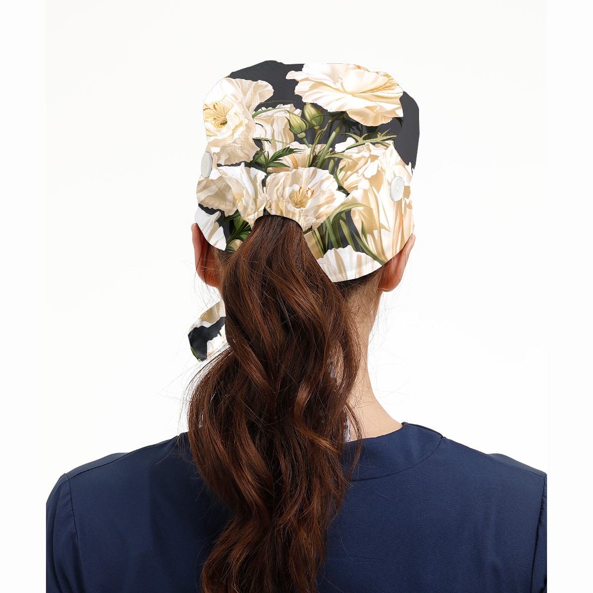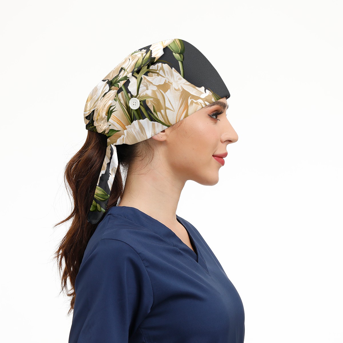 Working Caps with Button & Sweatband Satin Lined Cotton Adjustable Nurse Hats Elastic Band Scrub Cap Surgeon Hat Eustoma Bouquet
