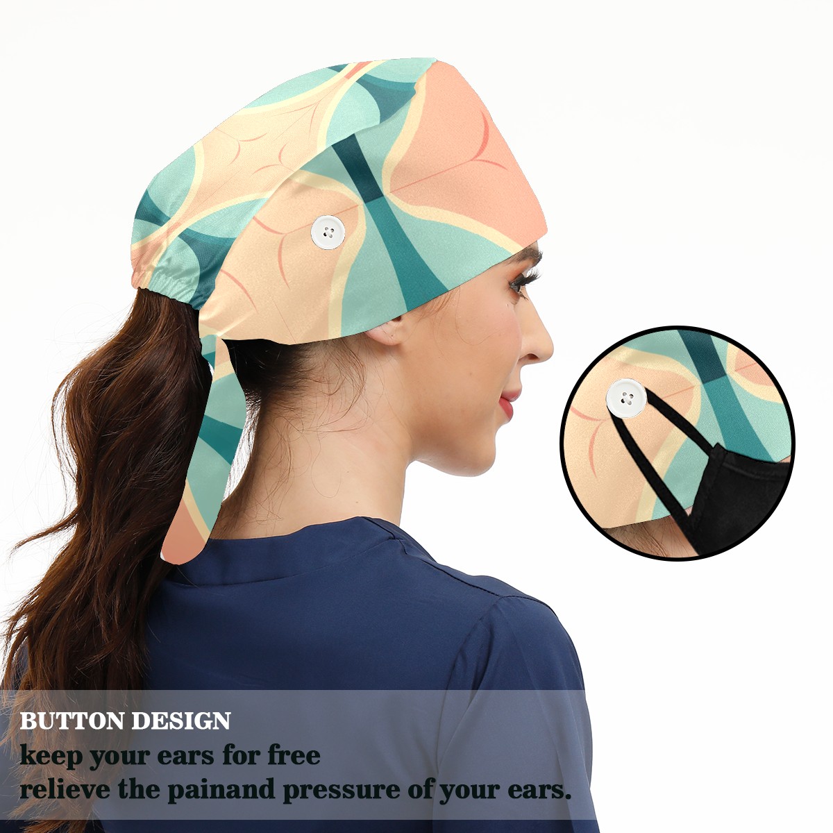 Working Caps with Button & Sweatband Satin Lined Cotton Adjustable Nurse Hats Elastic Band Scrub Cap Surgeon Hat Easter 273