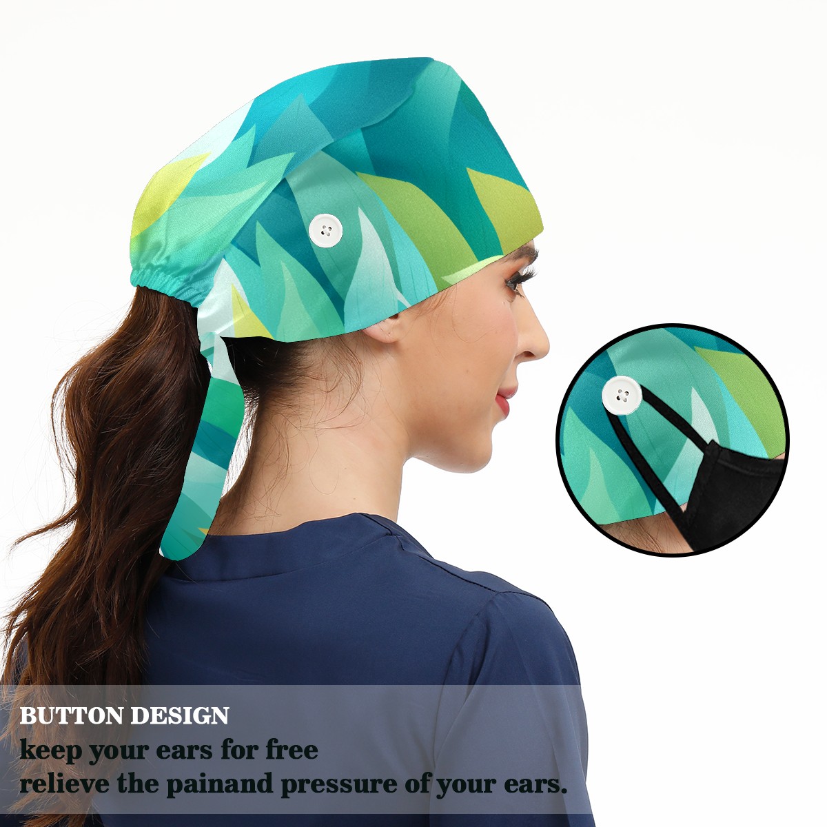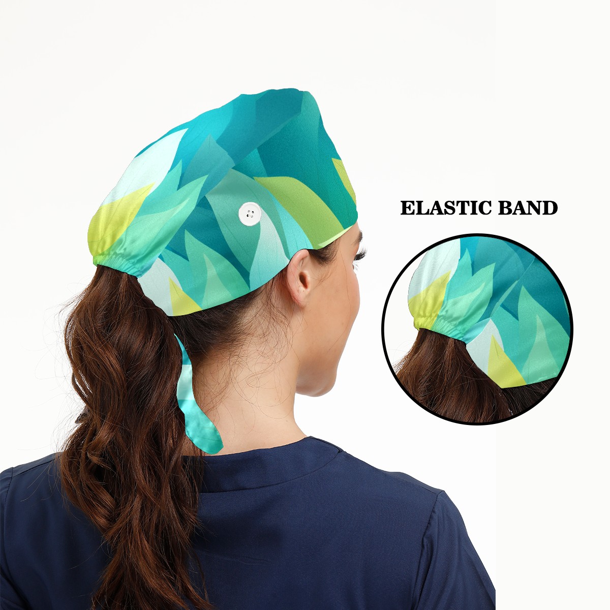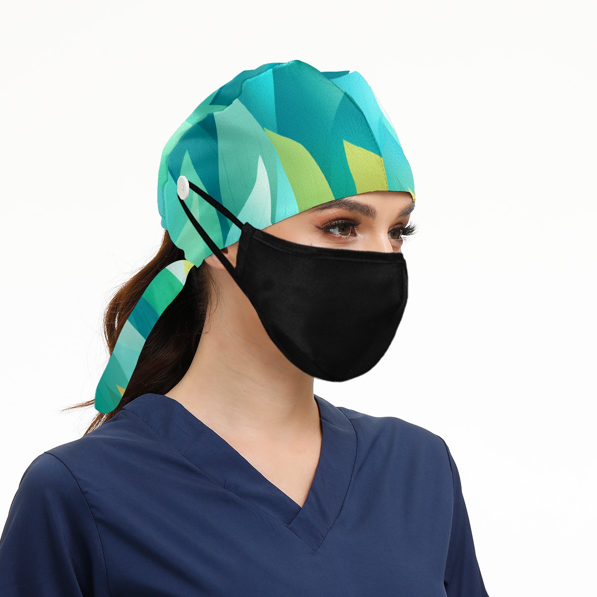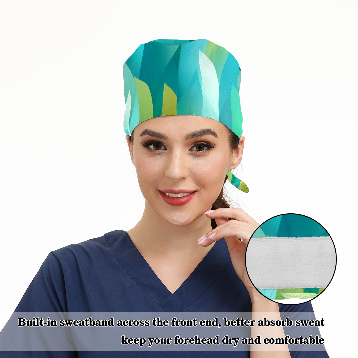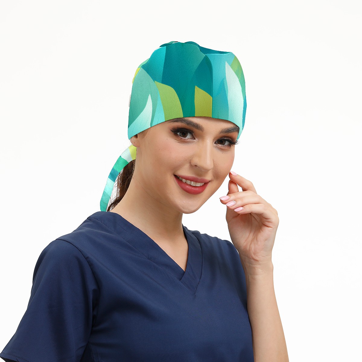 Working Caps with Button & Sweatband Satin Lined Cotton Adjustable Nurse Hats Elastic Band Scrub Cap Surgeon Hat Easter 264