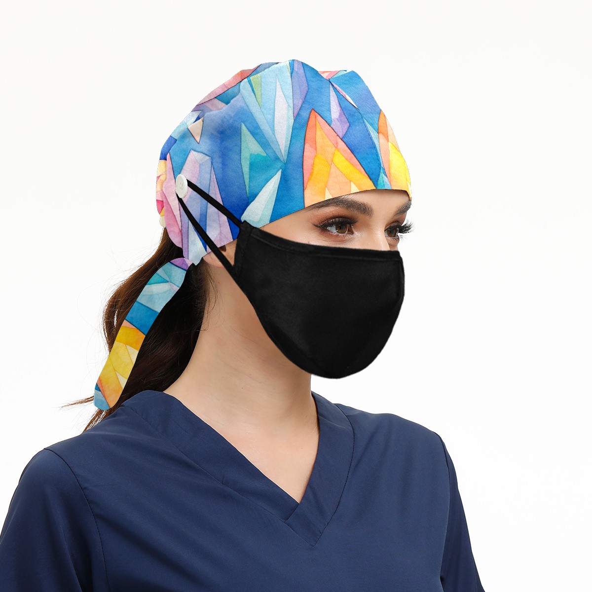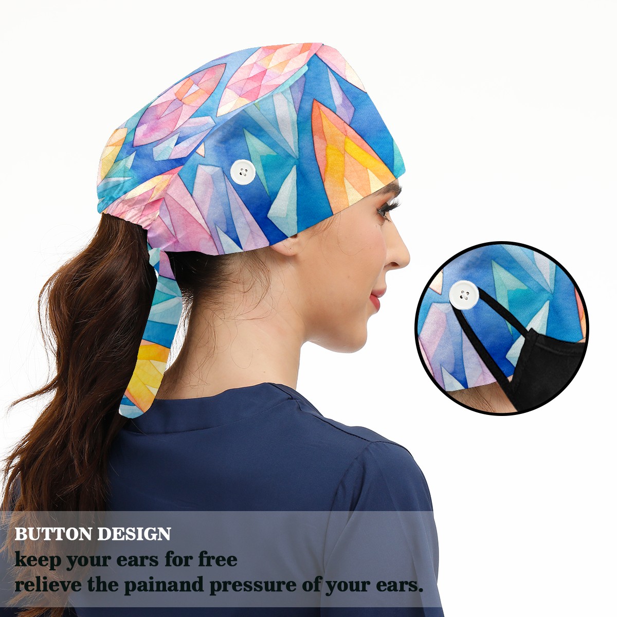 Working Caps with Button & Sweatband Satin Lined Cotton Adjustable Nurse Hats Elastic Band Scrub Cap Surgeon Hat Easter 213