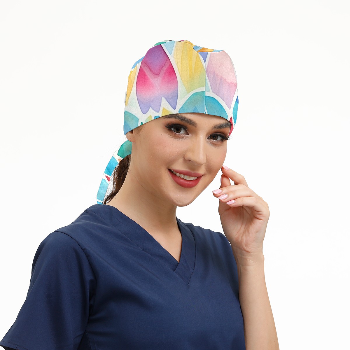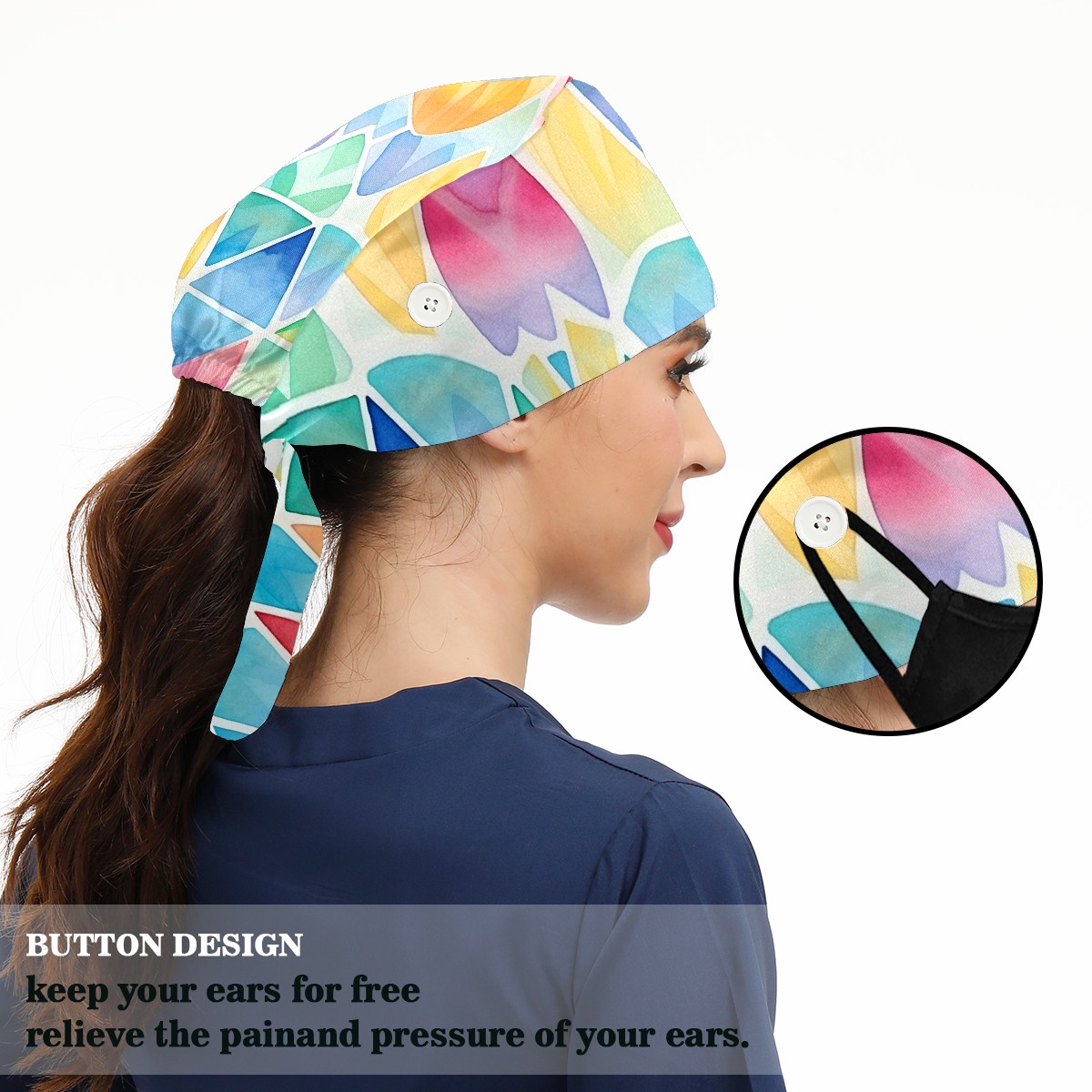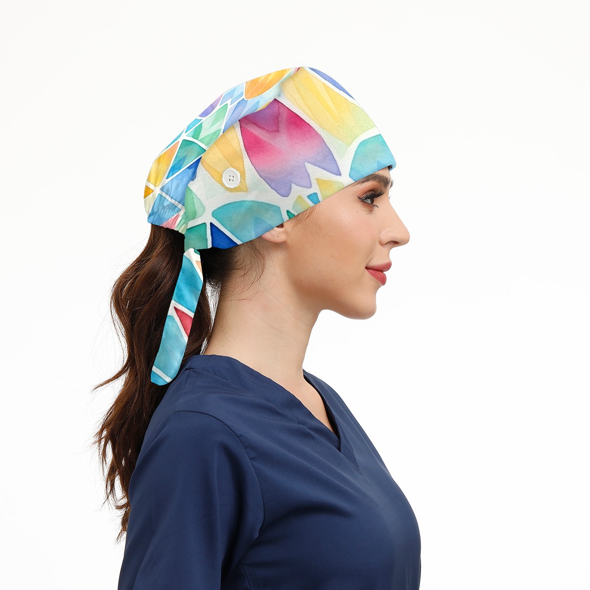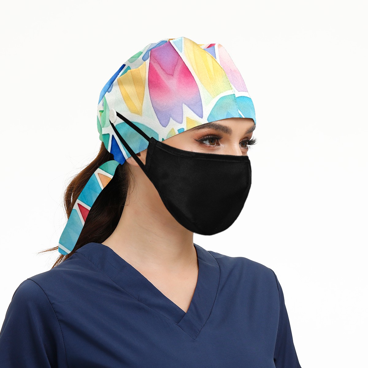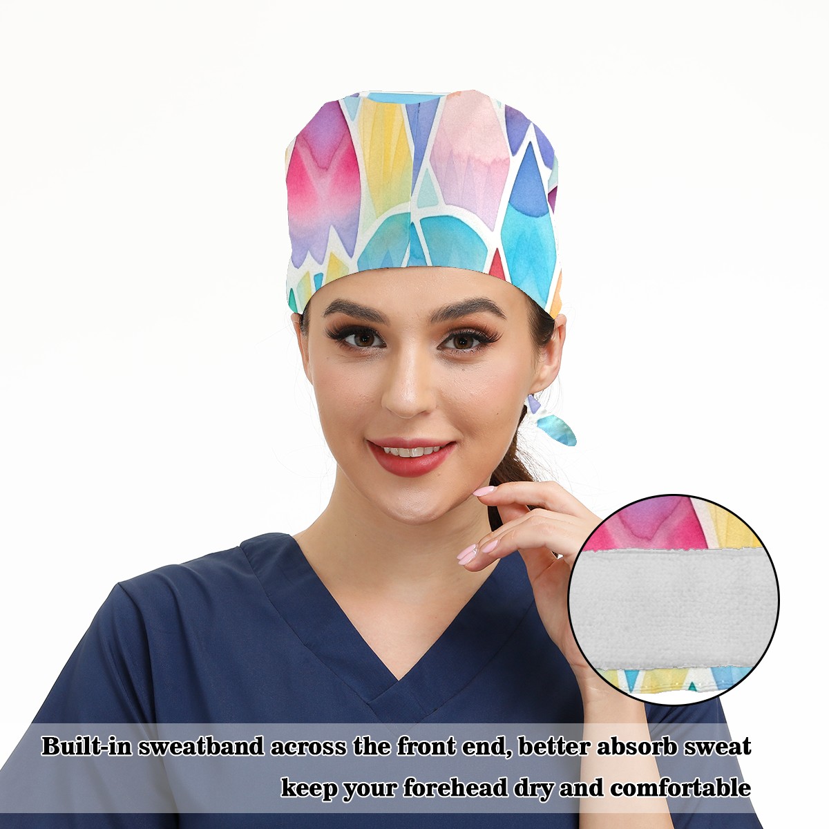 Working Caps with Button & Sweatband Satin Lined Cotton Adjustable Nurse Hats Elastic Band Scrub Cap Surgeon Hat Easter 210