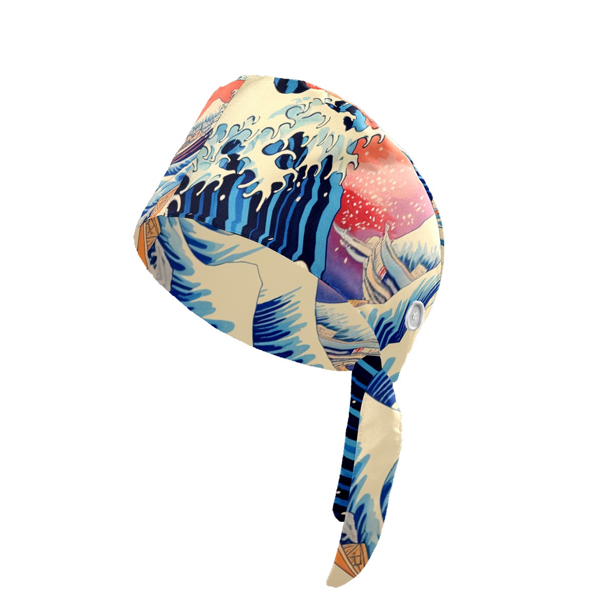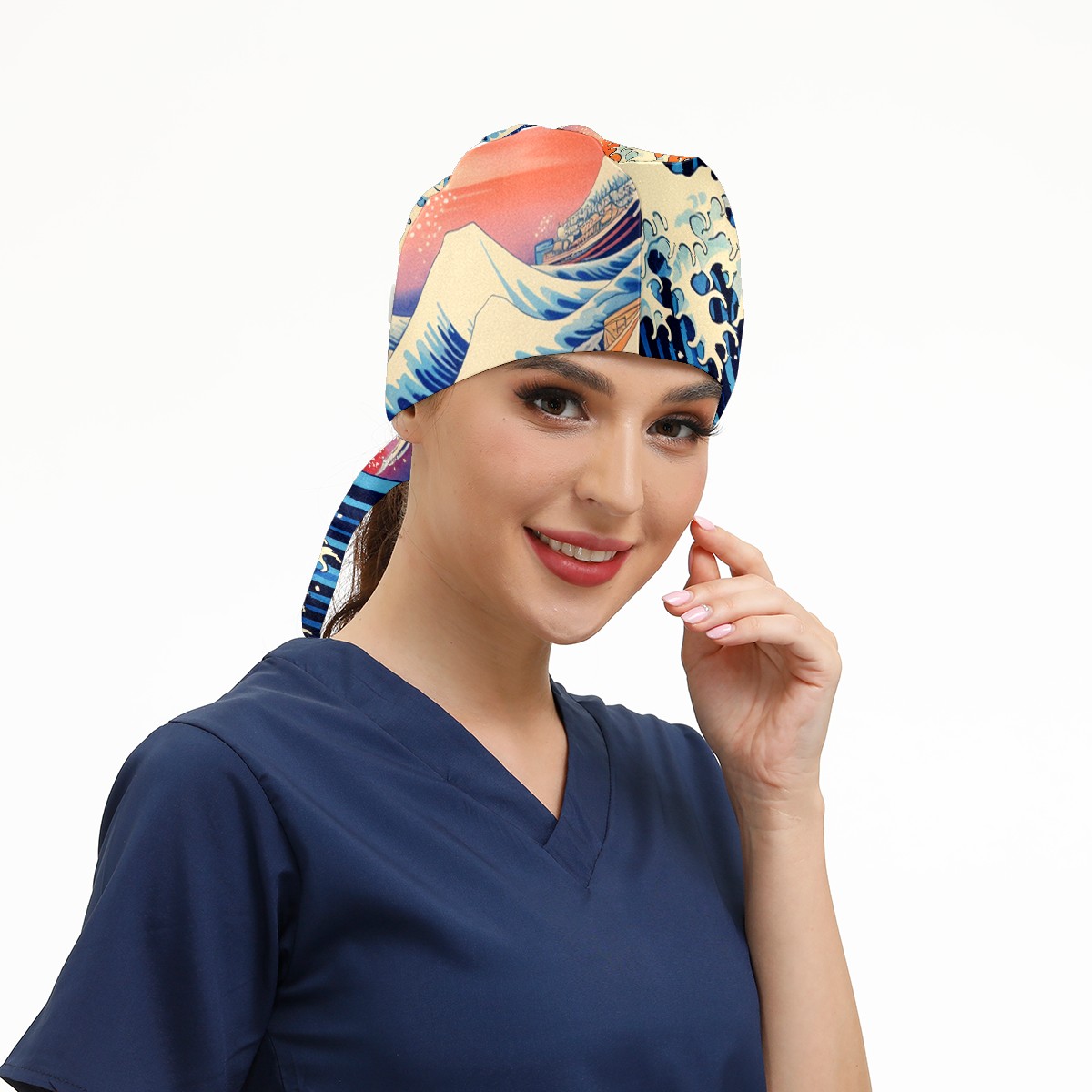 Working Caps with Button & Sweatband Satin Lined Cotton Adjustable Nurse Hats Elastic Band Scrub Cap Surgeon Hat Wave