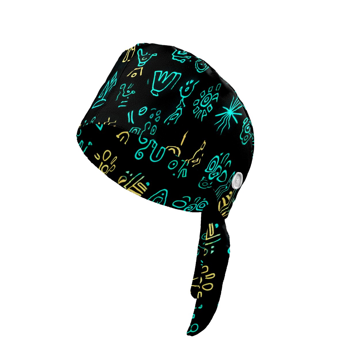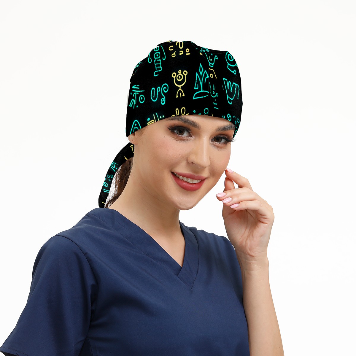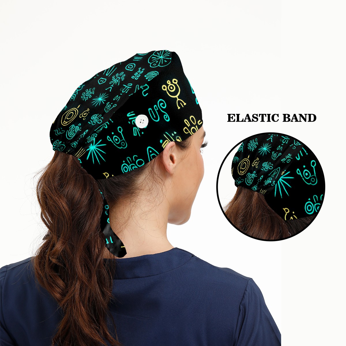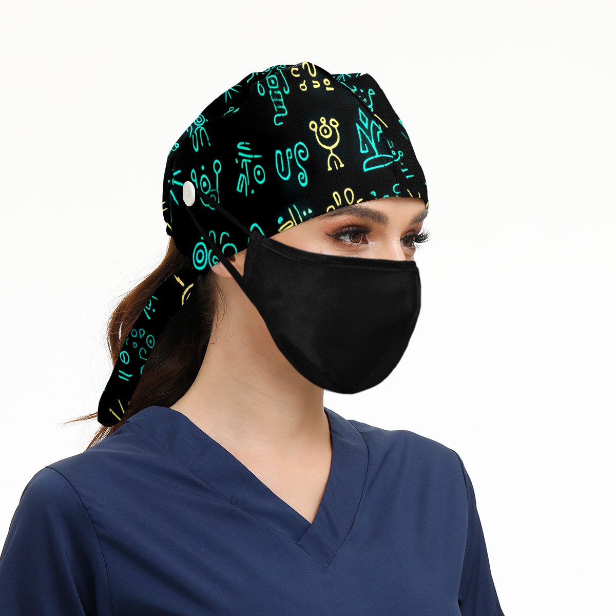 Working Caps with Button & Sweatband Satin Lined Cotton Adjustable Nurse Hats Elastic Band Scrub Cap Surgeon Hat Cave Painting