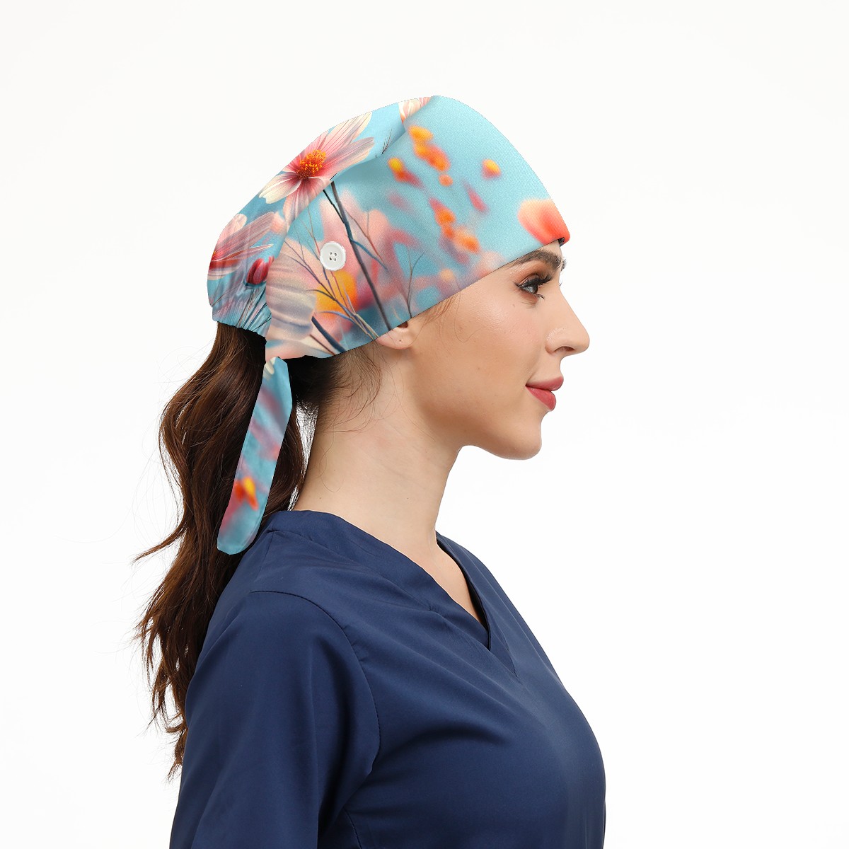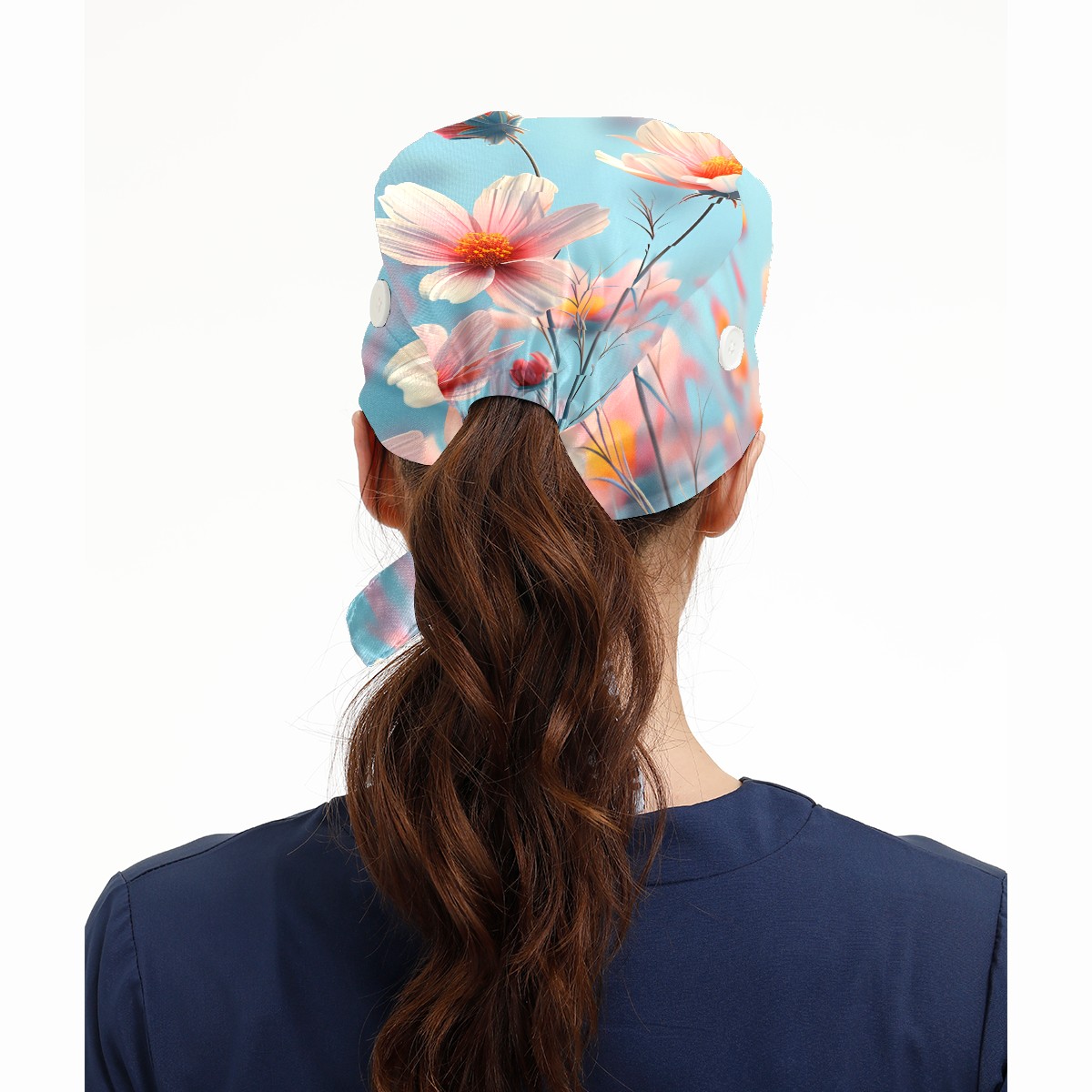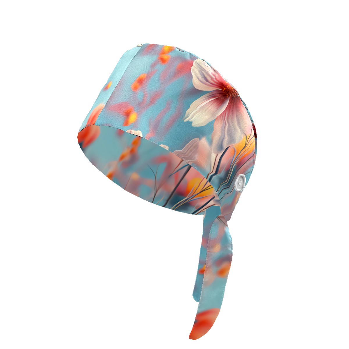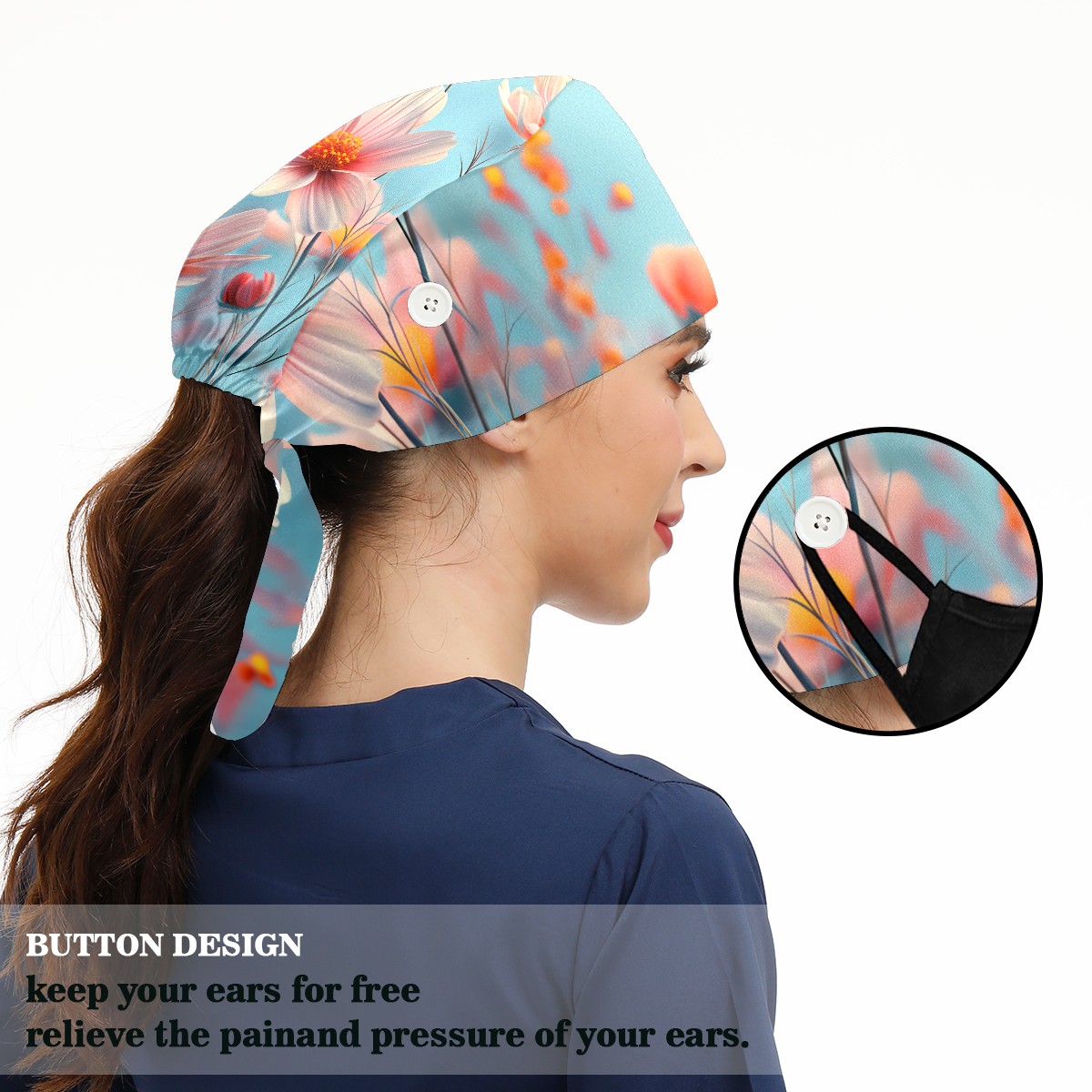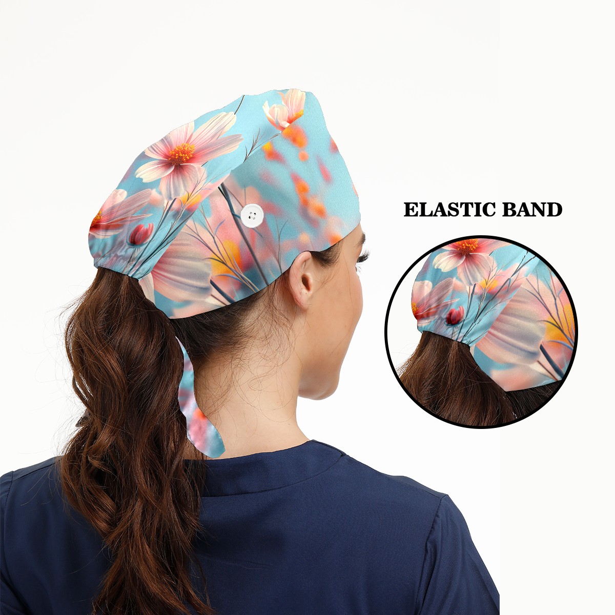 Working Caps with Button & Sweatband Satin Lined Cotton Adjustable Nurse Hats Elastic Band Scrub Cap Surgeon Hat Myriad Petals