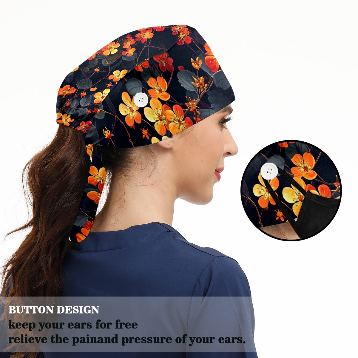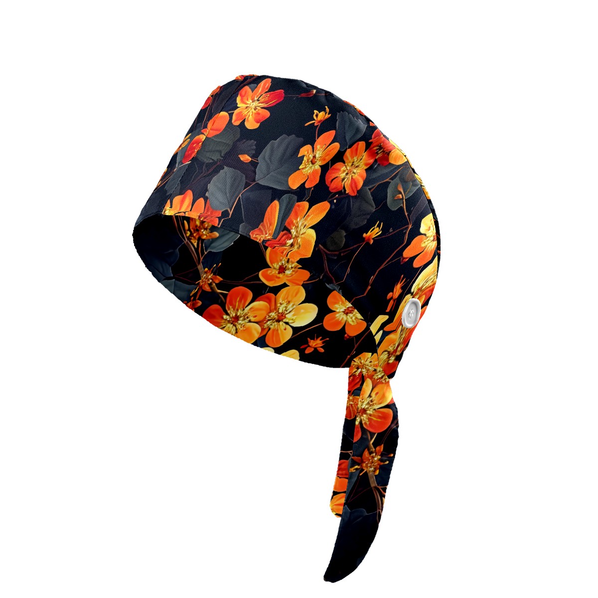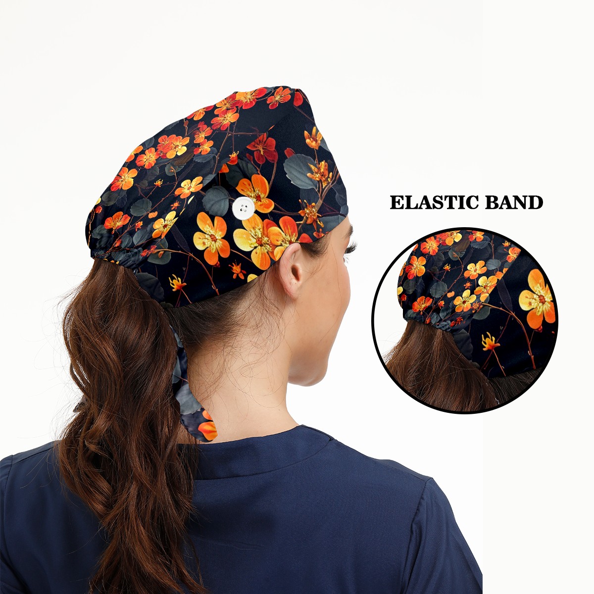 Working Caps with Button & Sweatband Satin Lined Cotton Adjustable Nurse Hats Elastic Band Scrub Cap Surgeon Hat Pretty Flowers
