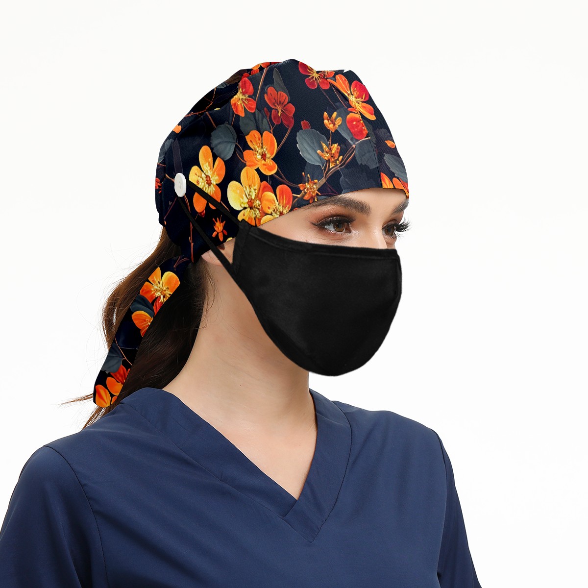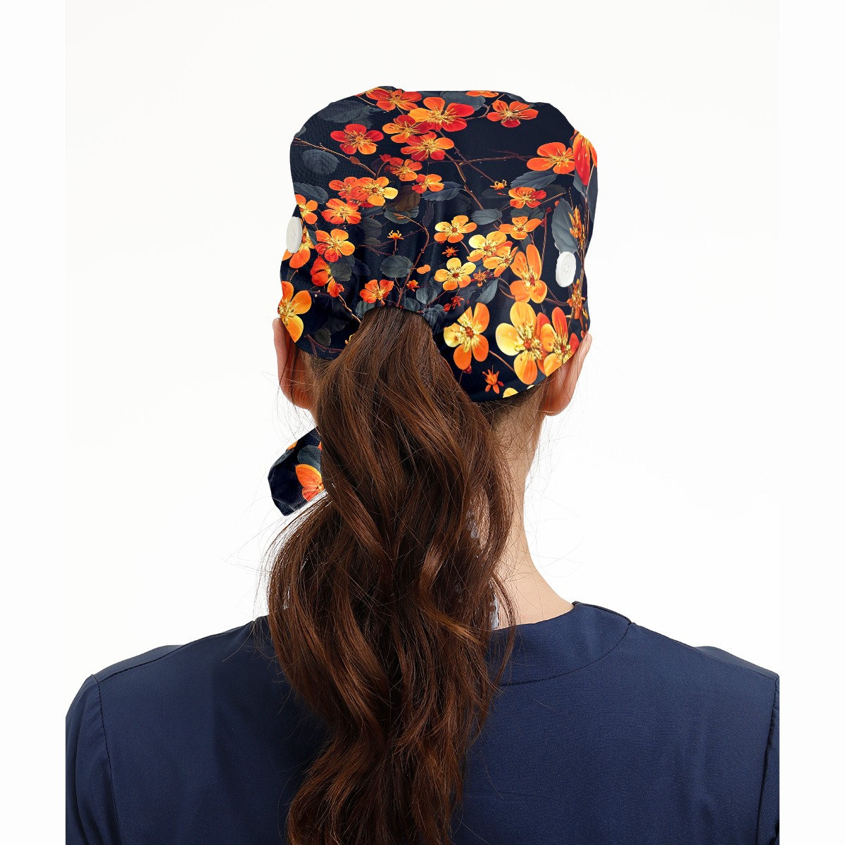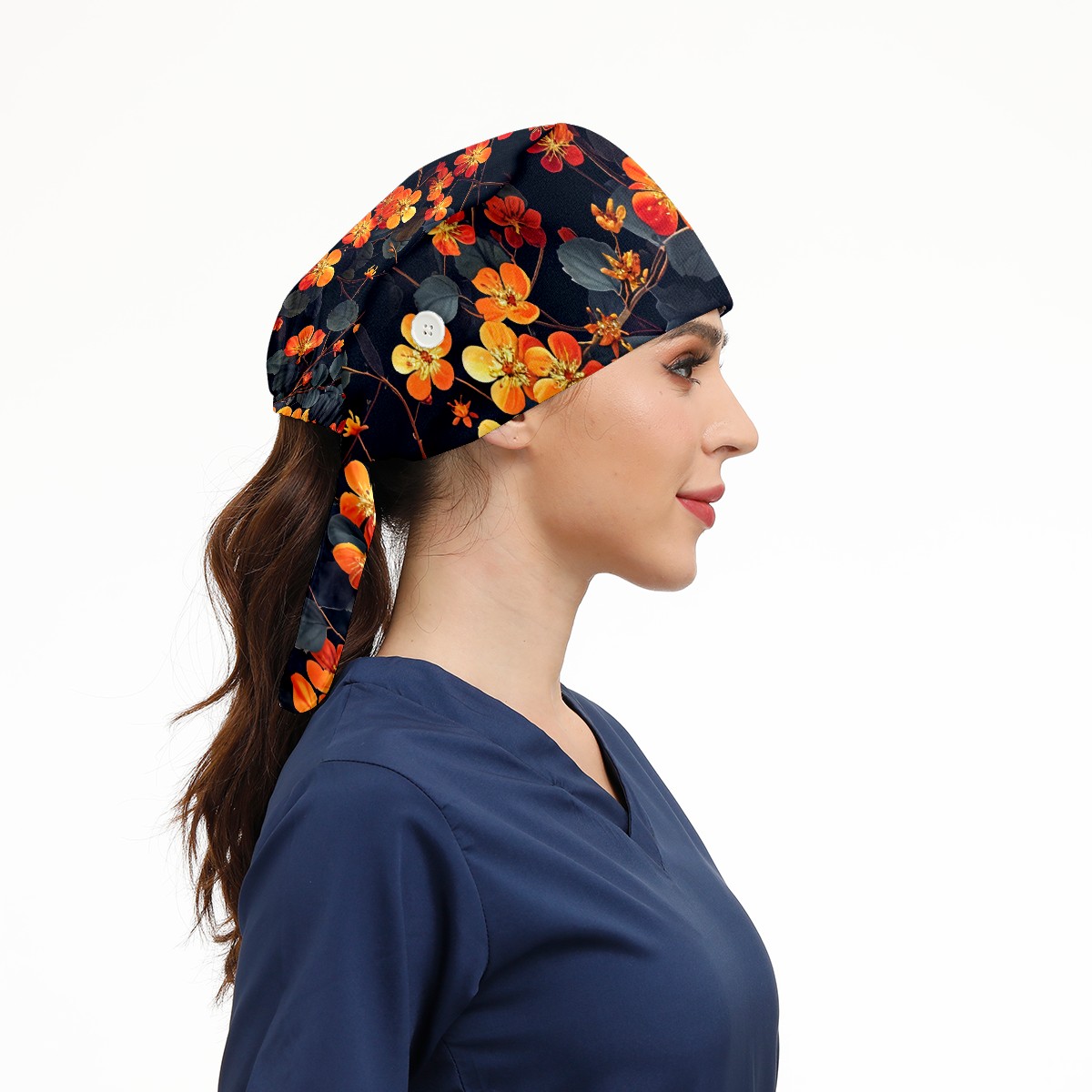 Working Caps with Button & Sweatband Satin Lined Cotton Adjustable Nurse Hats Elastic Band Scrub Cap Surgeon Hat Pretty Flowers