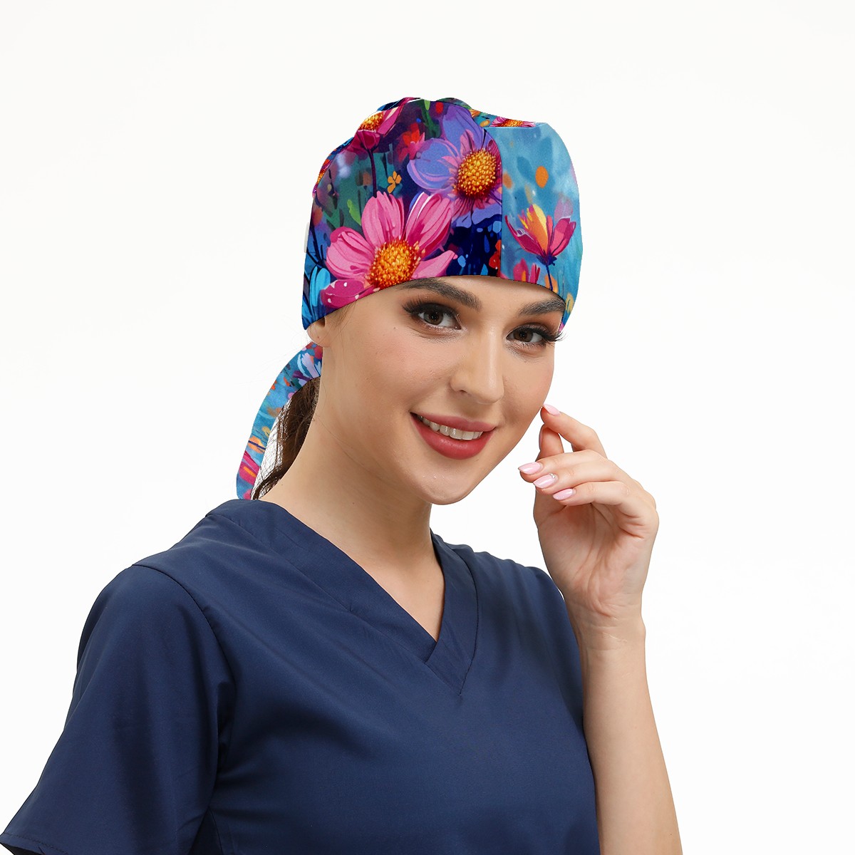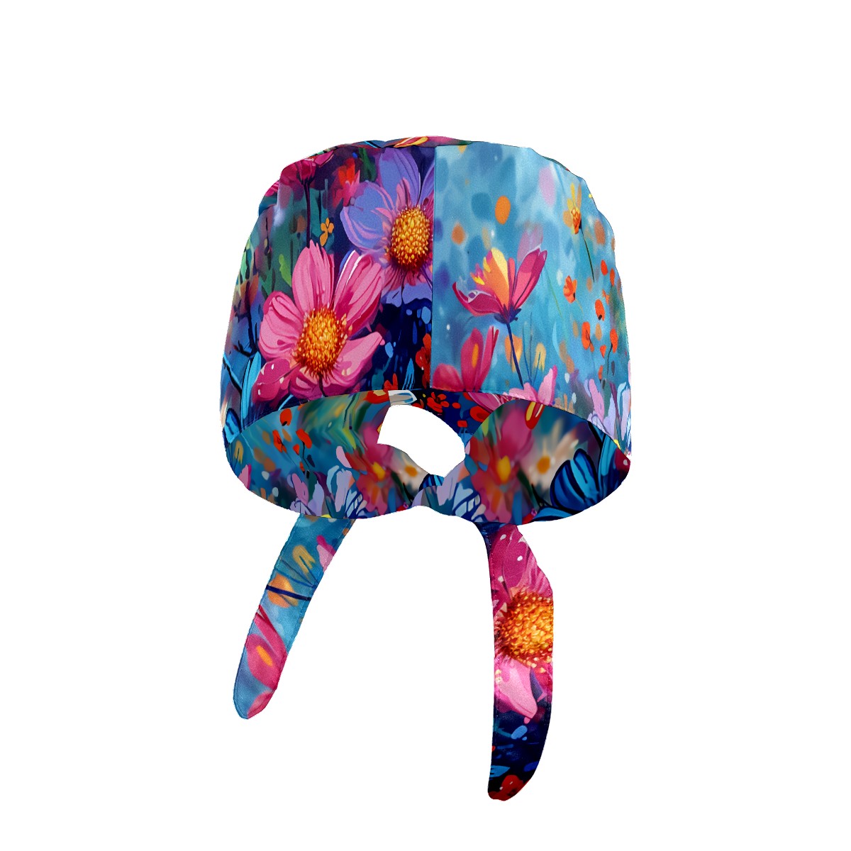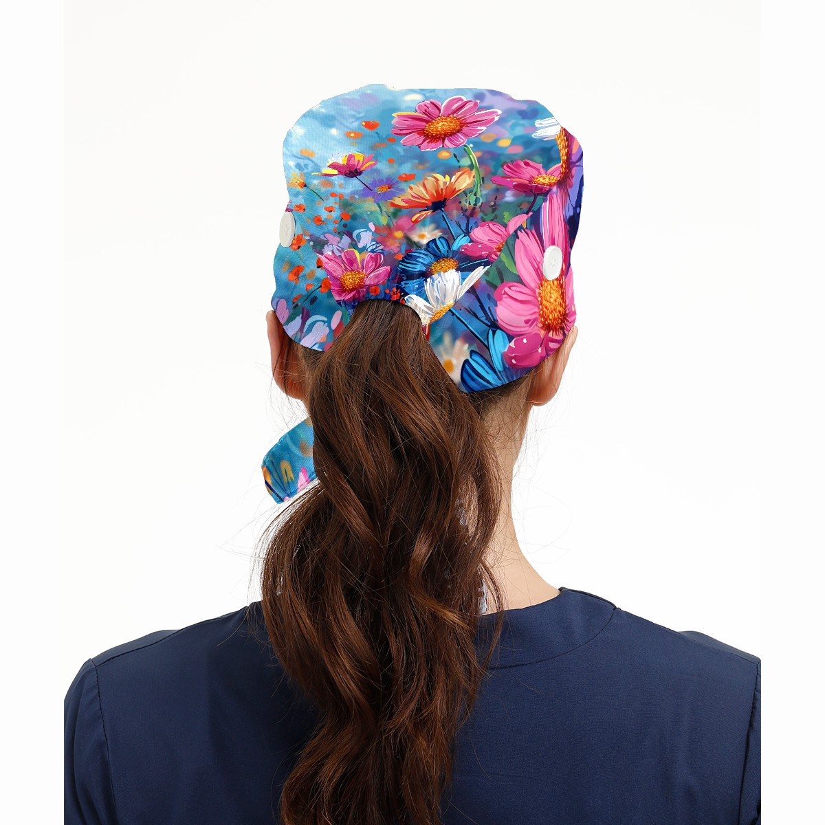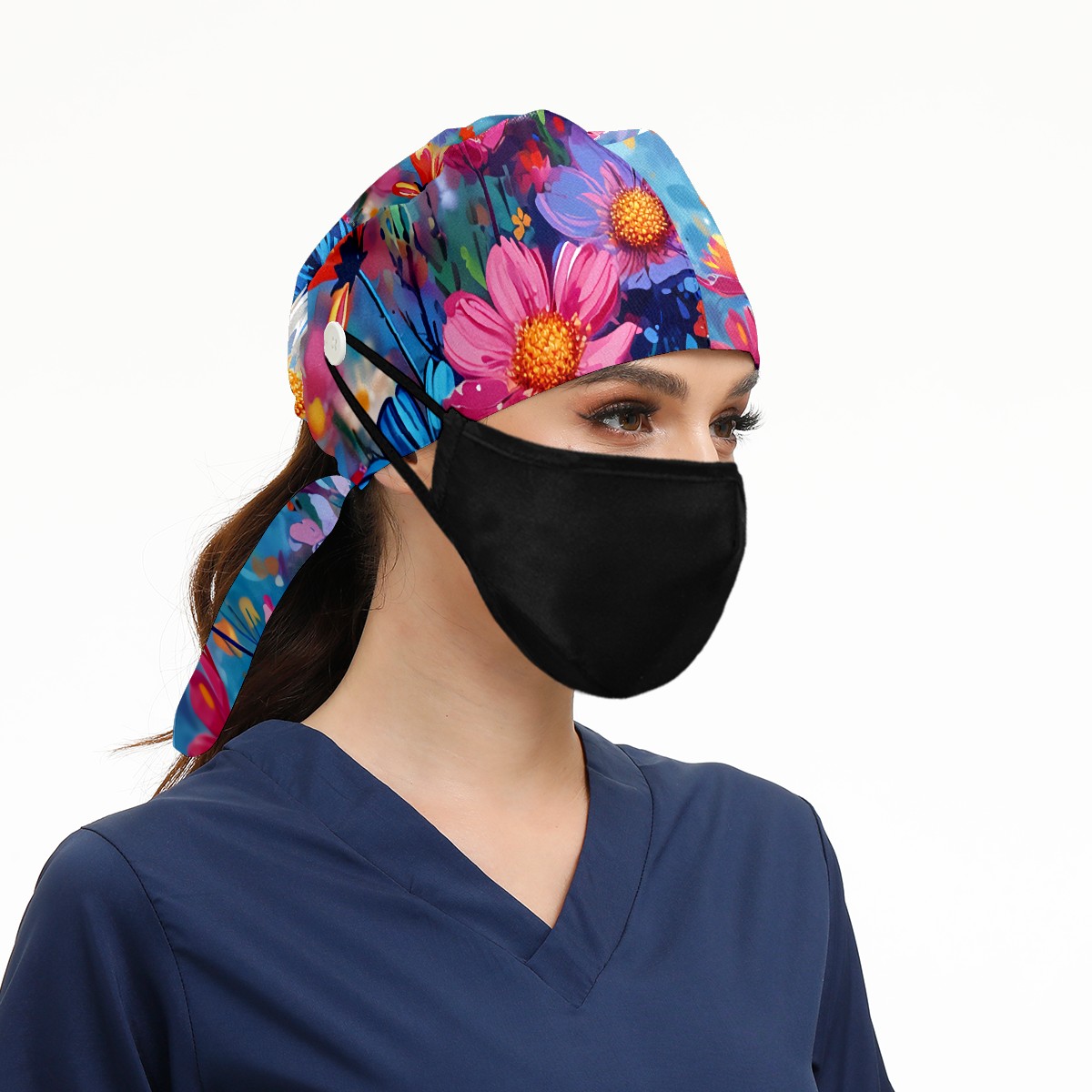 Working Caps with Button & Sweatband Satin Lined Cotton Adjustable Nurse Hats Elastic Band Scrub Cap Surgeon Hat Myriad Flowers A