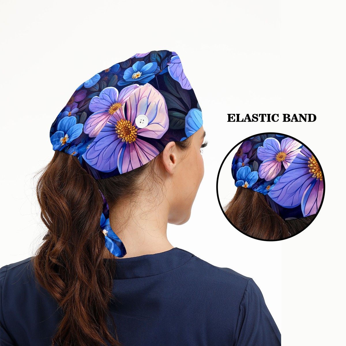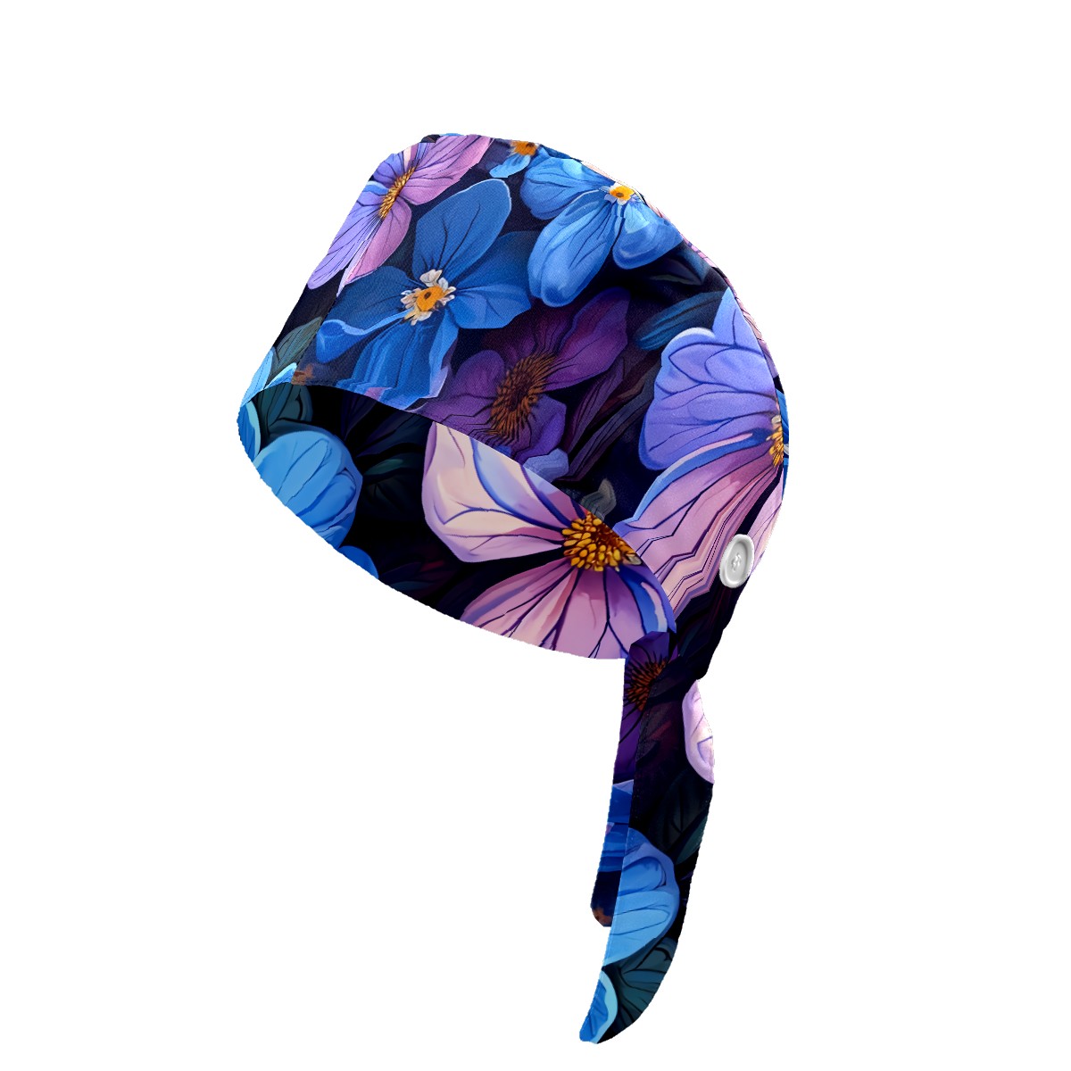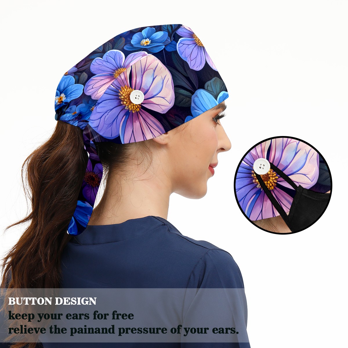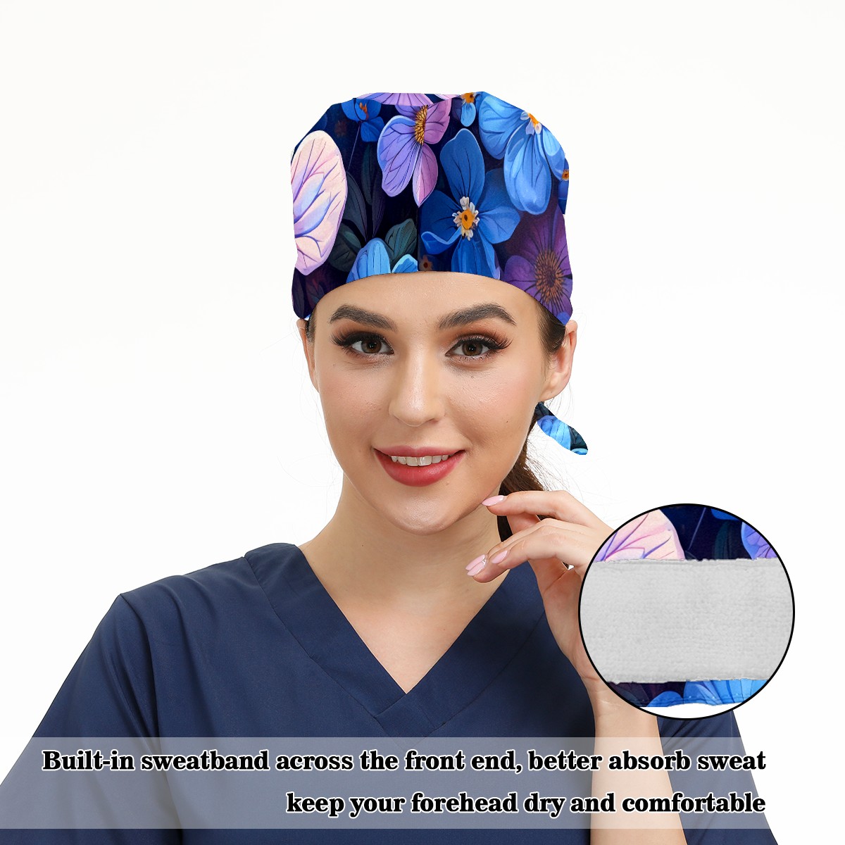 Working Caps with Button & Sweatband Satin Lined Cotton Adjustable Nurse Hats Elastic Band Scrub Cap Surgeon Hat Pretty Flowers B