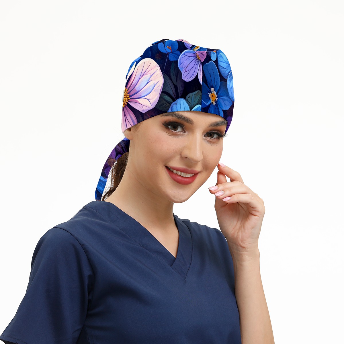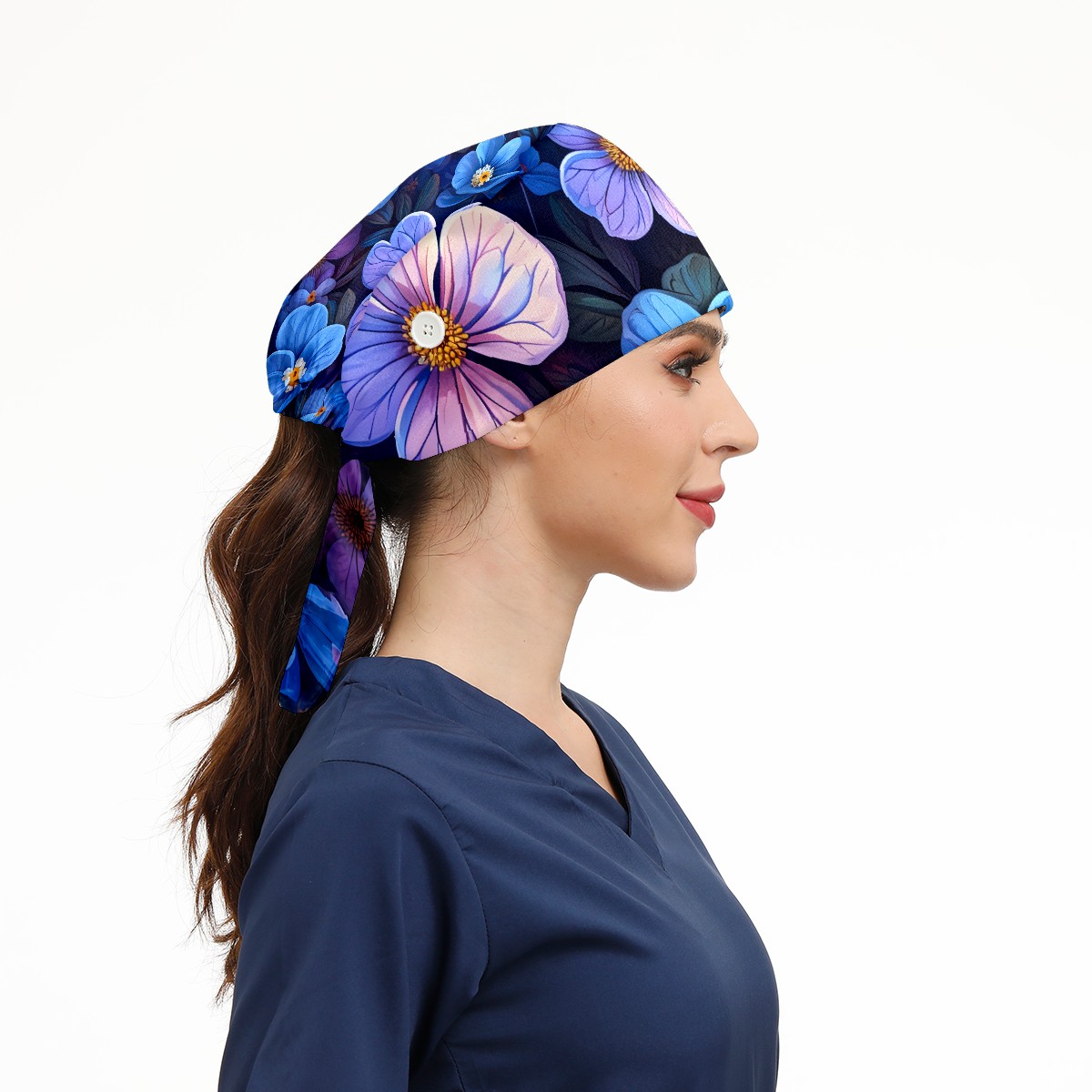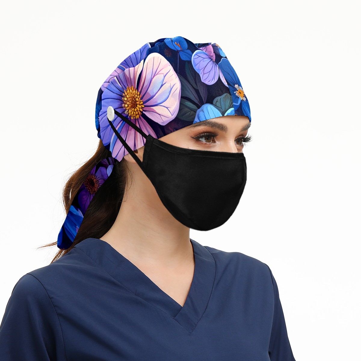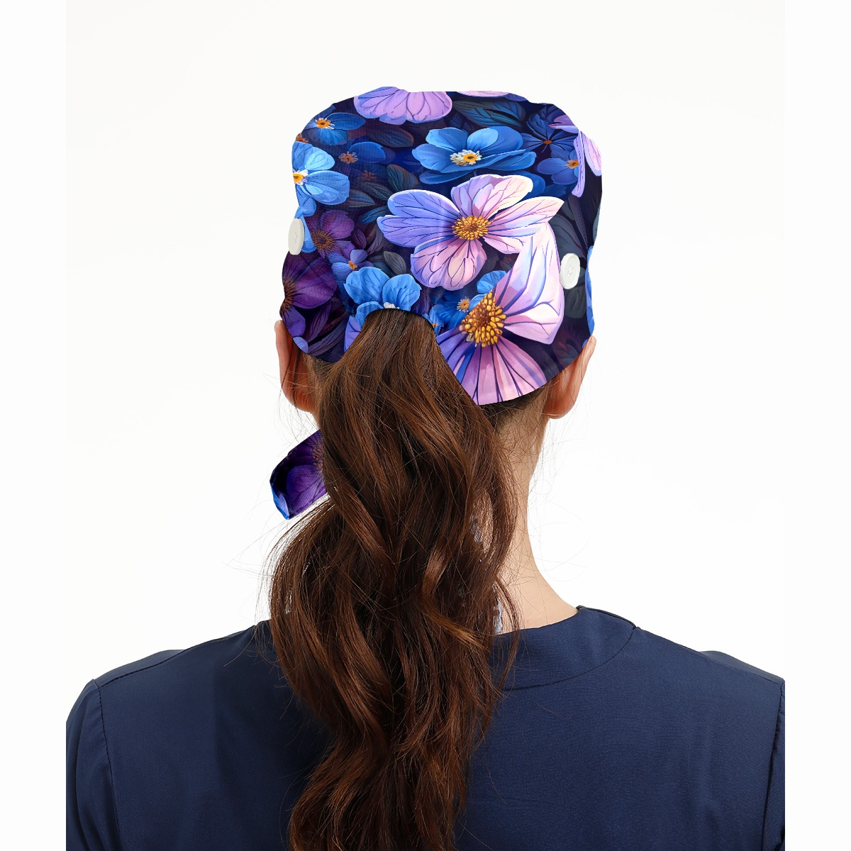 Working Caps with Button & Sweatband Satin Lined Cotton Adjustable Nurse Hats Elastic Band Scrub Cap Surgeon Hat Pretty Flowers B