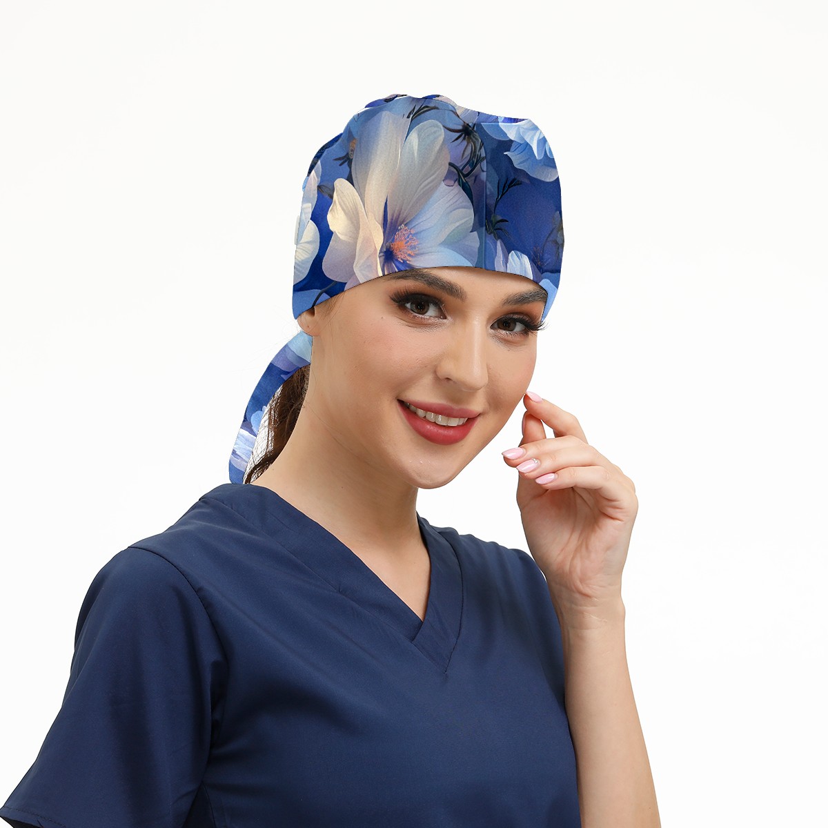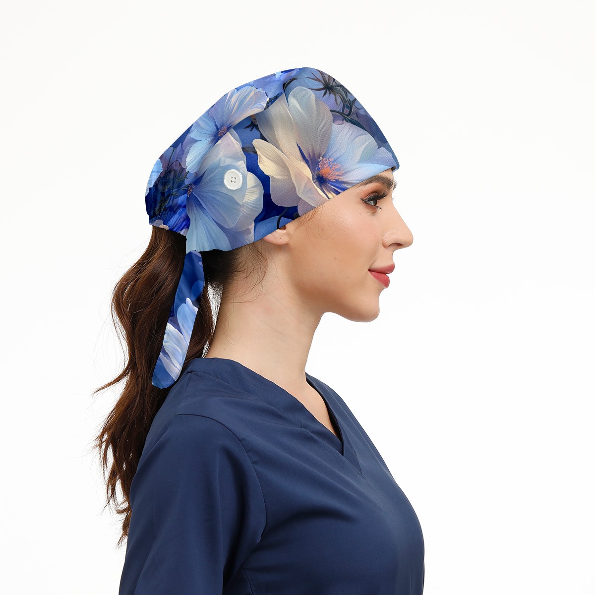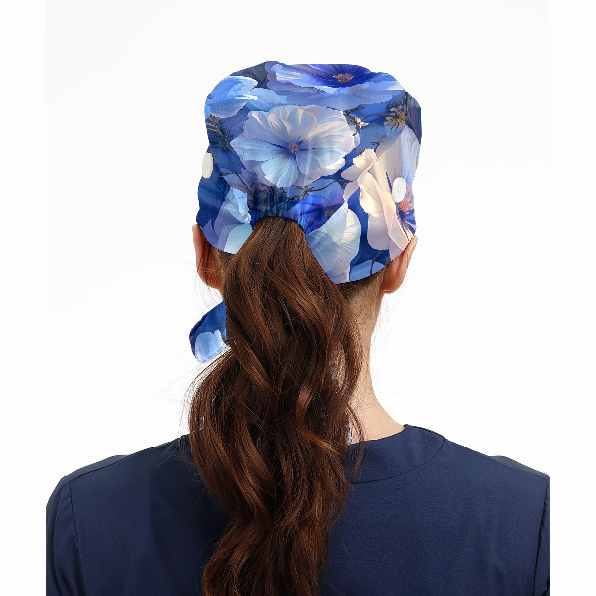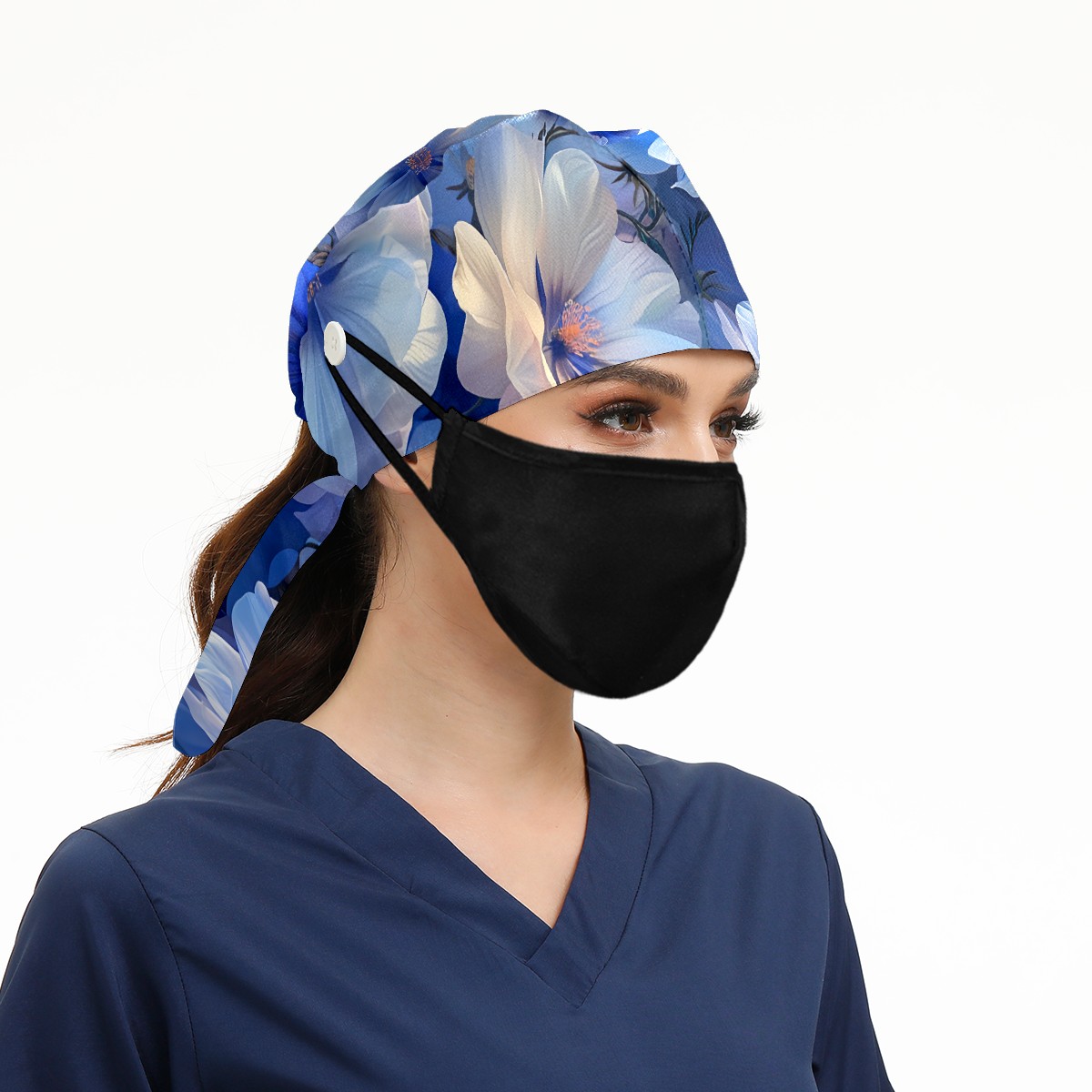 Working Caps with Button & Sweatband Satin Lined Cotton Adjustable Nurse Hats Elastic Band Scrub Cap Surgeon Hat Myriad Flowers C
