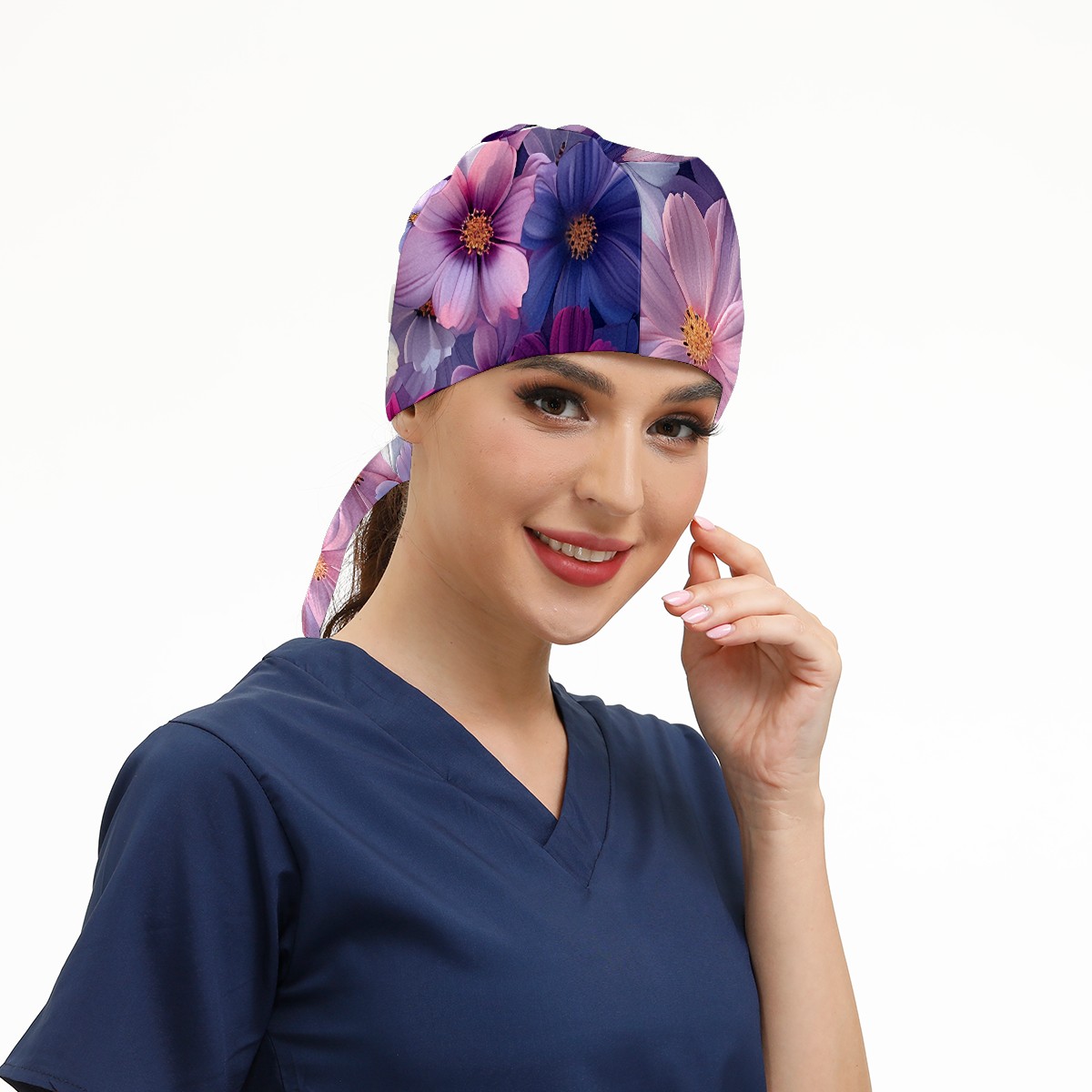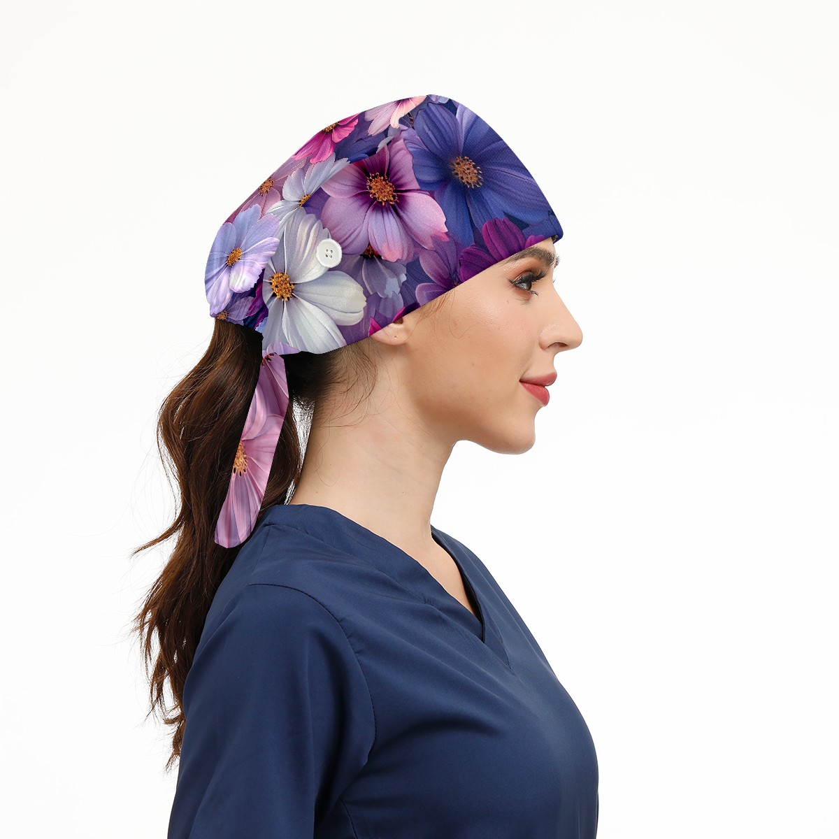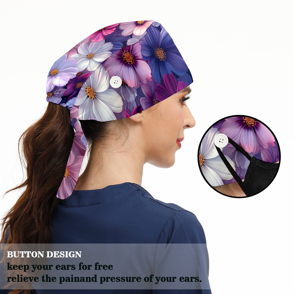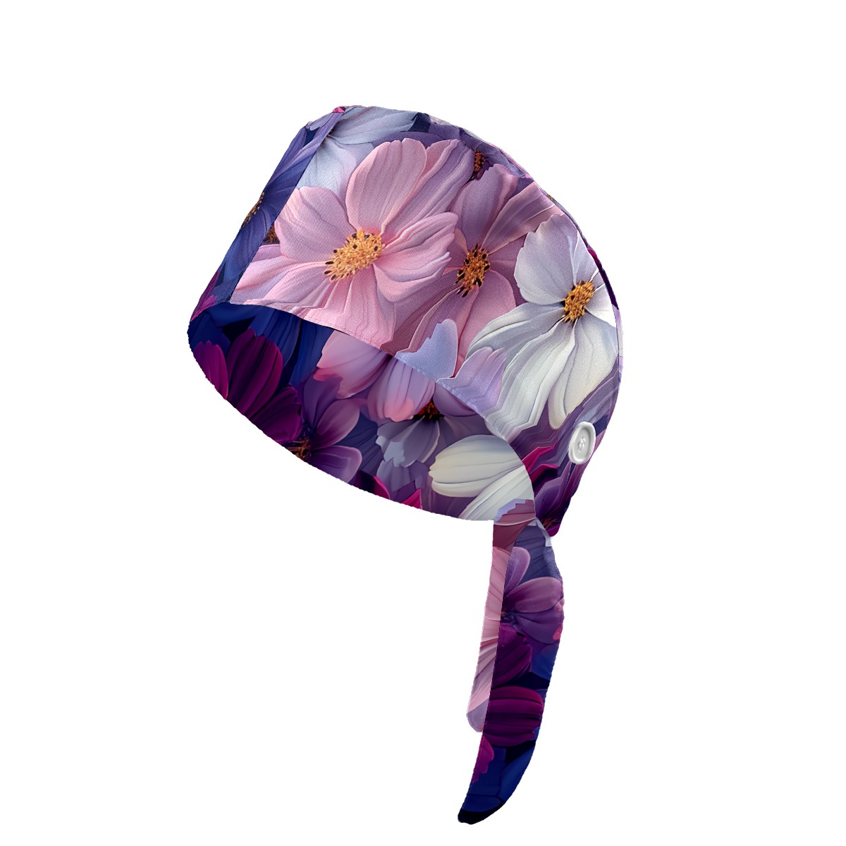 Working Caps with Button & Sweatband Satin Lined Cotton Adjustable Nurse Hats Elastic Band Scrub Cap Surgeon Hat Myriad Petals D