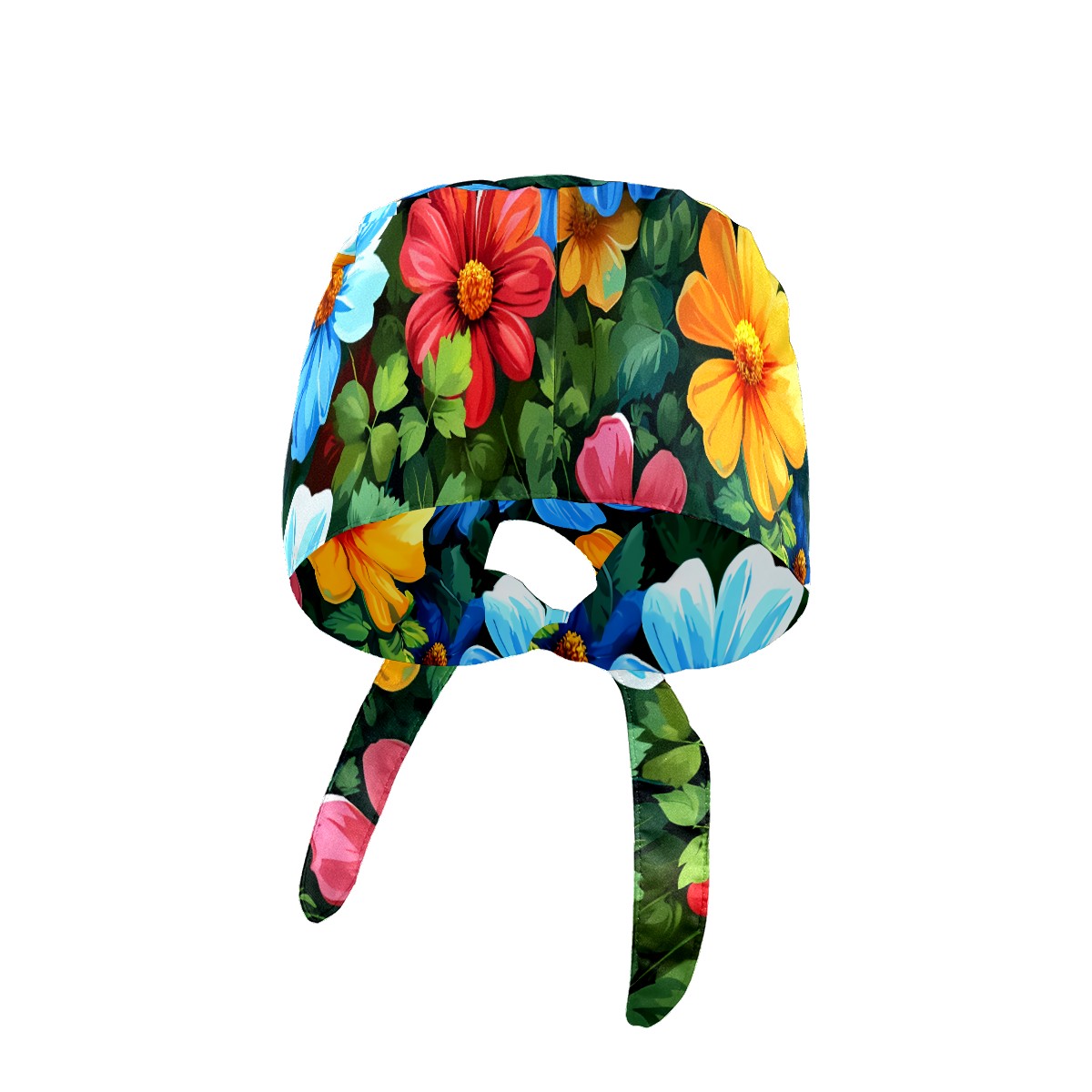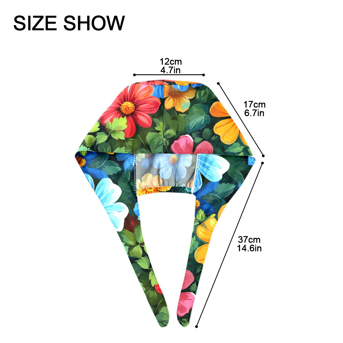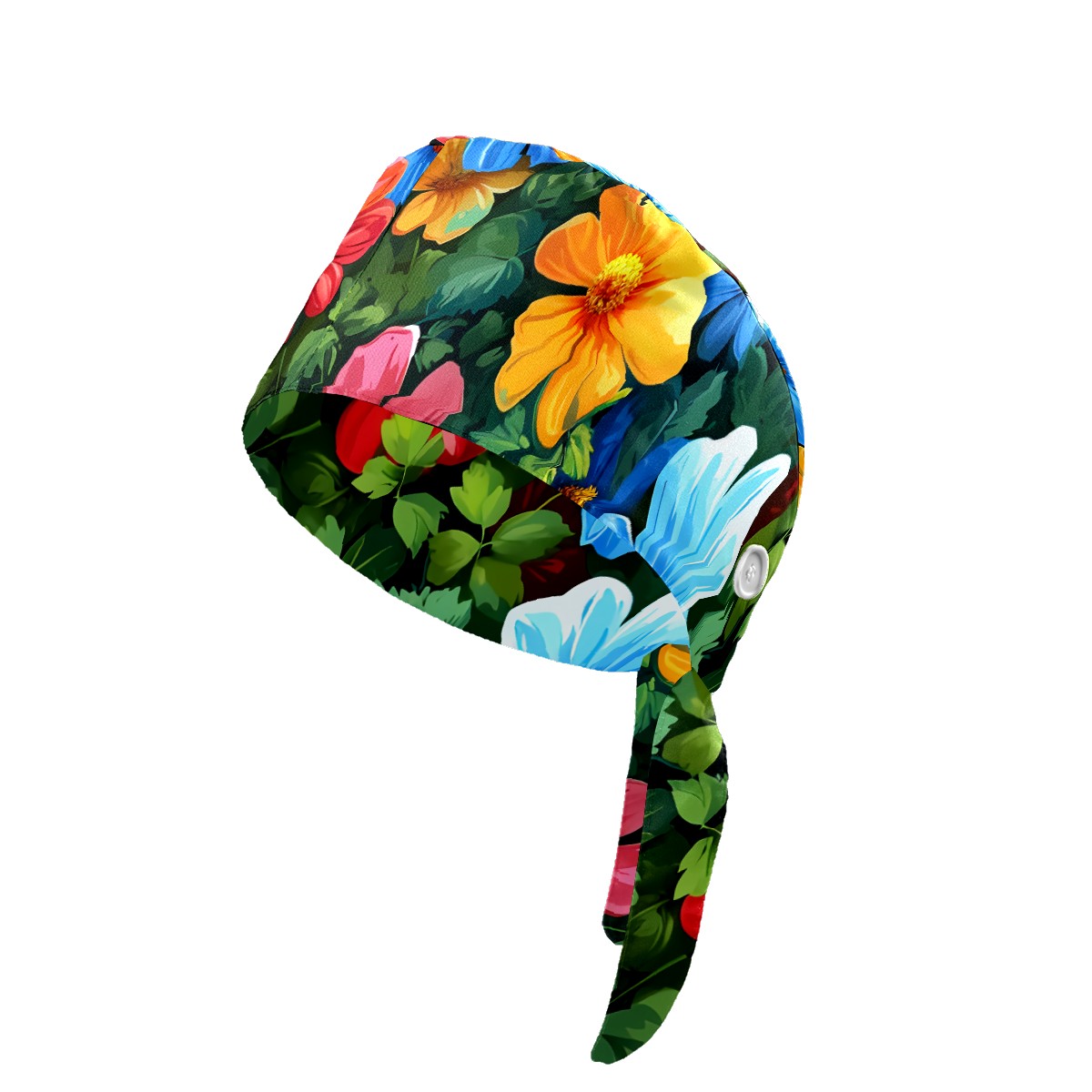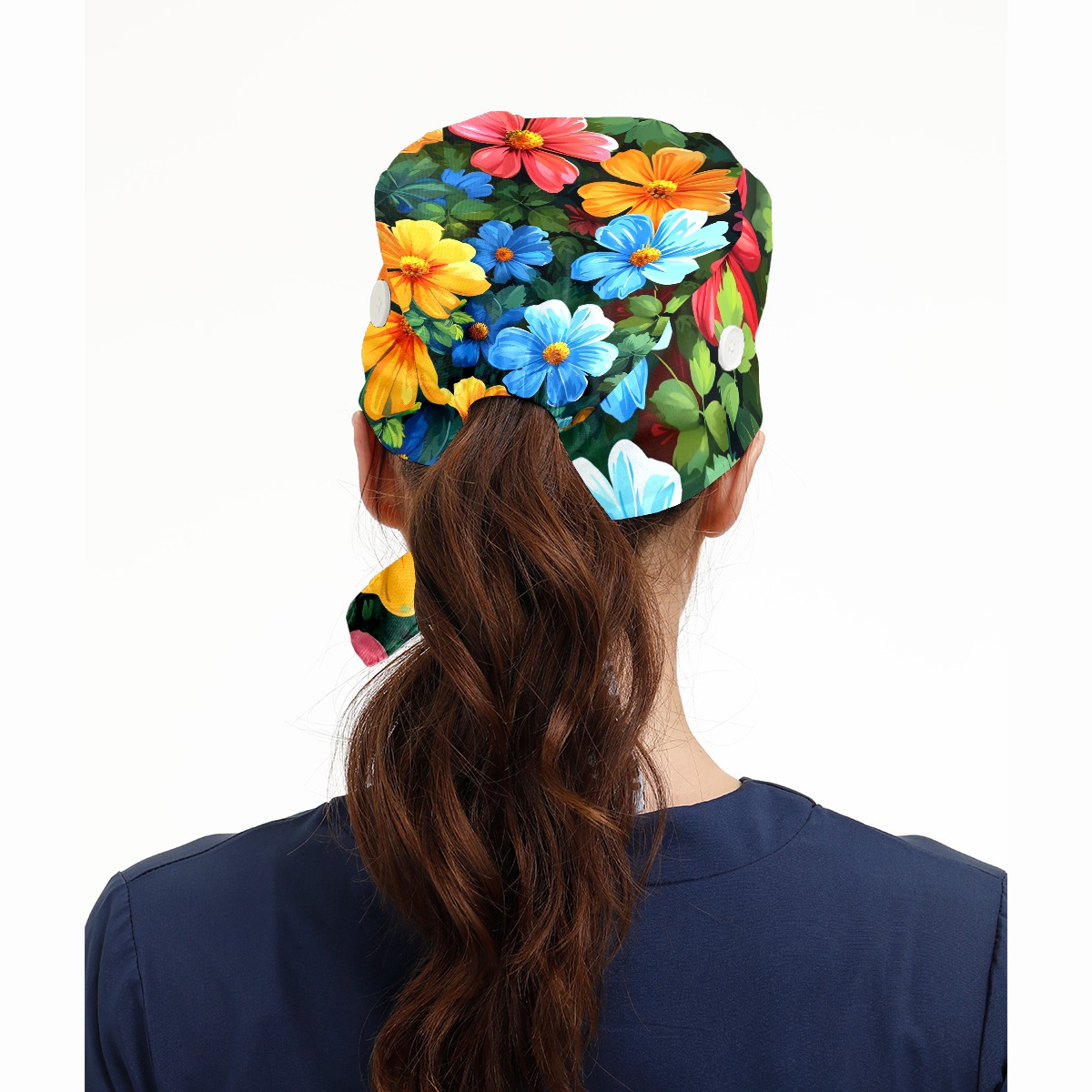Working Caps with Button & Sweatband Satin Lined Cotton Adjustable Nurse Hats Elastic Band Scrub Cap Surgeon Hat Myriad Flowers D