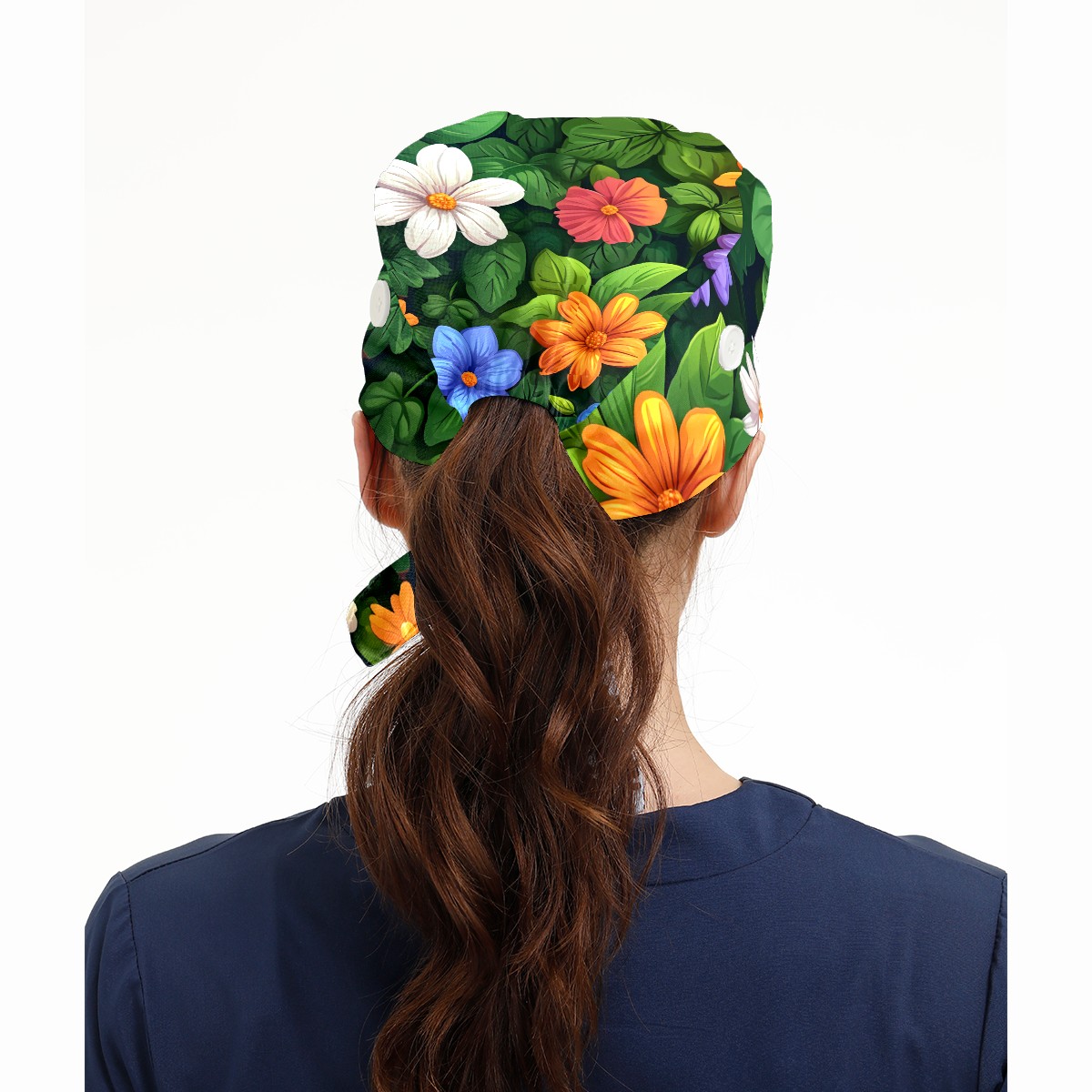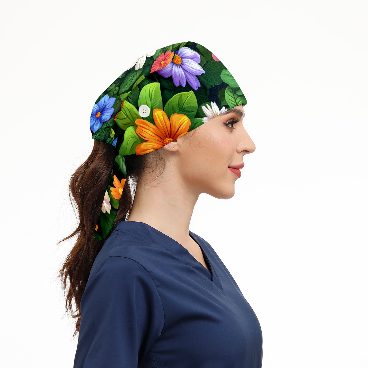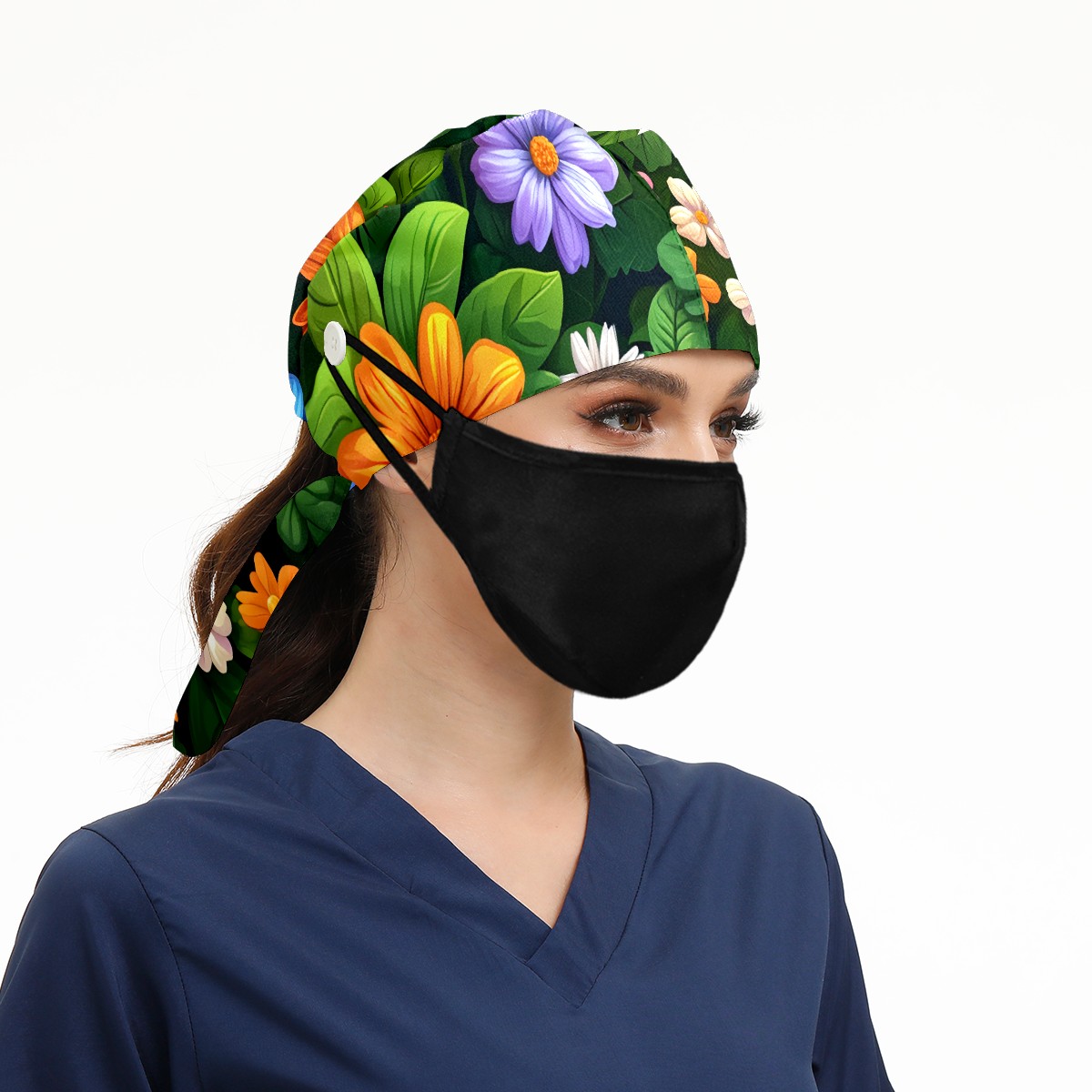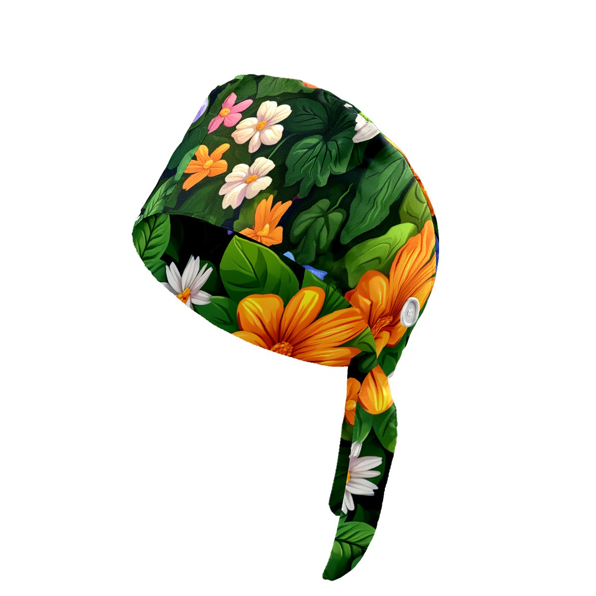 Working Caps with Button & Sweatband Satin Lined Cotton Adjustable Nurse Hats Elastic Band Scrub Cap Surgeon Hat Colorful Flowers E