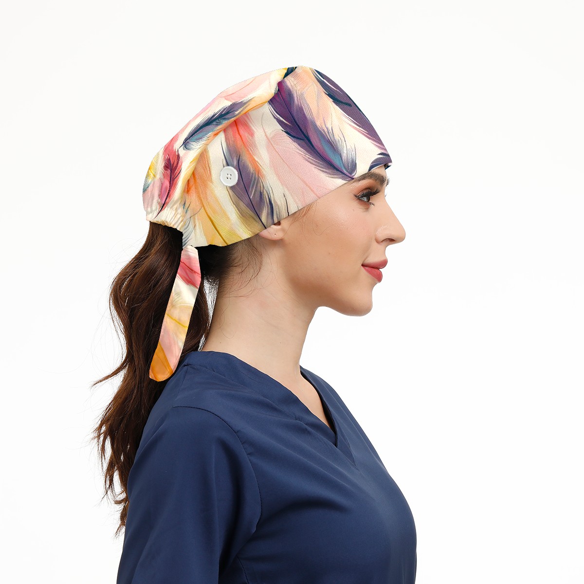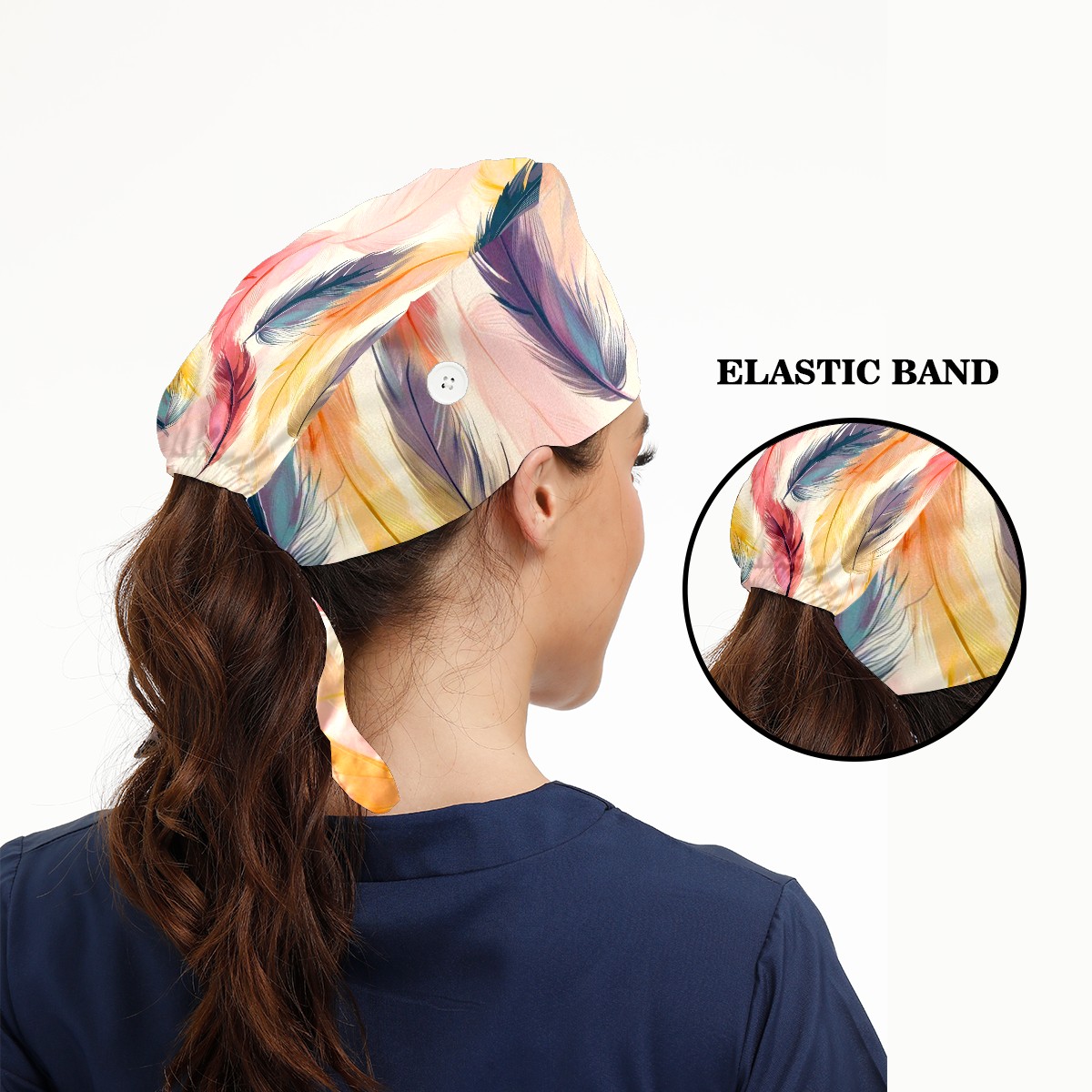 Working Caps with Button & Sweatband Satin Lined Cotton Adjustable Nurse Hats Elastic Band Scrub Cap Surgeon Hat Feather