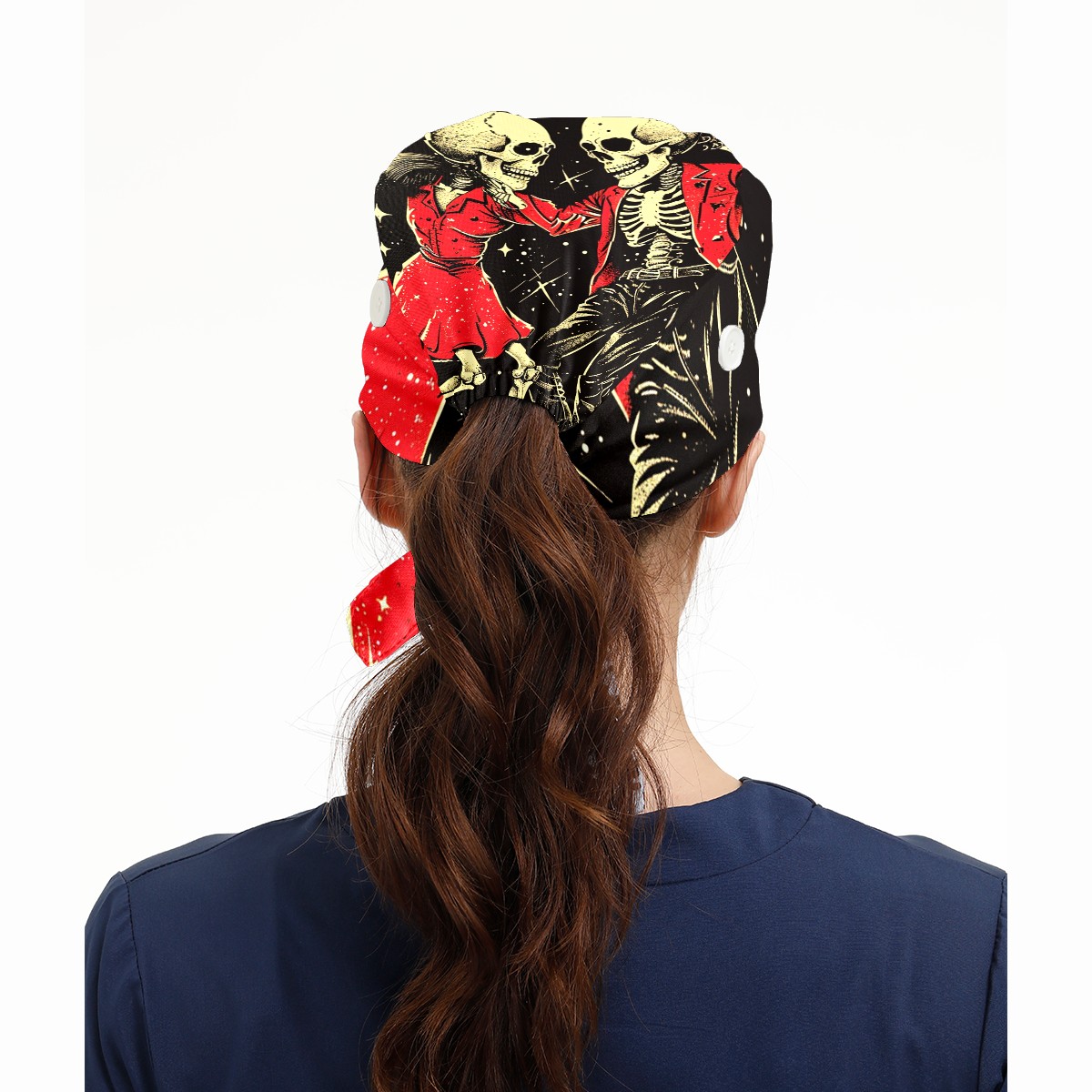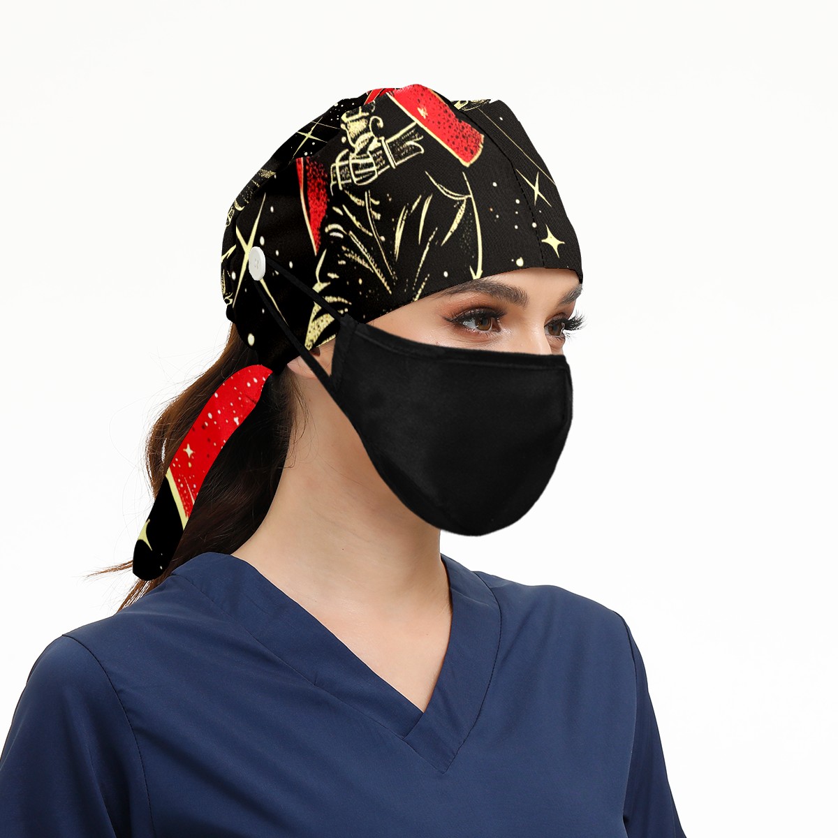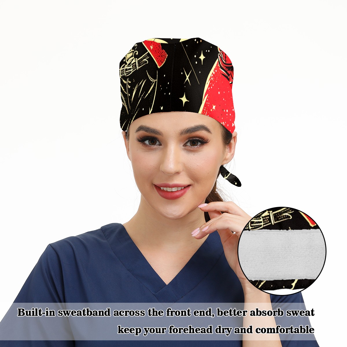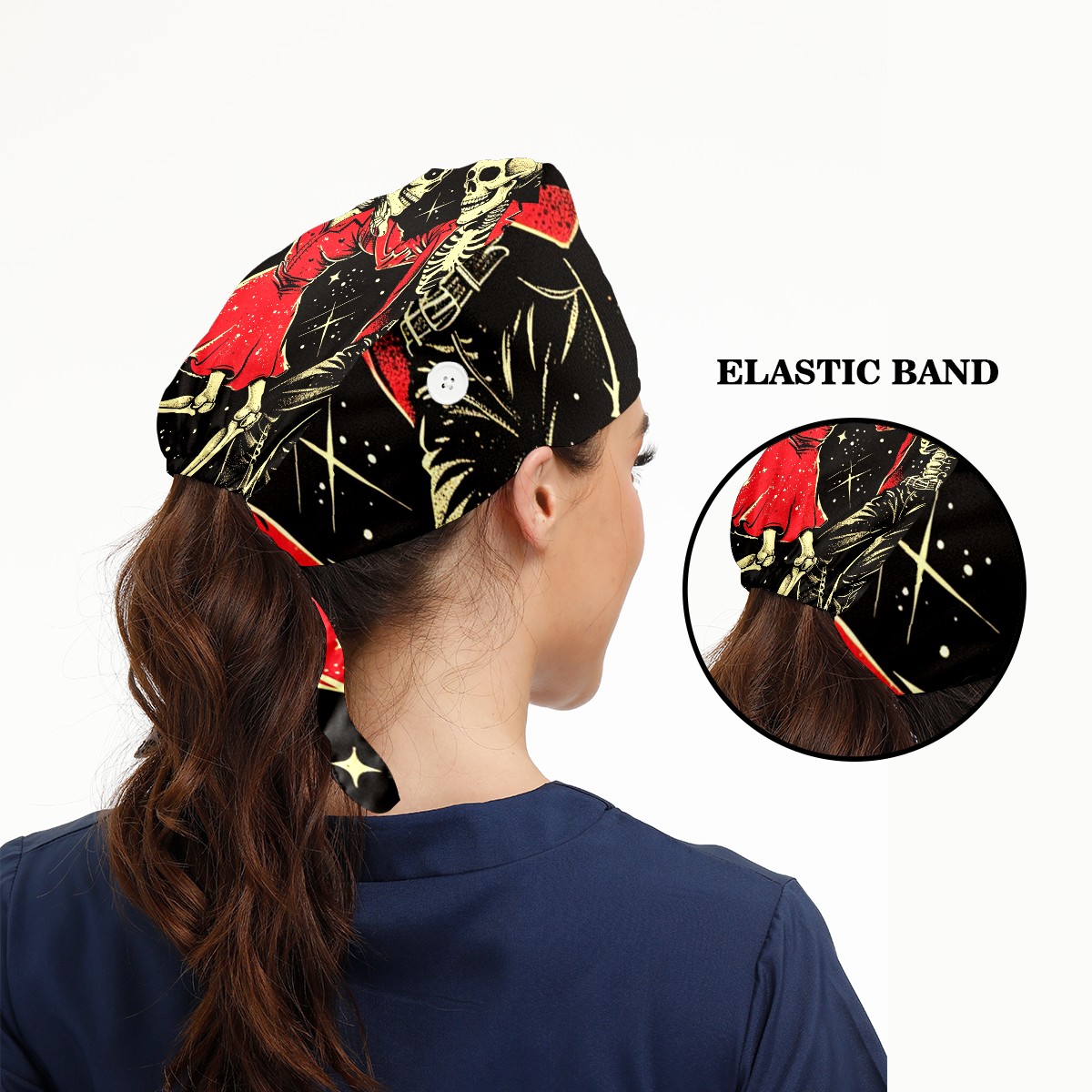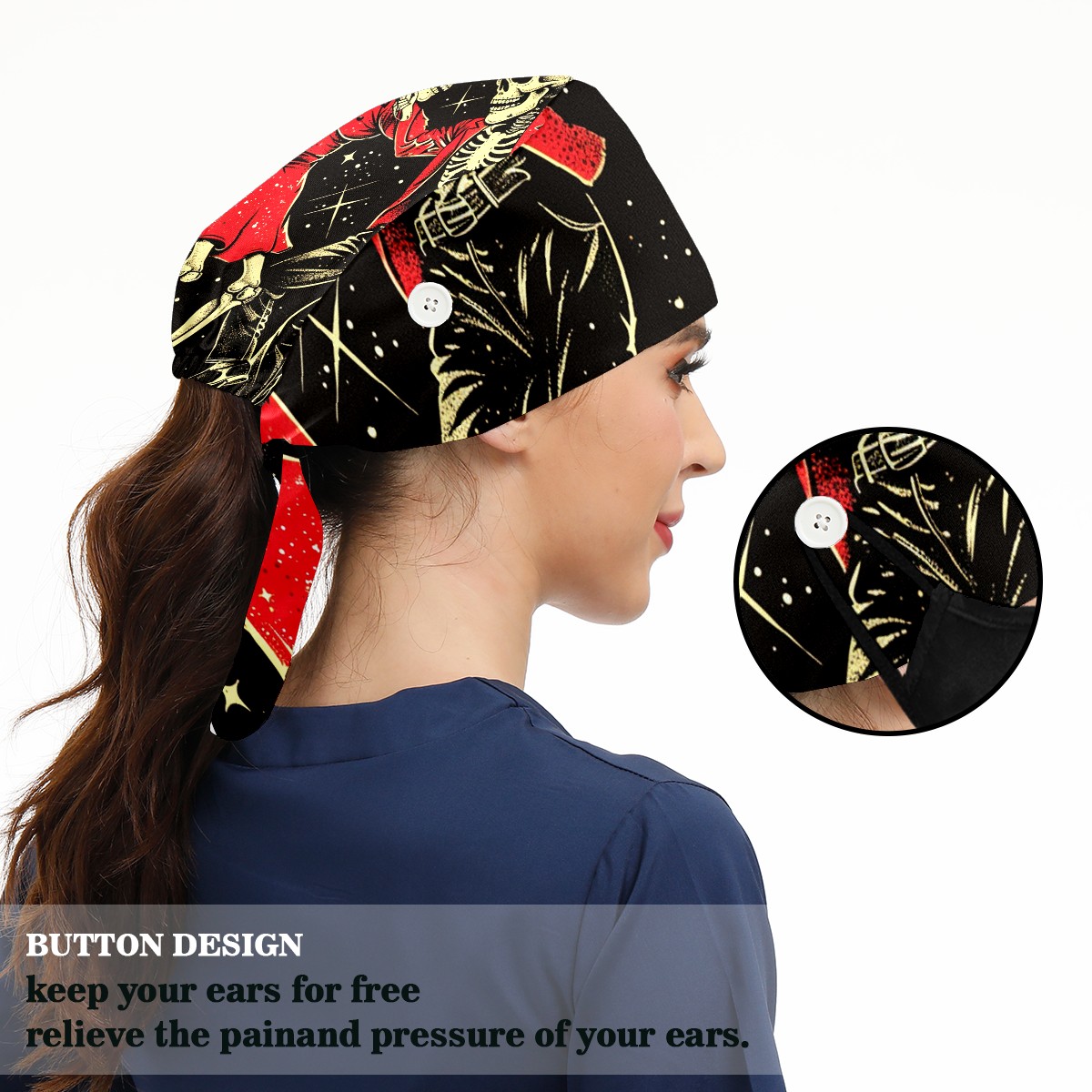 Working Caps with Button & Sweatband Satin Lined Cotton Adjustable Nurse Hats Elastic Band Scrub Cap Surgeon Hat Skull Head