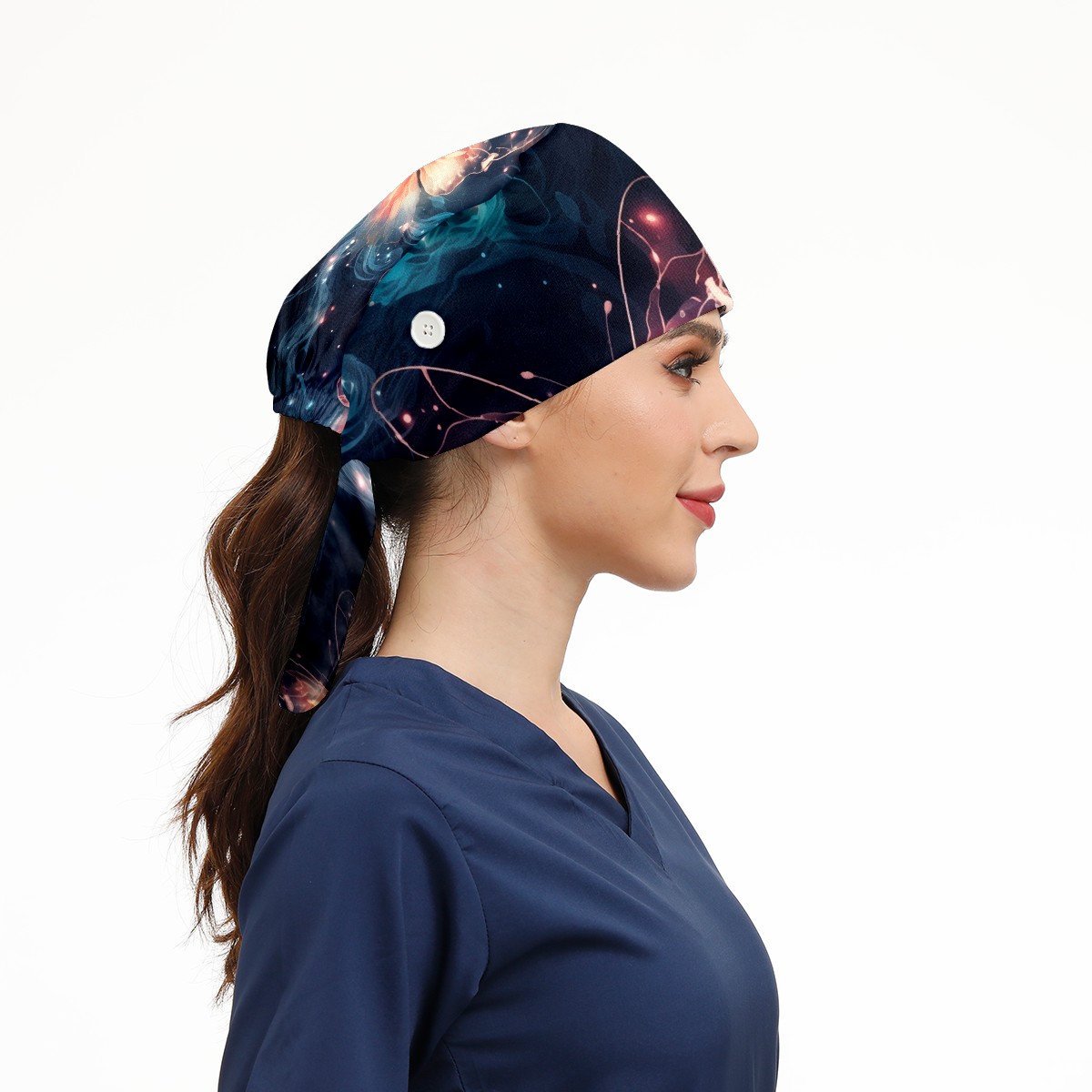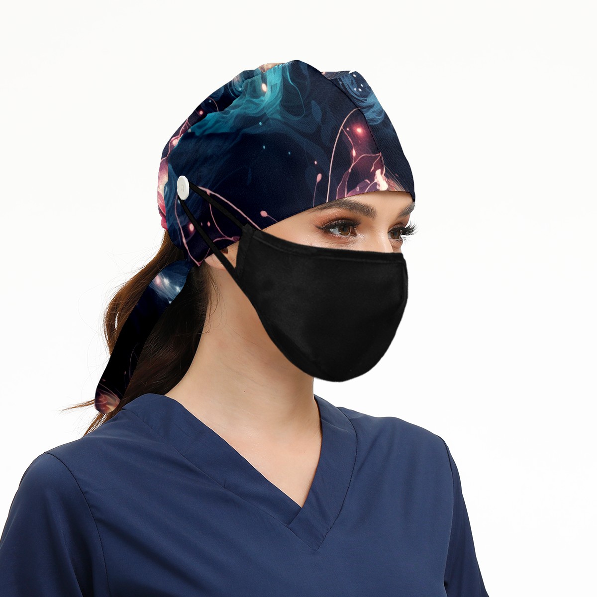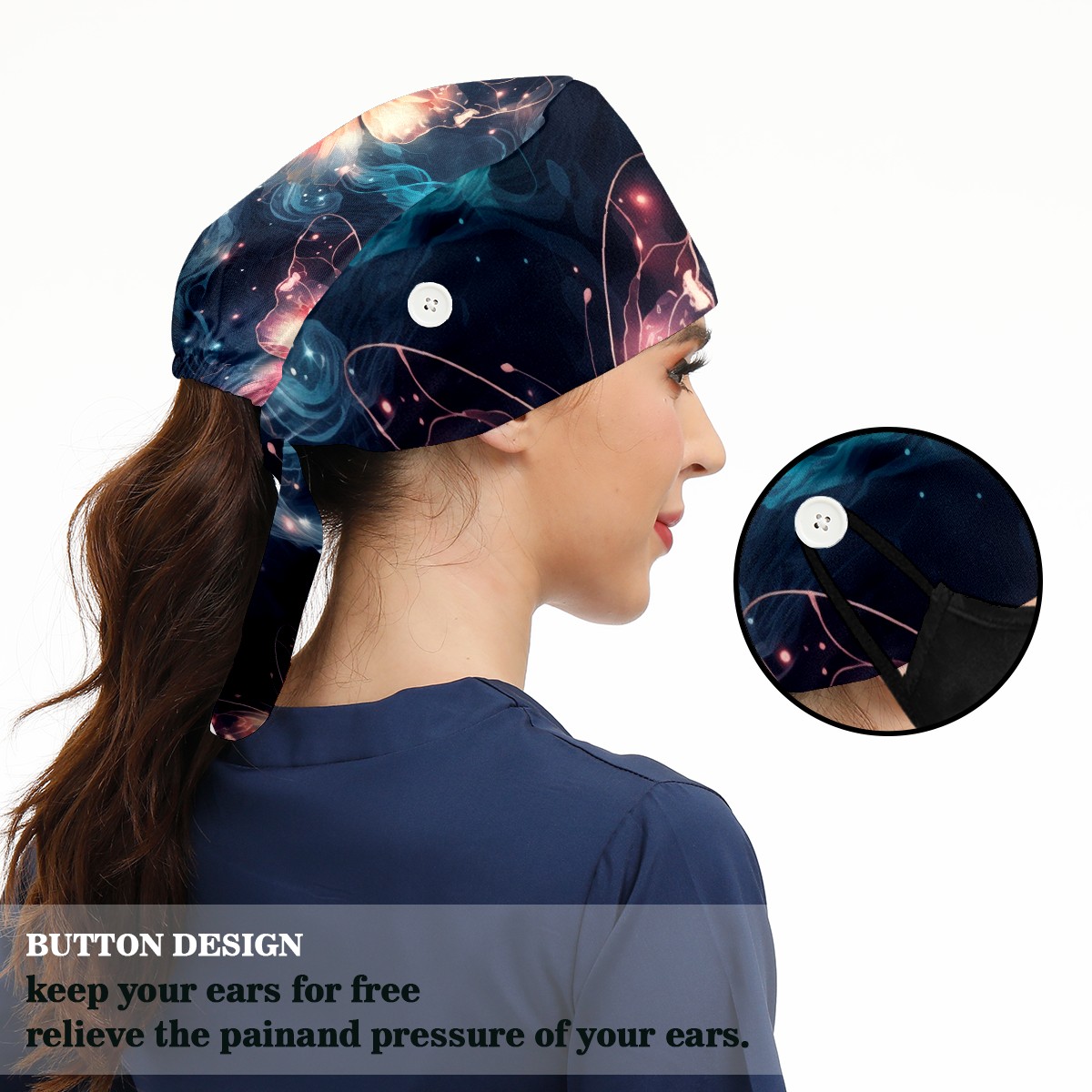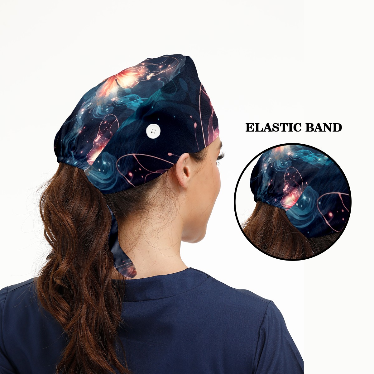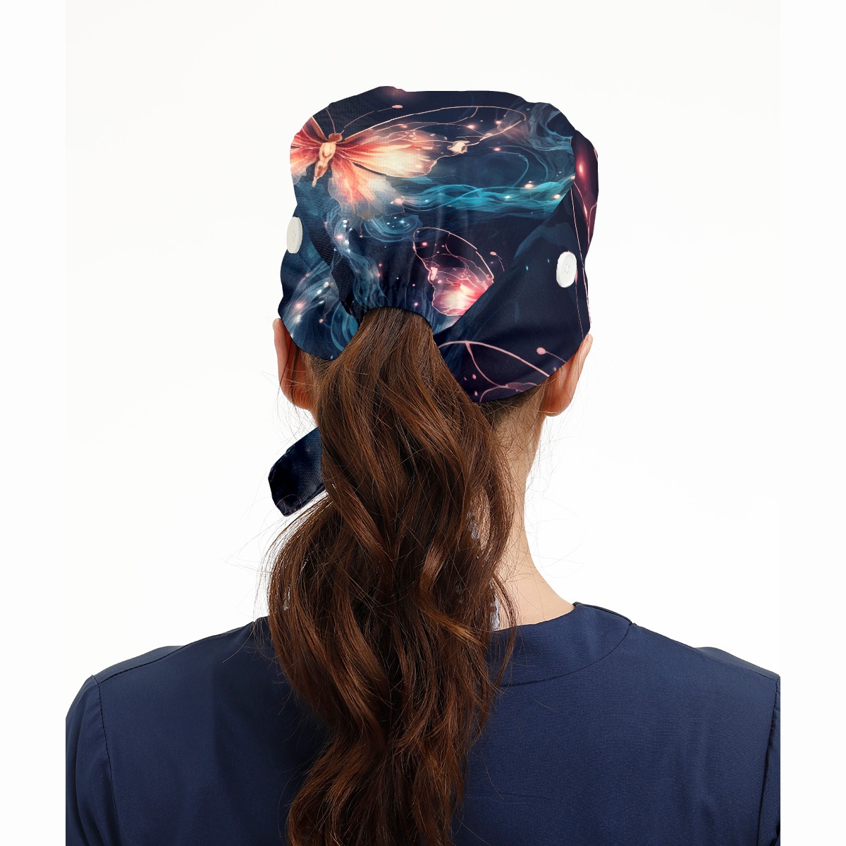 Working Caps with Button & Sweatband Satin Lined Cotton Adjustable Nurse Hats Elastic Band Scrub Cap Surgeon Hat Beautiful Butterfly