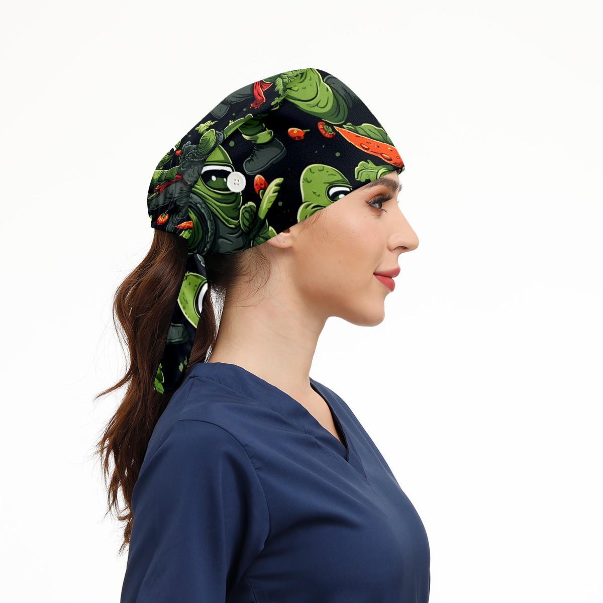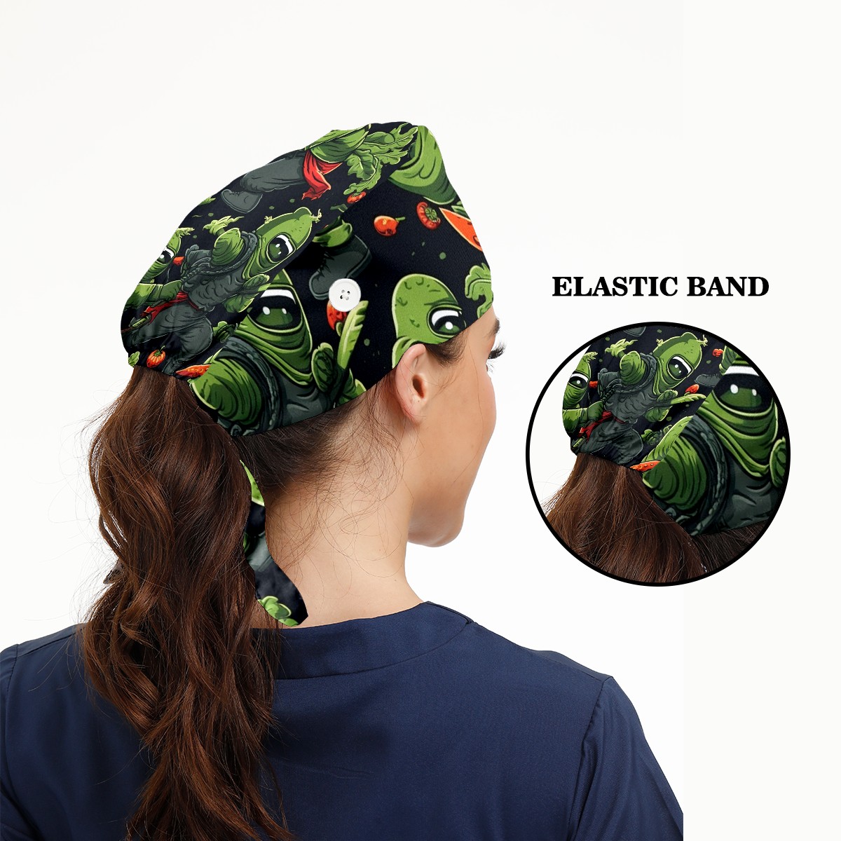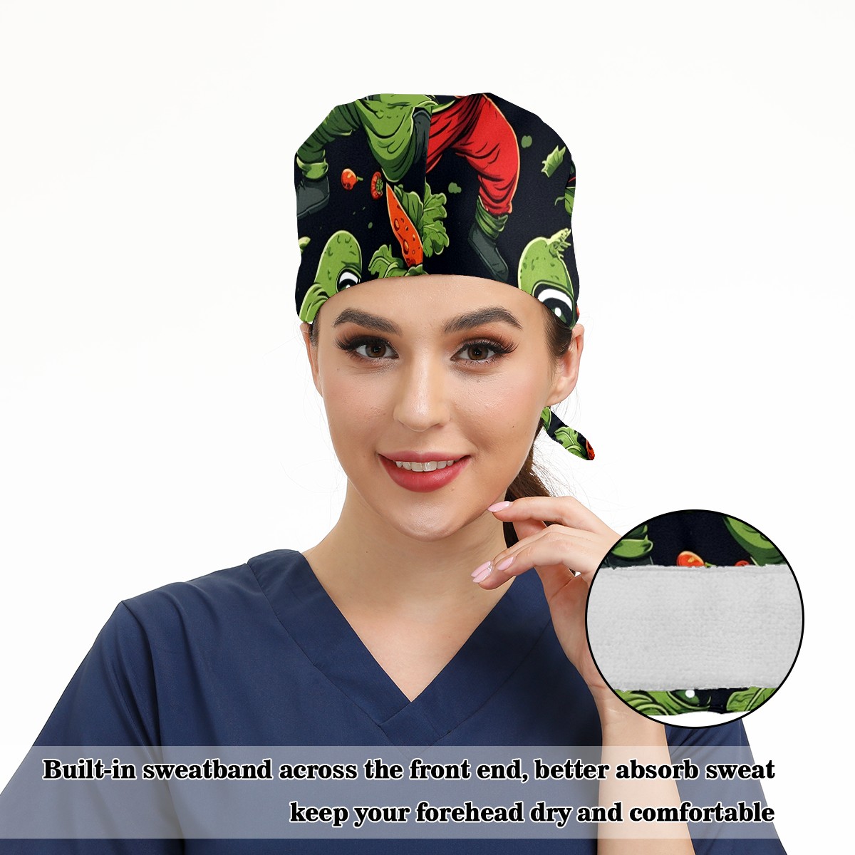 Working Caps with Button & Sweatband Satin Lined Cotton Adjustable Nurse Hats Elastic Band Scrub Cap Surgeon Hat Anime