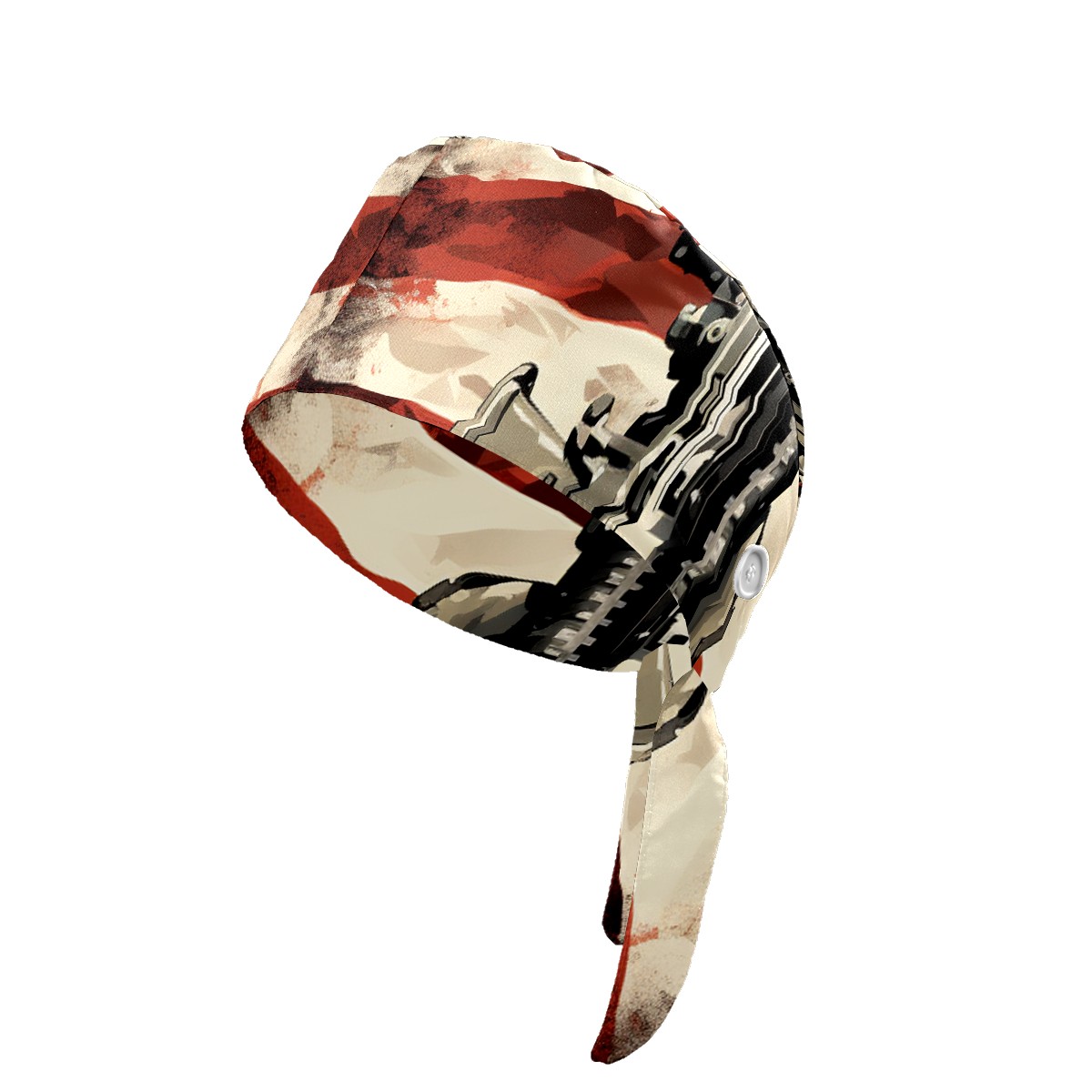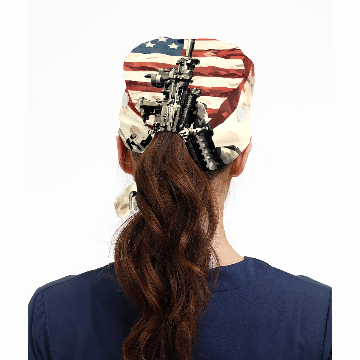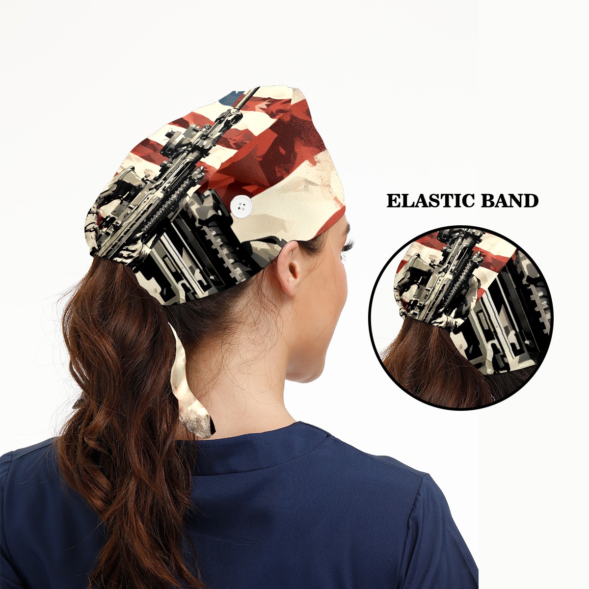 Working Caps with Button & Sweatband Satin Lined Cotton Adjustable Nurse Hats Elastic Band Scrub Cap Surgeon Hat National Flag