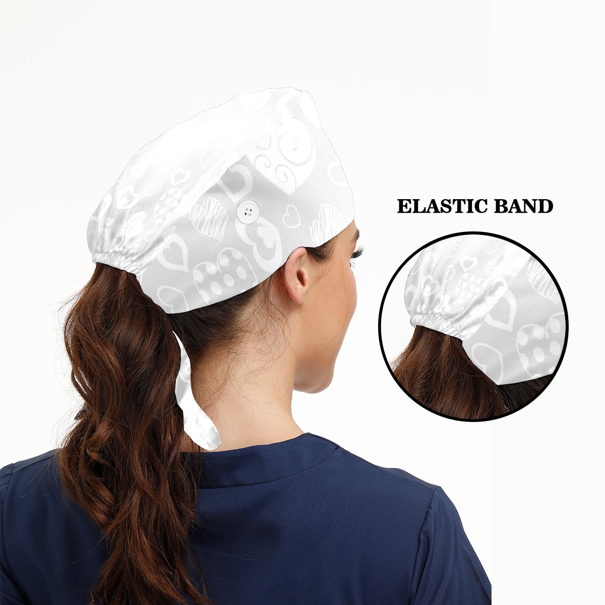 Working Caps with Button & Sweatband Satin Lined Cotton Adjustable Nurse Hats Elastic Band Scrub Cap Surgeon Hat Hearts