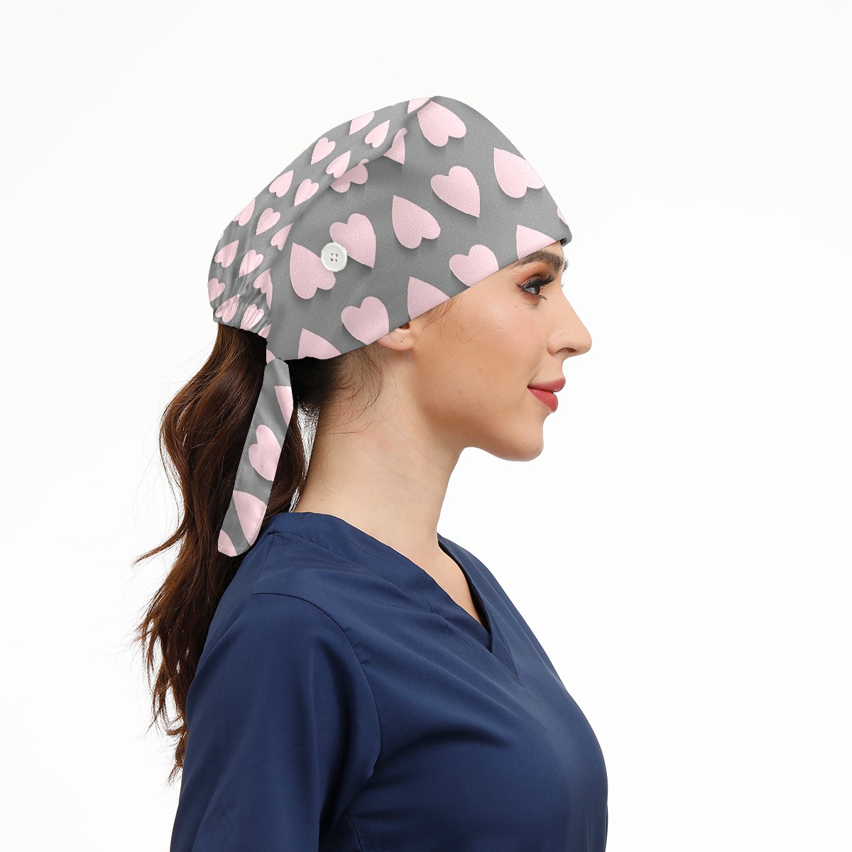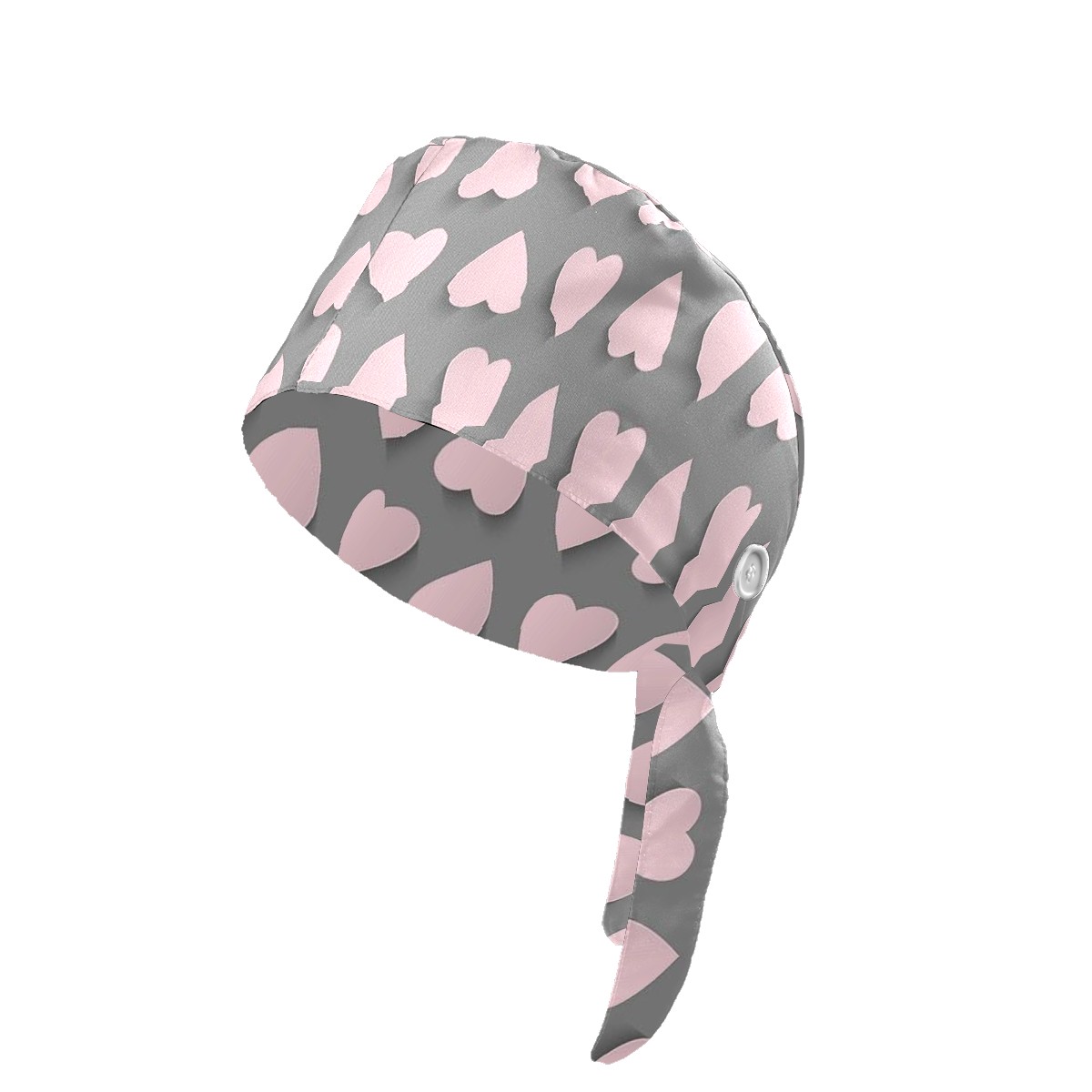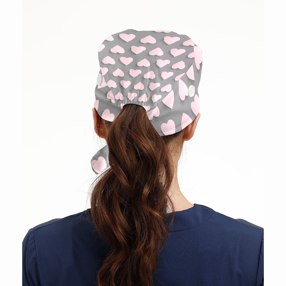 Working Caps with Button & Sweatband Satin Lined Cotton Adjustable Nurse Hats Elastic Band Scrub Cap Surgeon Hat Hearts (6)