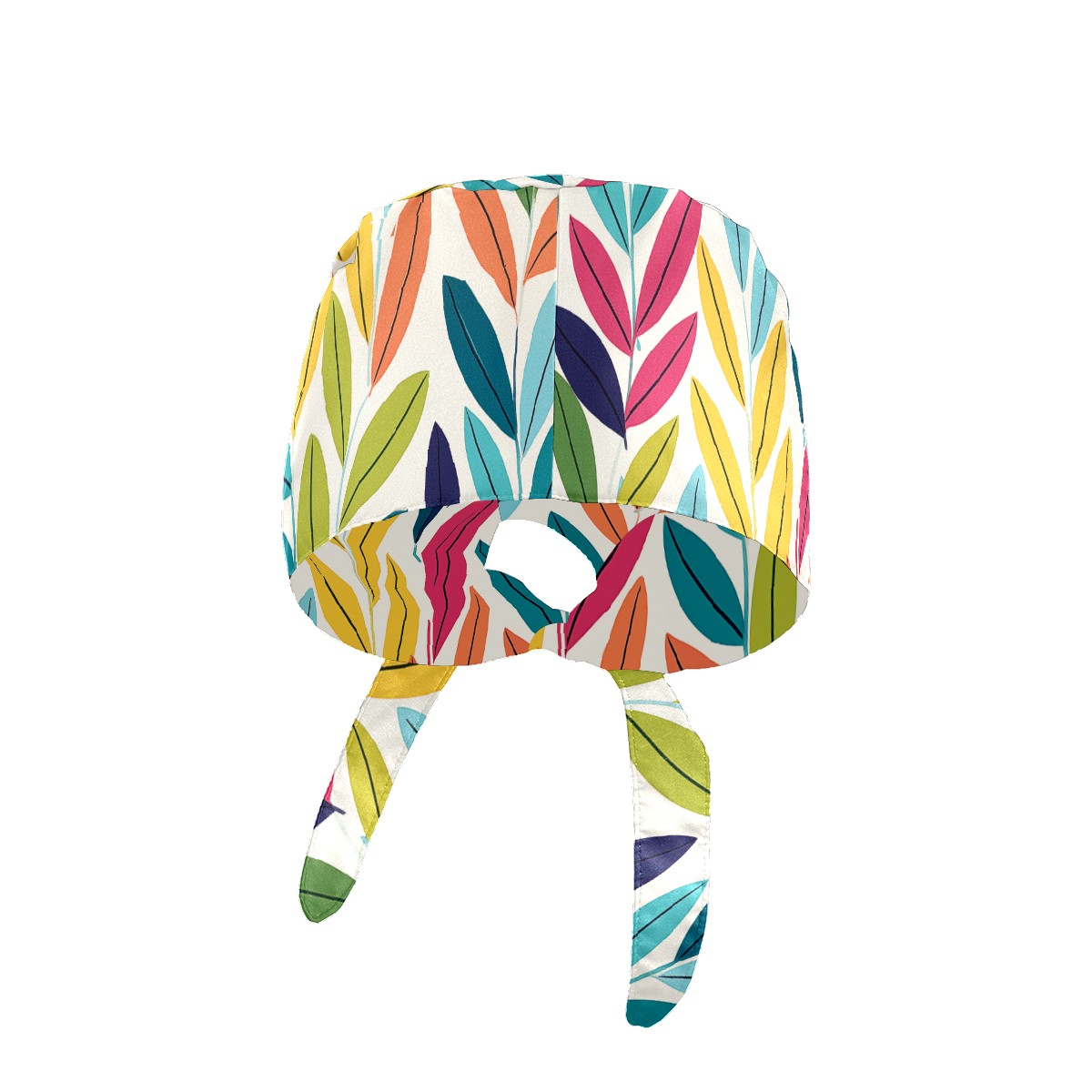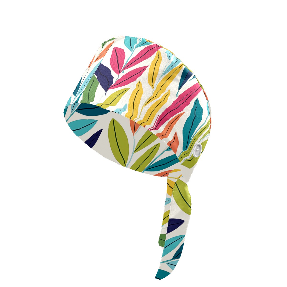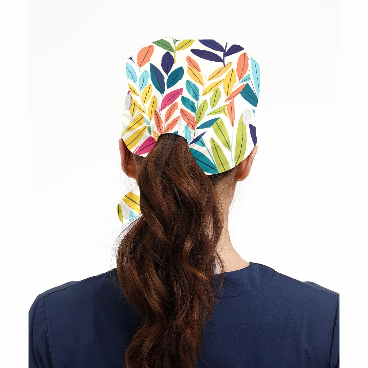 Working Caps with Button & Sweatband Satin Lined Cotton Adjustable Nurse Hats Elastic Band Scrub Cap Surgeon Hat Colorful Leaf