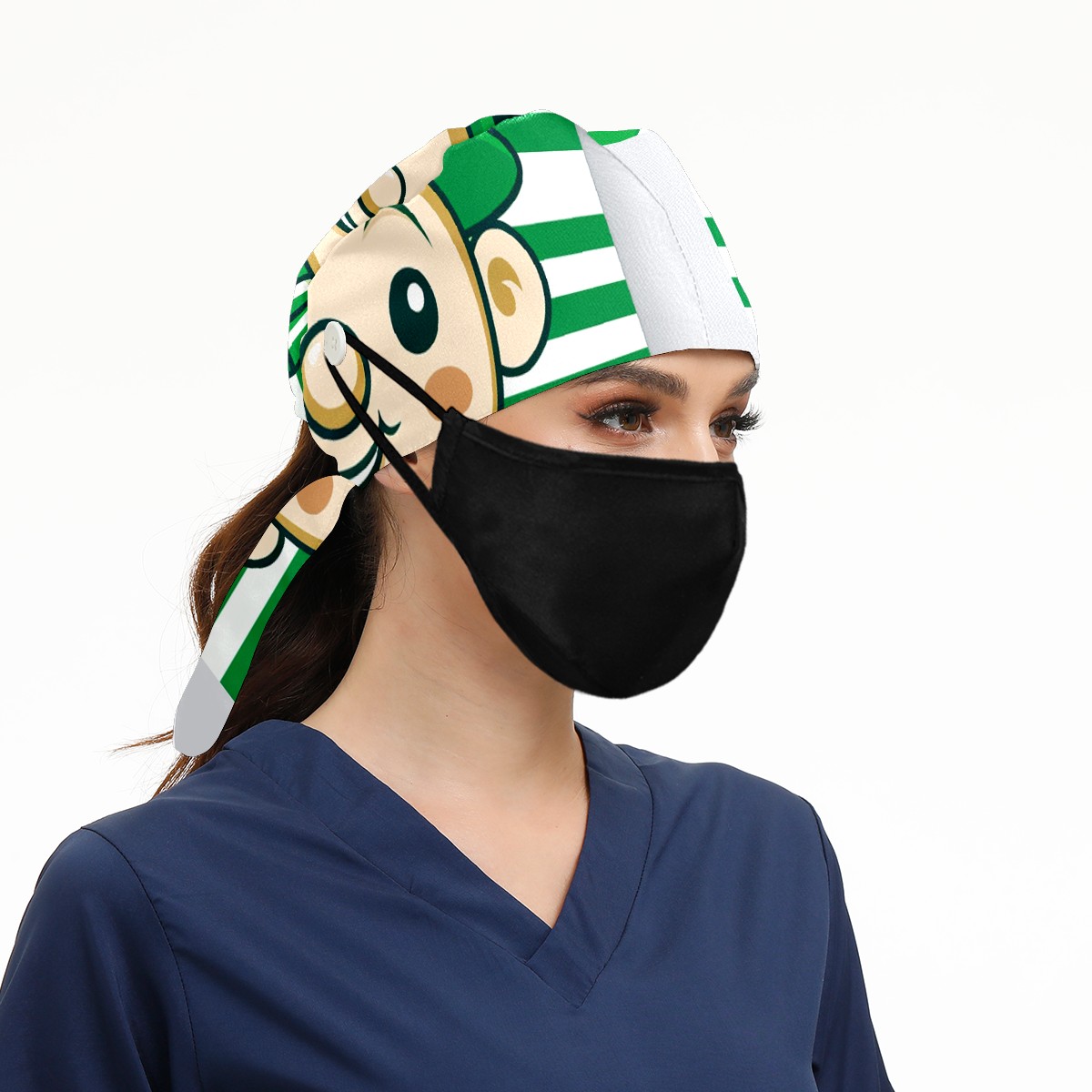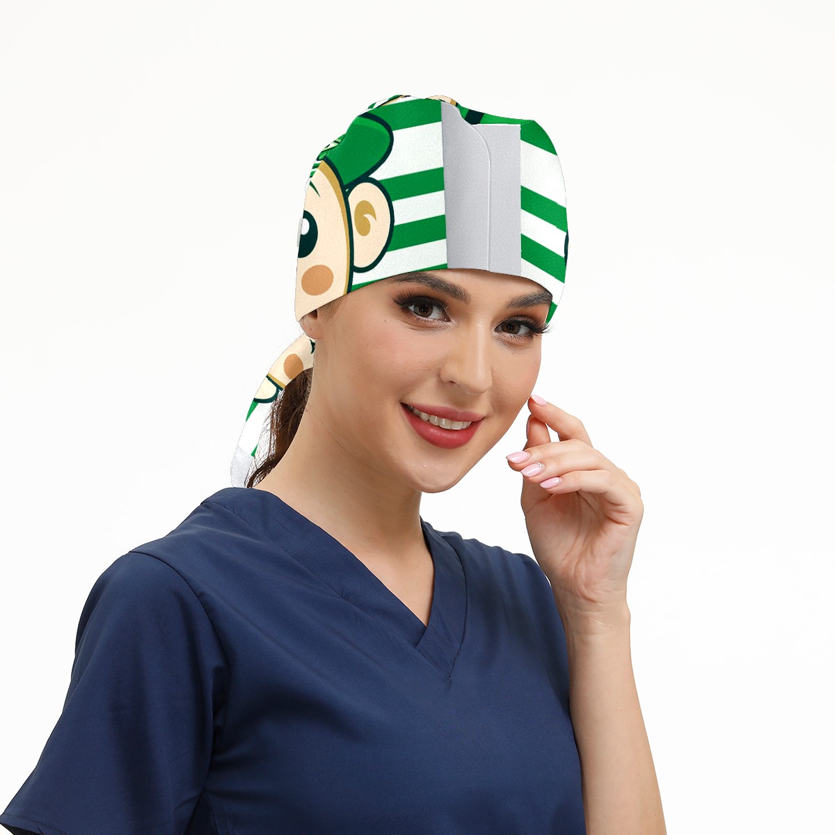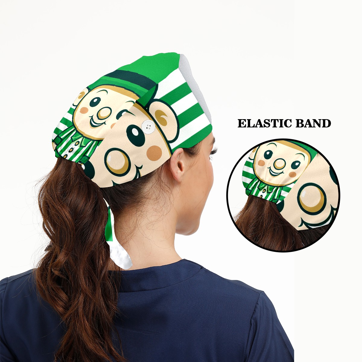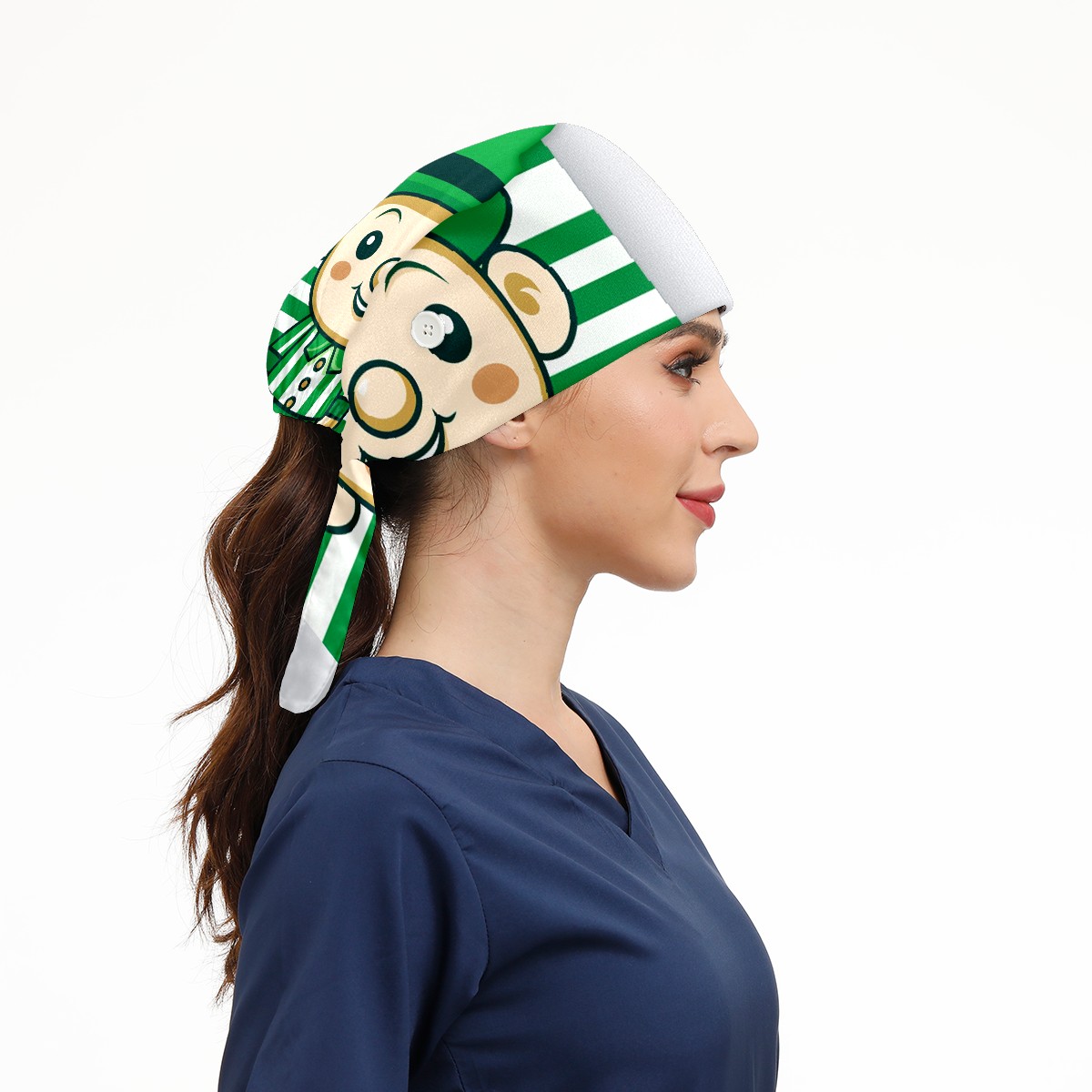 Working Caps with Button & Sweatband Satin Lined Cotton Adjustable Nurse Hats Elastic Band Scrub Cap Surgeon Hat ST Patrick 125