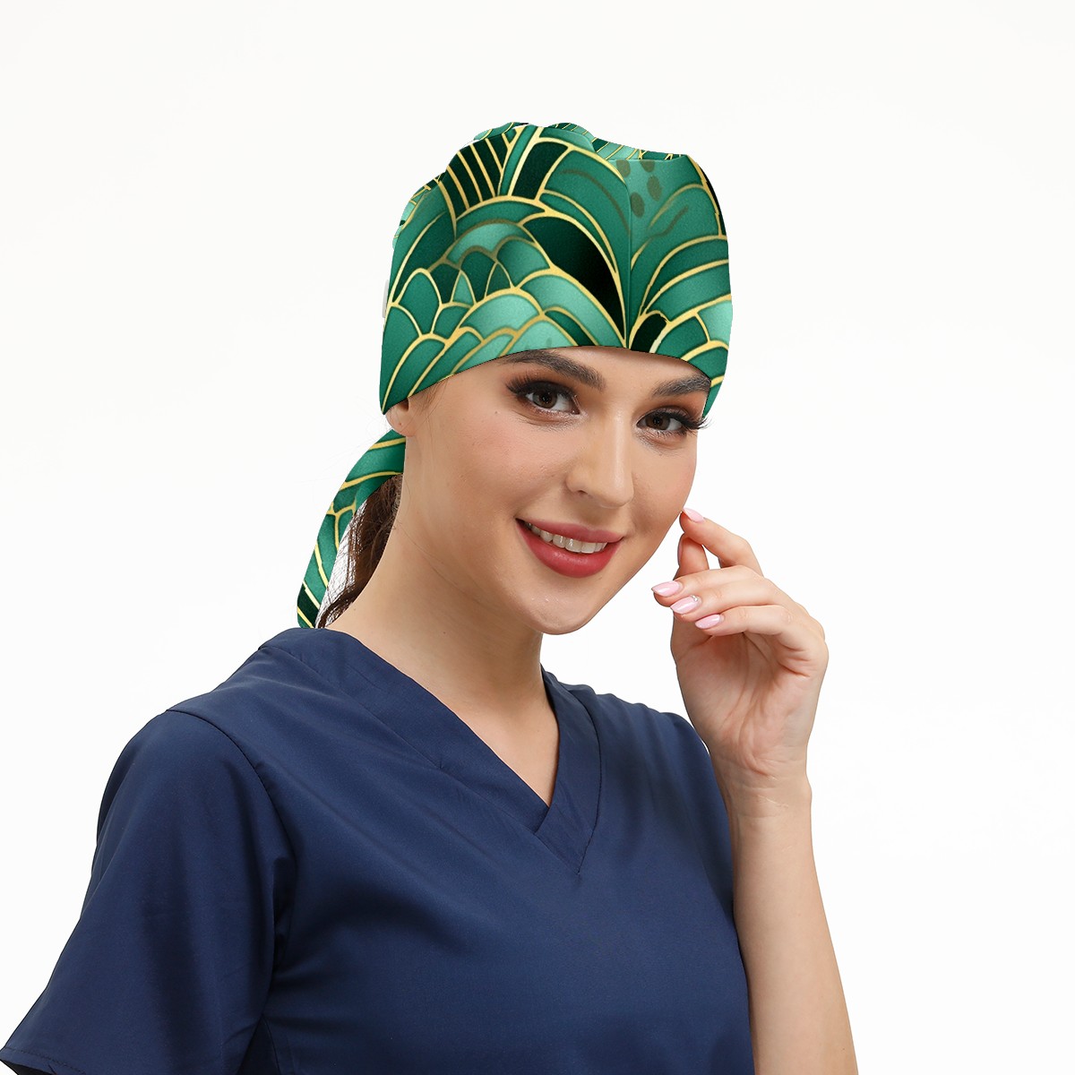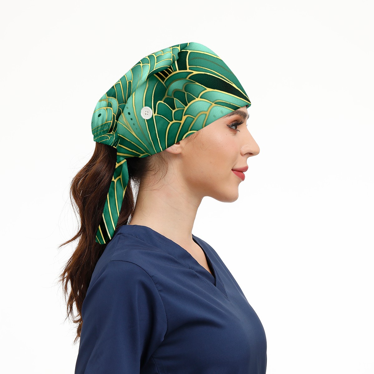 Working Caps with Button & Sweatband Satin Lined Cotton Adjustable Nurse Hats Elastic Band Scrub Cap Surgeon Hat ST Patrick 119