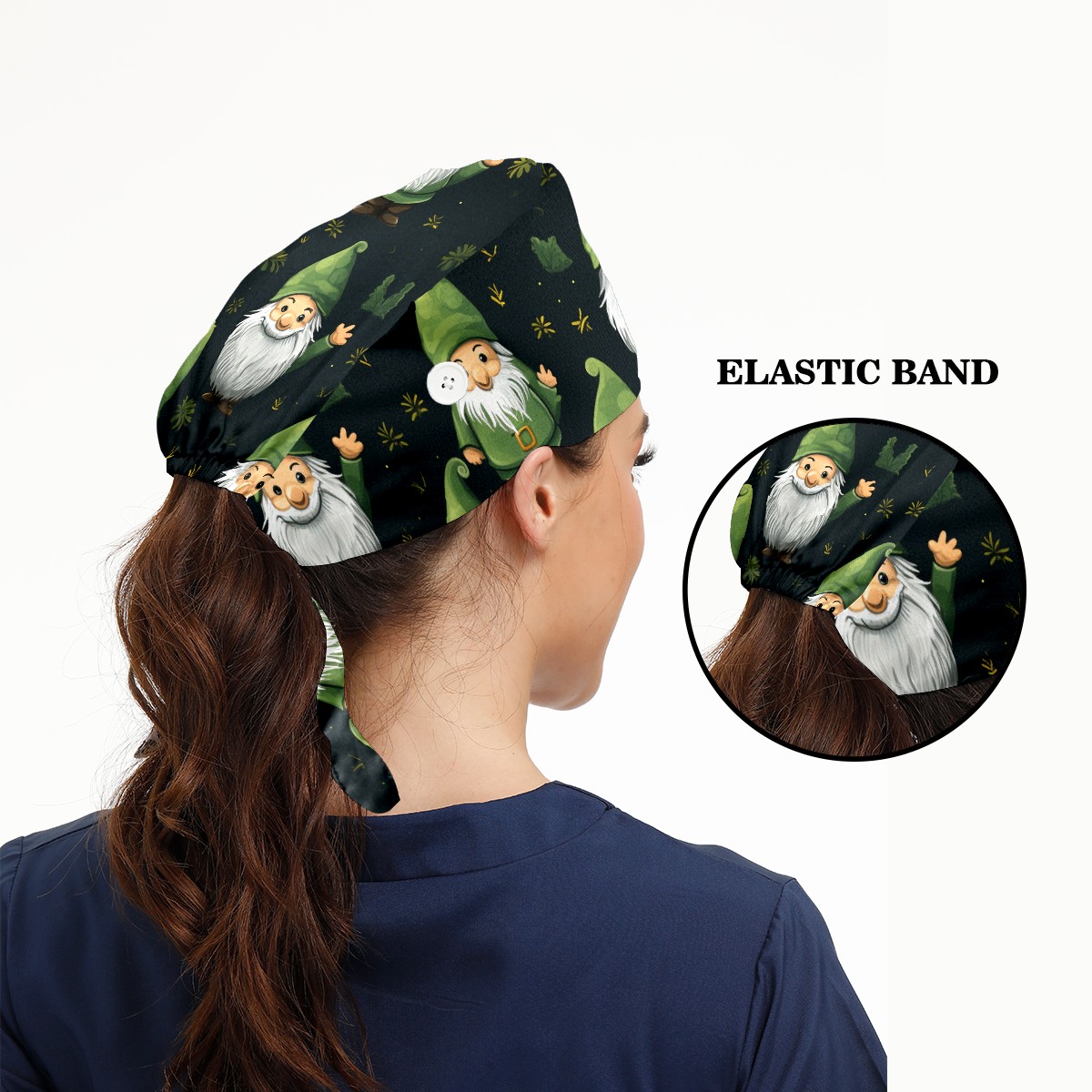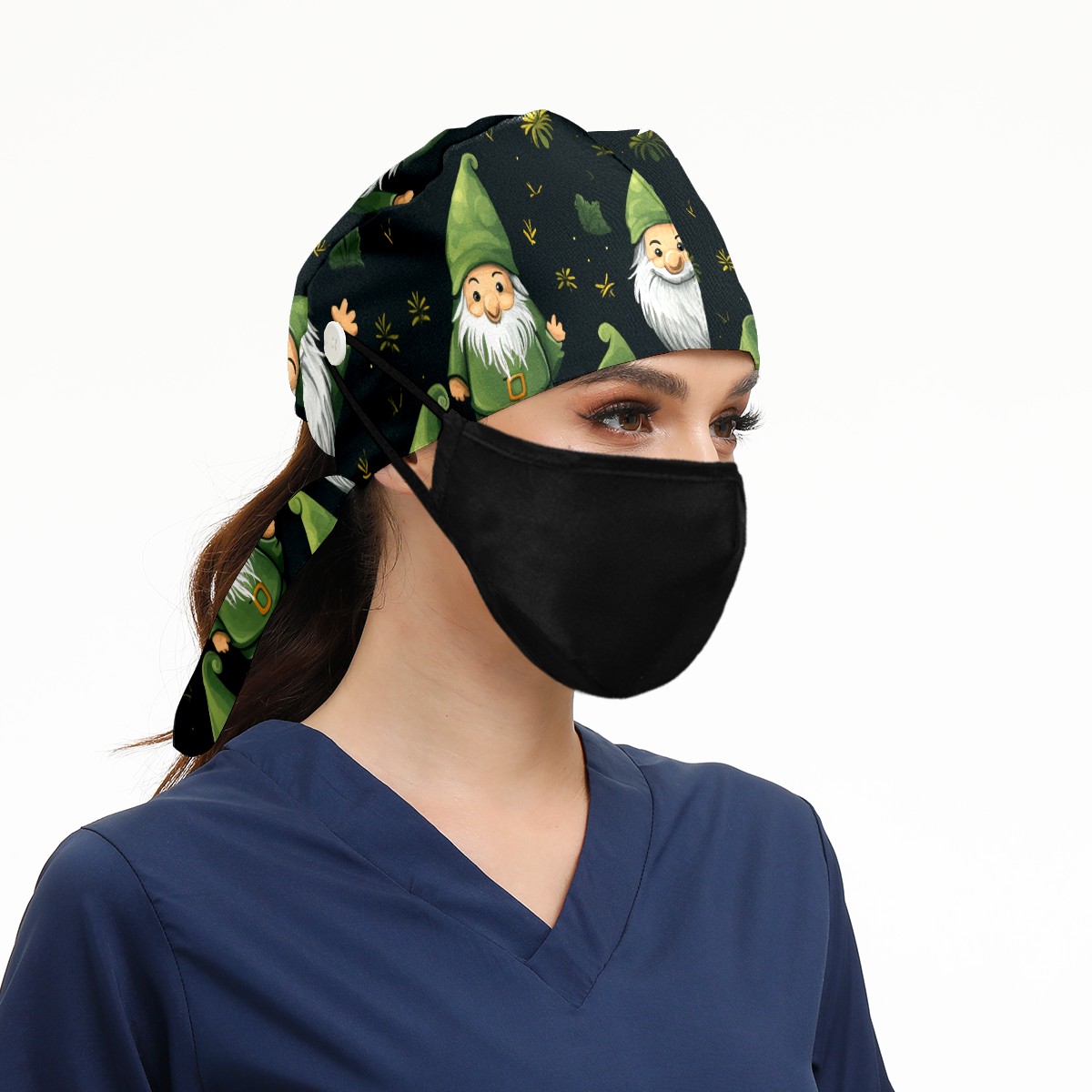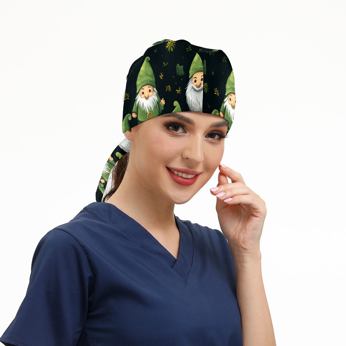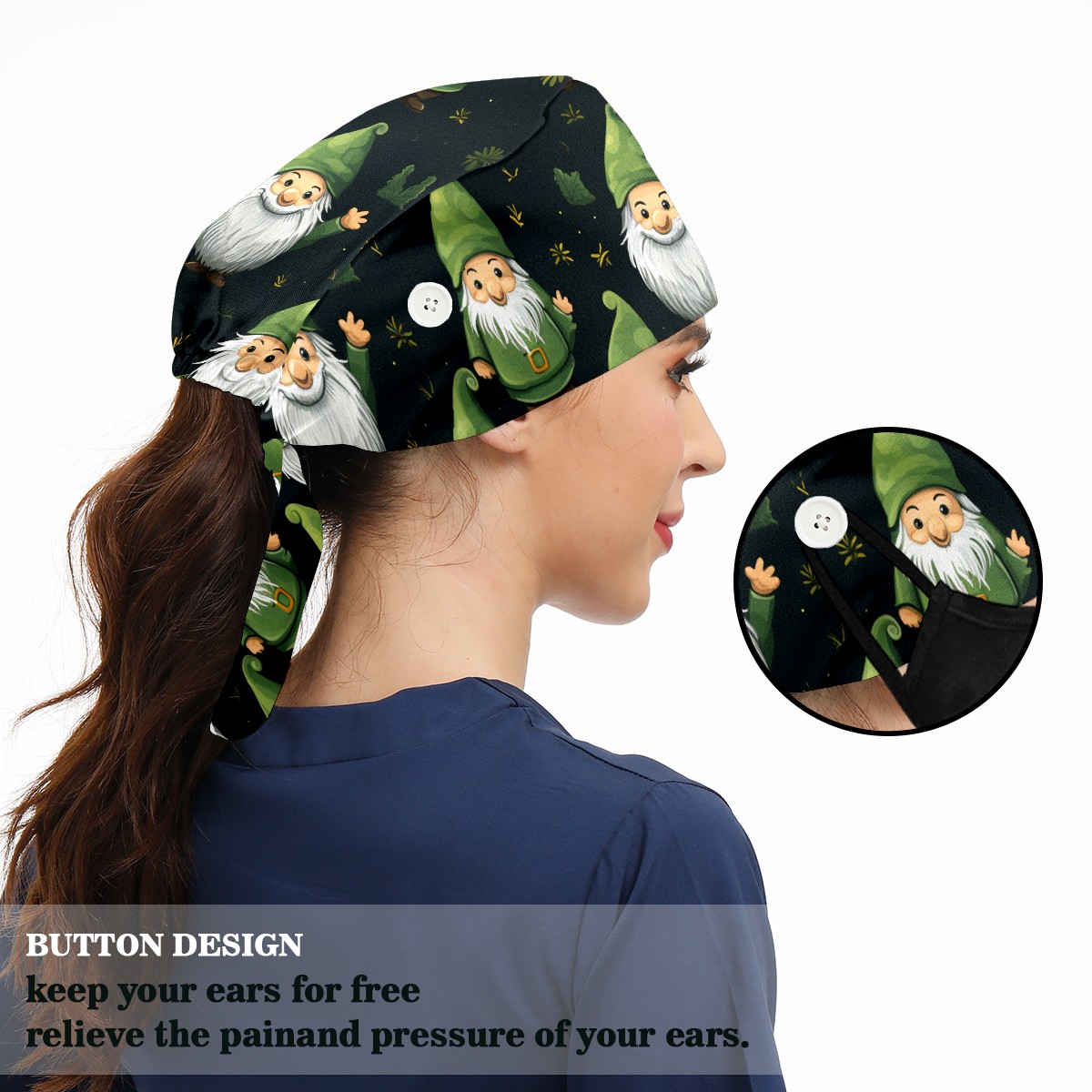 Working Caps with Button & Sweatband Satin Lined Cotton Adjustable Nurse Hats Elastic Band Scrub Cap Surgeon Hat ST Patrick 99