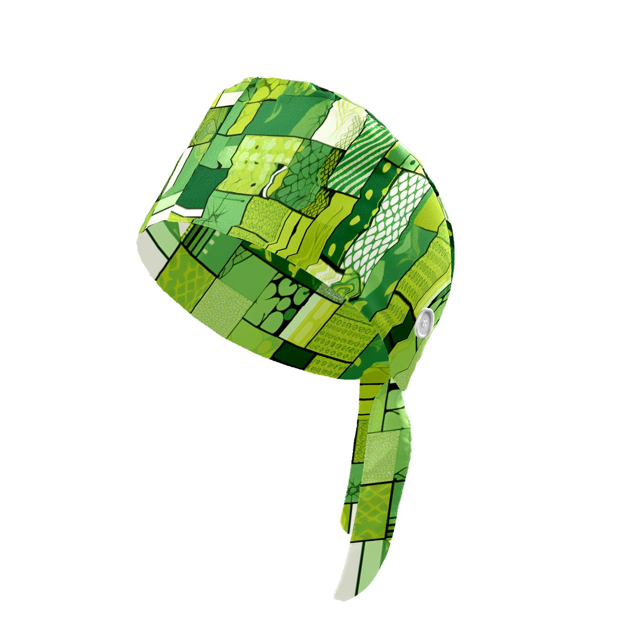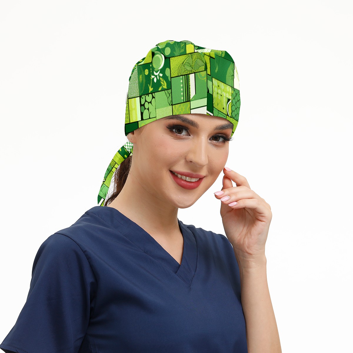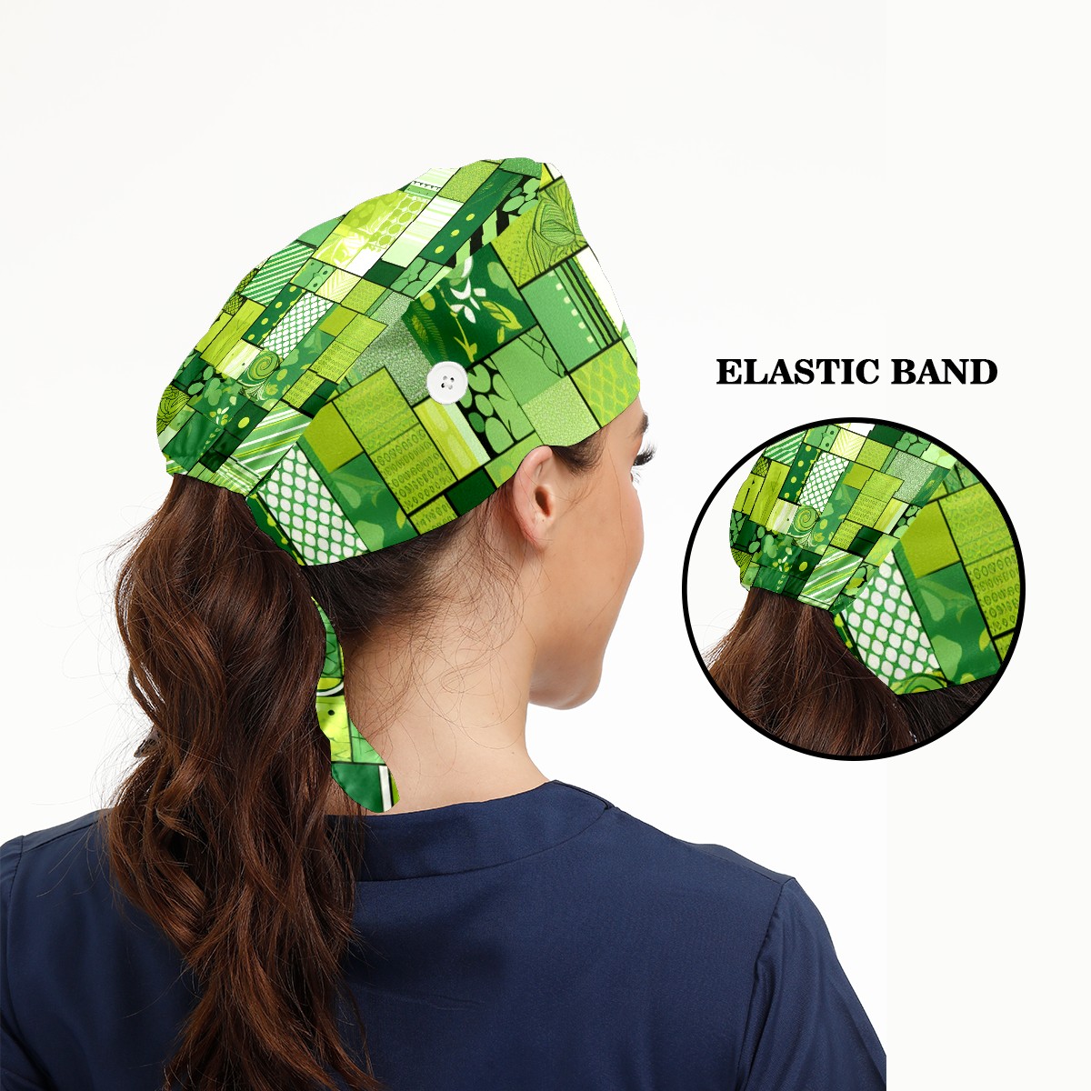 Working Caps with Button & Sweatband Satin Lined Cotton Adjustable Nurse Hats Elastic Band Scrub Cap Surgeon Hat ST Patrick 85