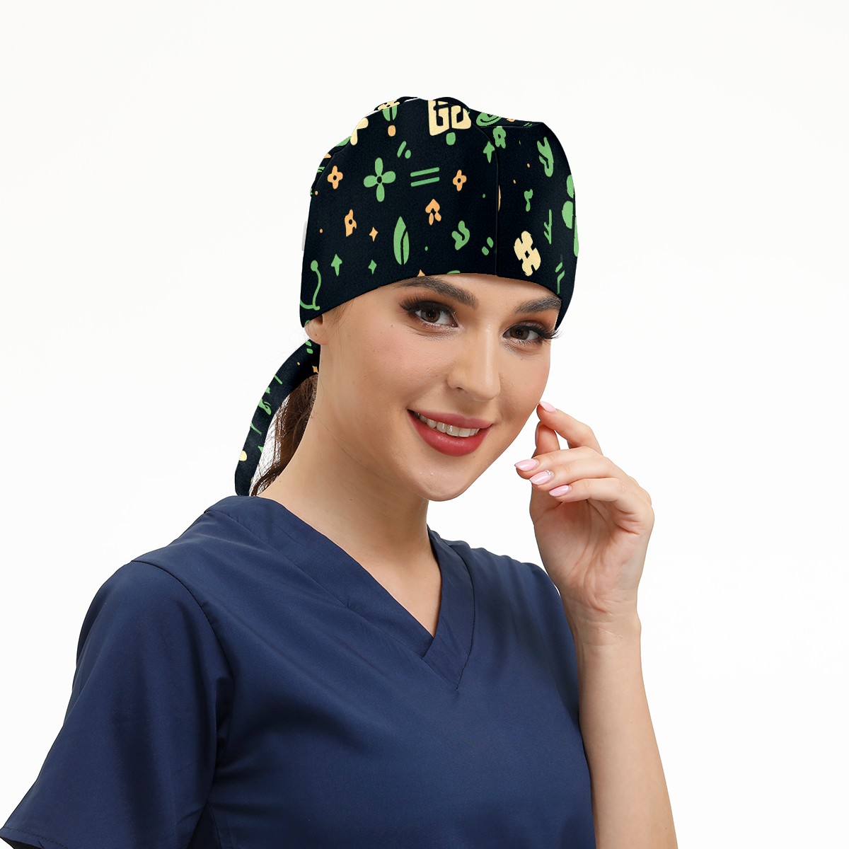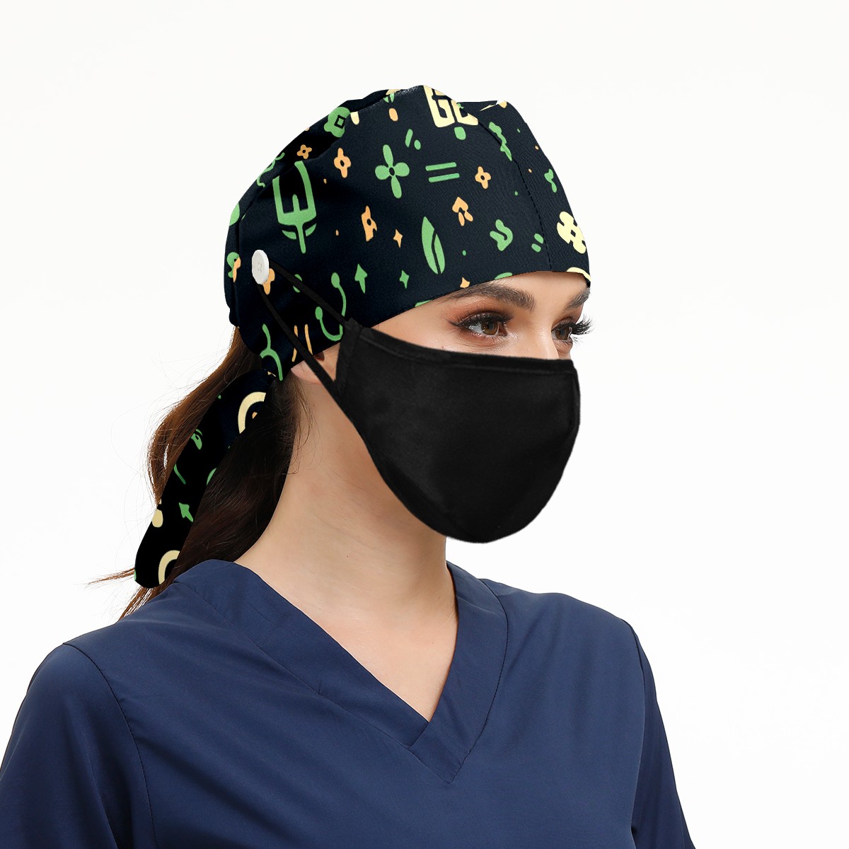 Working Caps with Button & Sweatband Satin Lined Cotton Adjustable Nurse Hats Elastic Band Scrub Cap Surgeon Hat ST Patrick 76