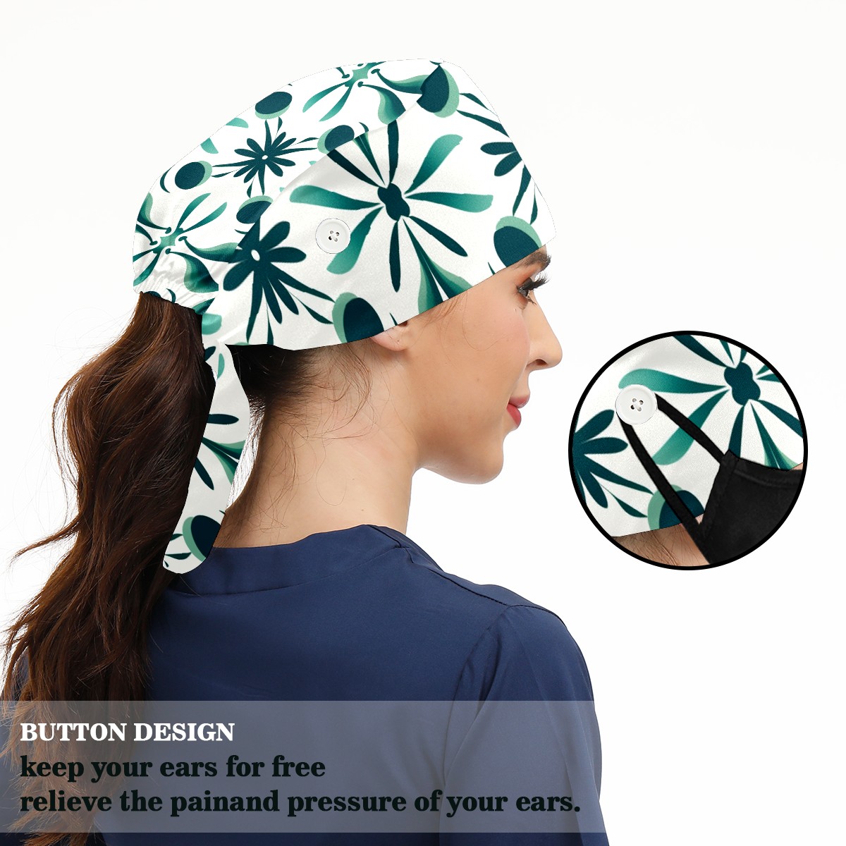 Working Caps with Button & Sweatband Satin Lined Cotton Adjustable Nurse Hats Elastic Band Scrub Cap Surgeon Hat ST Patrick 42