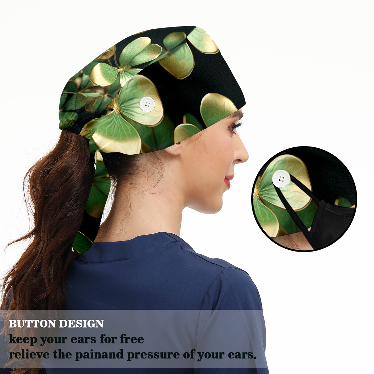Working Caps with Button & Sweatband Satin Lined Cotton Adjustable Nurse Hats Elastic Band Scrub Cap Surgeon Hat St Patricks Day 66