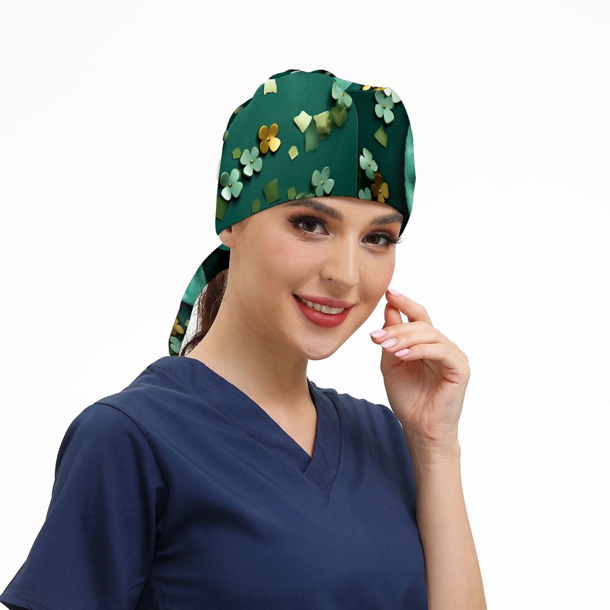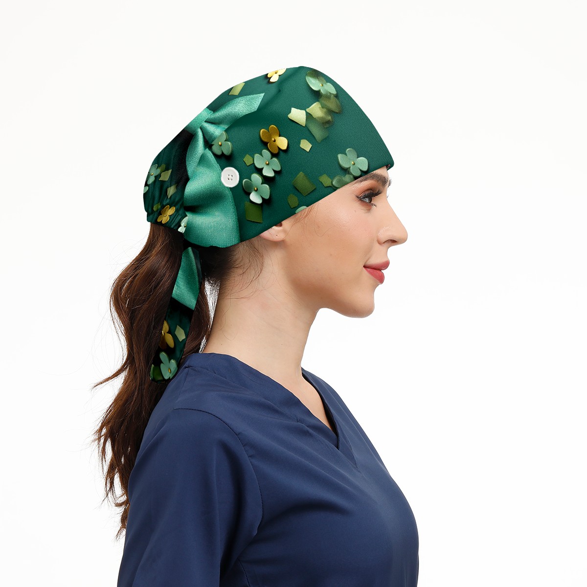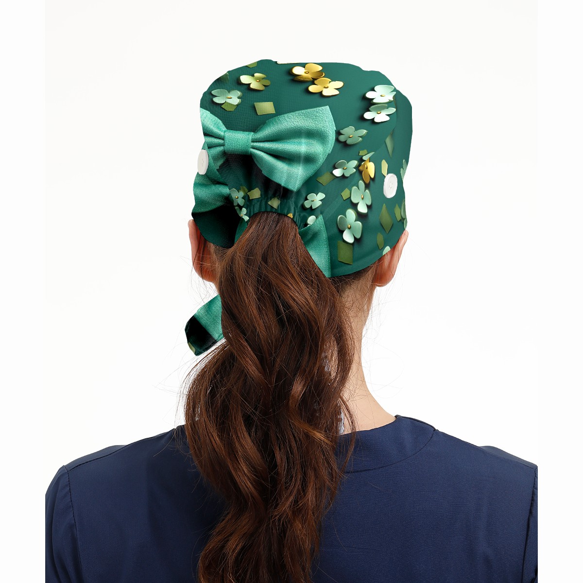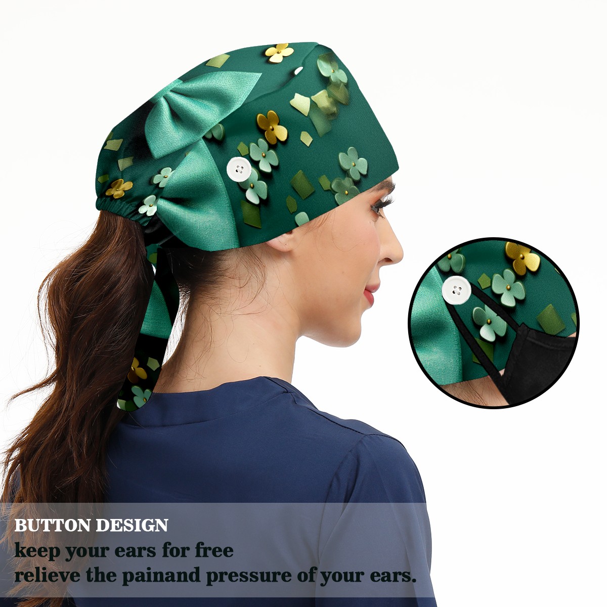 Working Caps with Button & Sweatband Satin Lined Cotton Adjustable Nurse Hats Elastic Band Scrub Cap Surgeon Hat St. Patrick's Day (51)