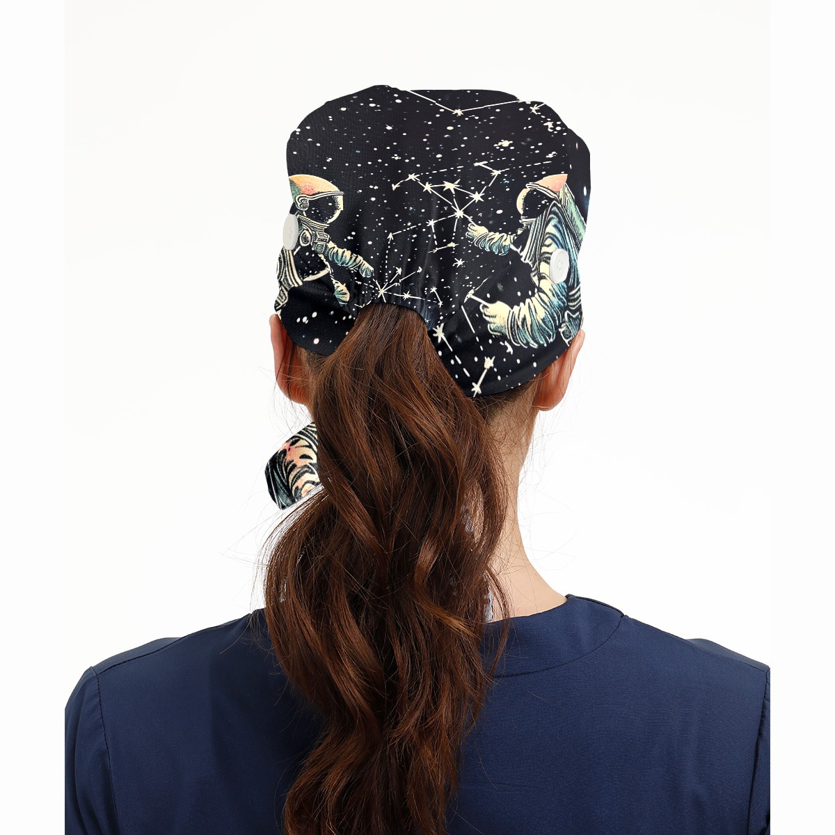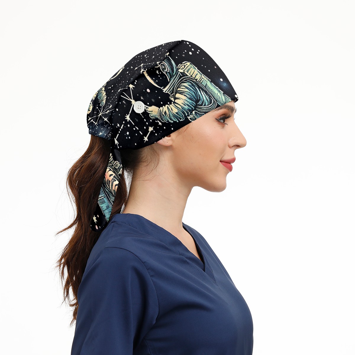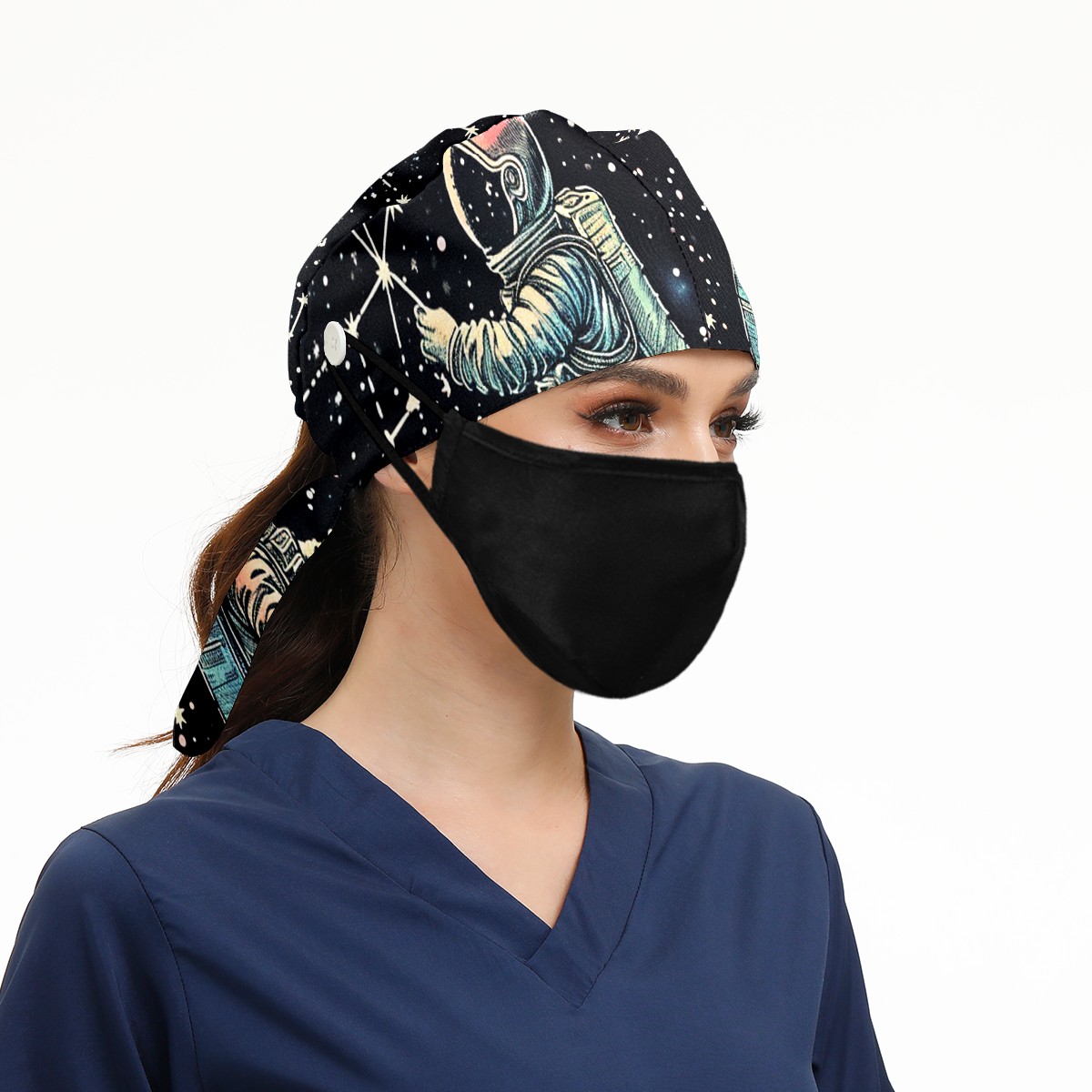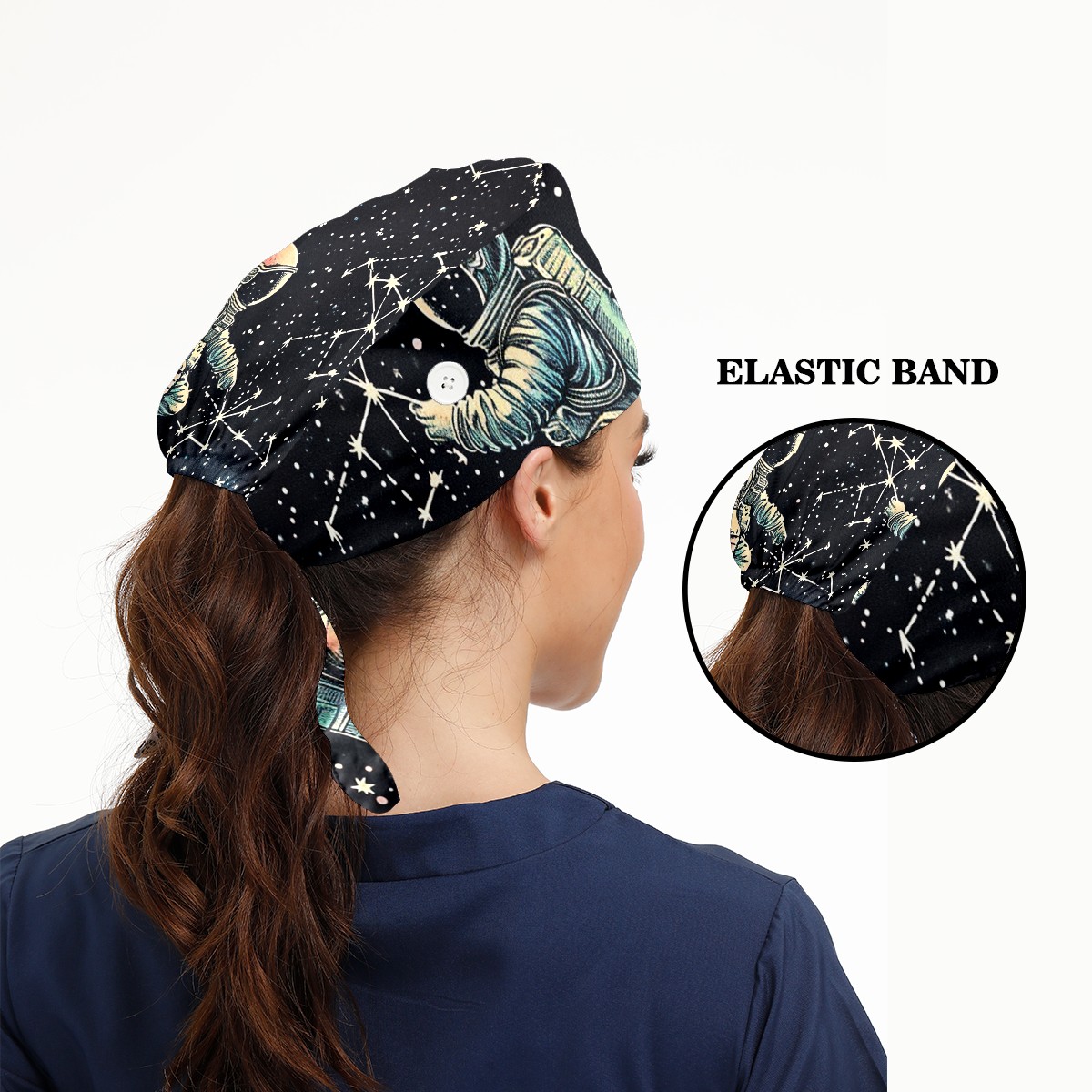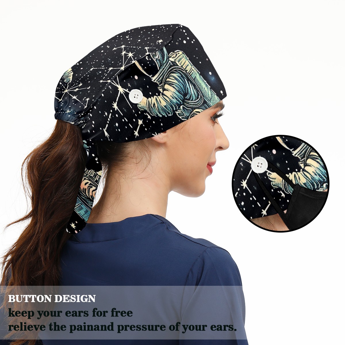 Working Caps with Button & Sweatband Satin Lined Cotton Adjustable Nurse Hats Elastic Band Scrub Cap Surgeon Hat Astronaut