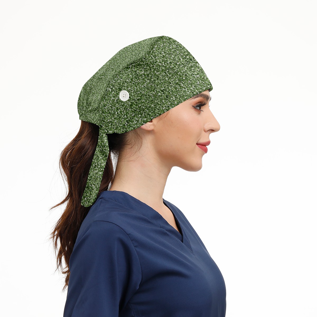 Working Caps with Button & Sweatband Satin Lined Cotton Adjustable Nurse Hats Elastic Band Scrub Cap Surgeon Hat Green