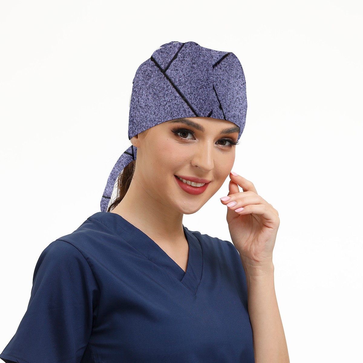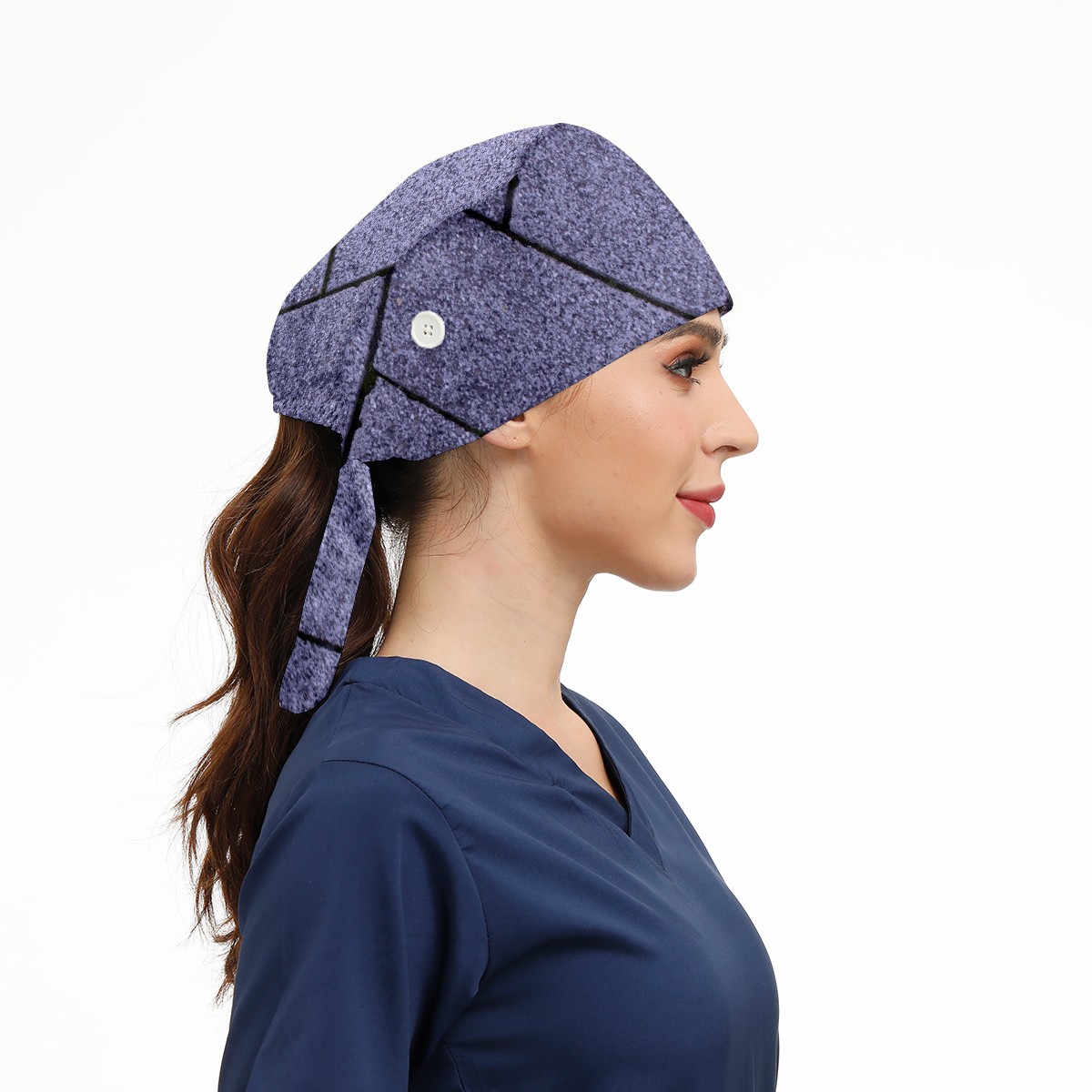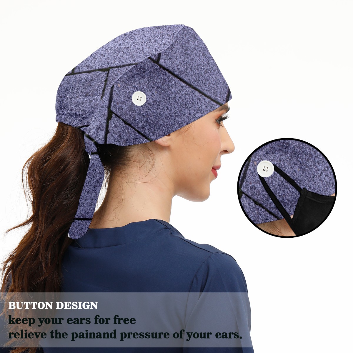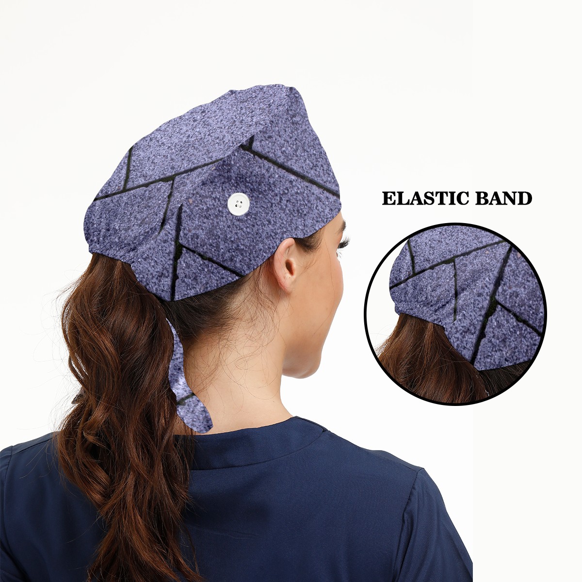 Working Caps with Button & Sweatband Satin Lined Cotton Adjustable Nurse Hats Elastic Band Scrub Cap Surgeon Hat Print Stone Texture