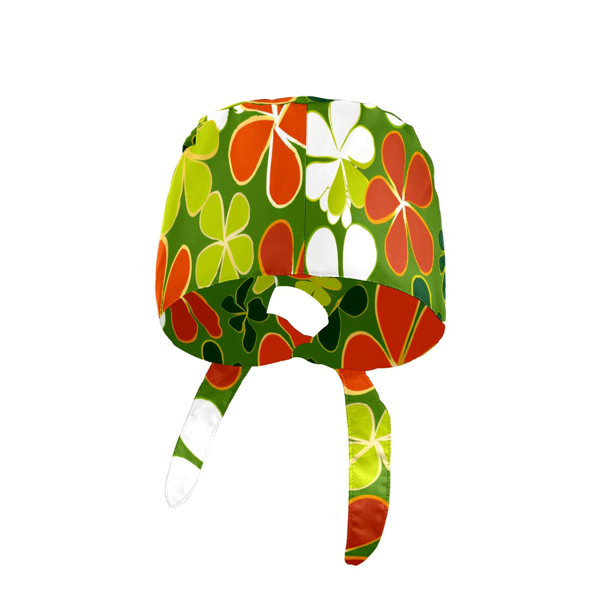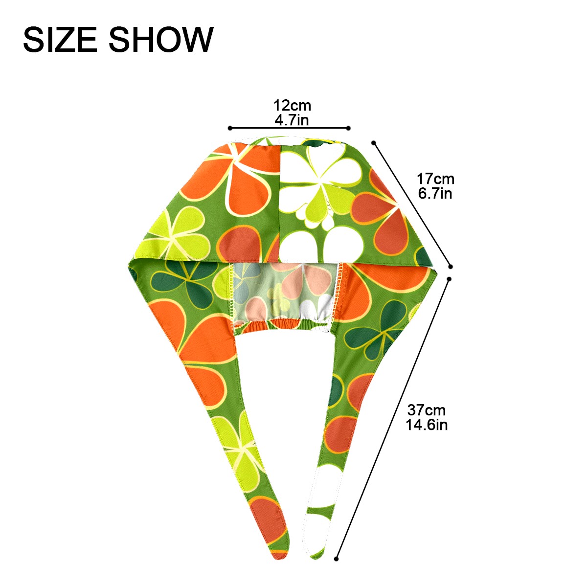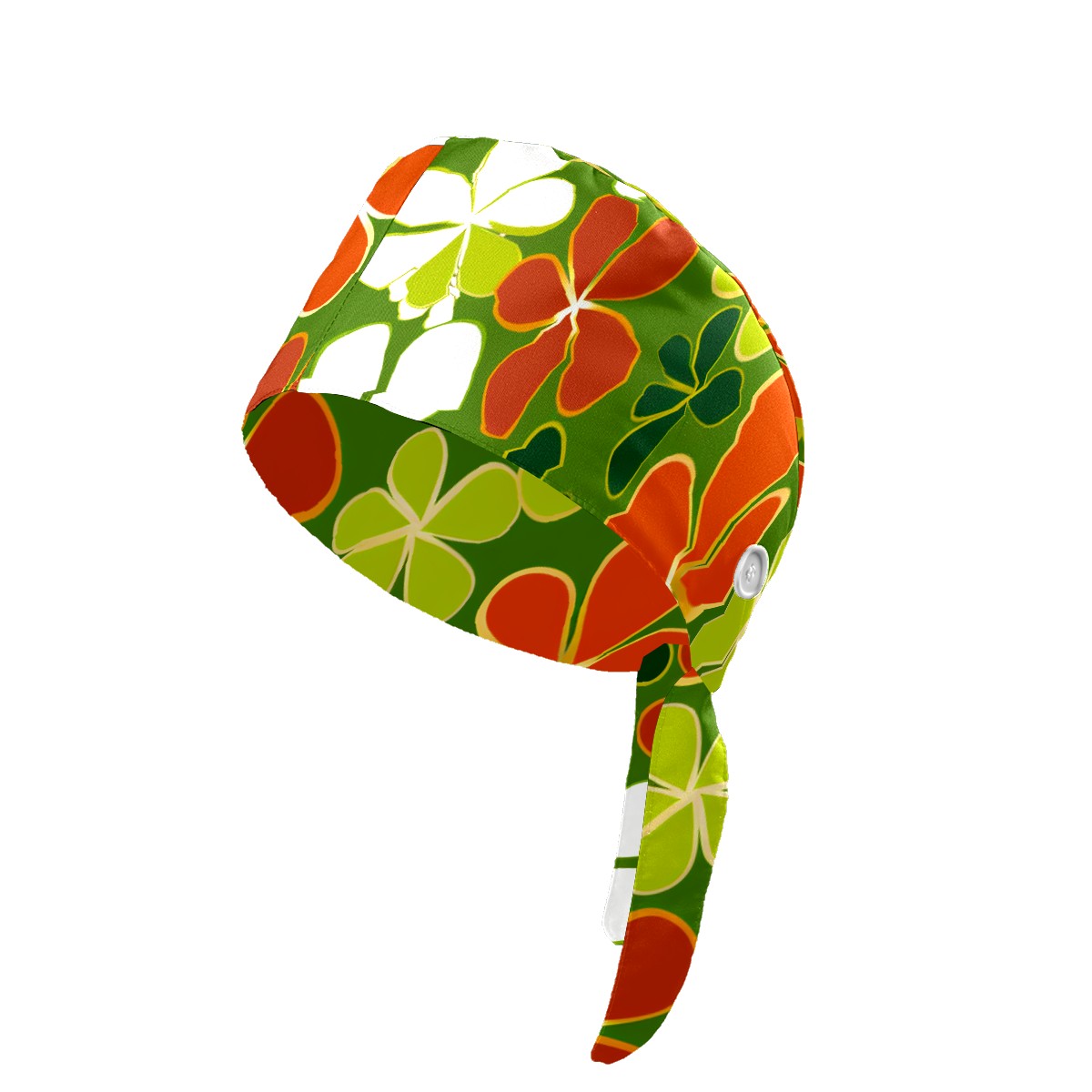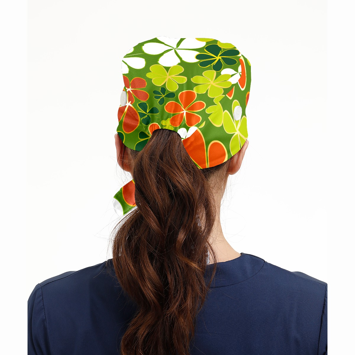 Working Caps with Button & Sweatband Satin Lined Cotton Adjustable Nurse Hats Elastic Band Scrub Cap Surgeon Hat Four Leaf Clover (57)
