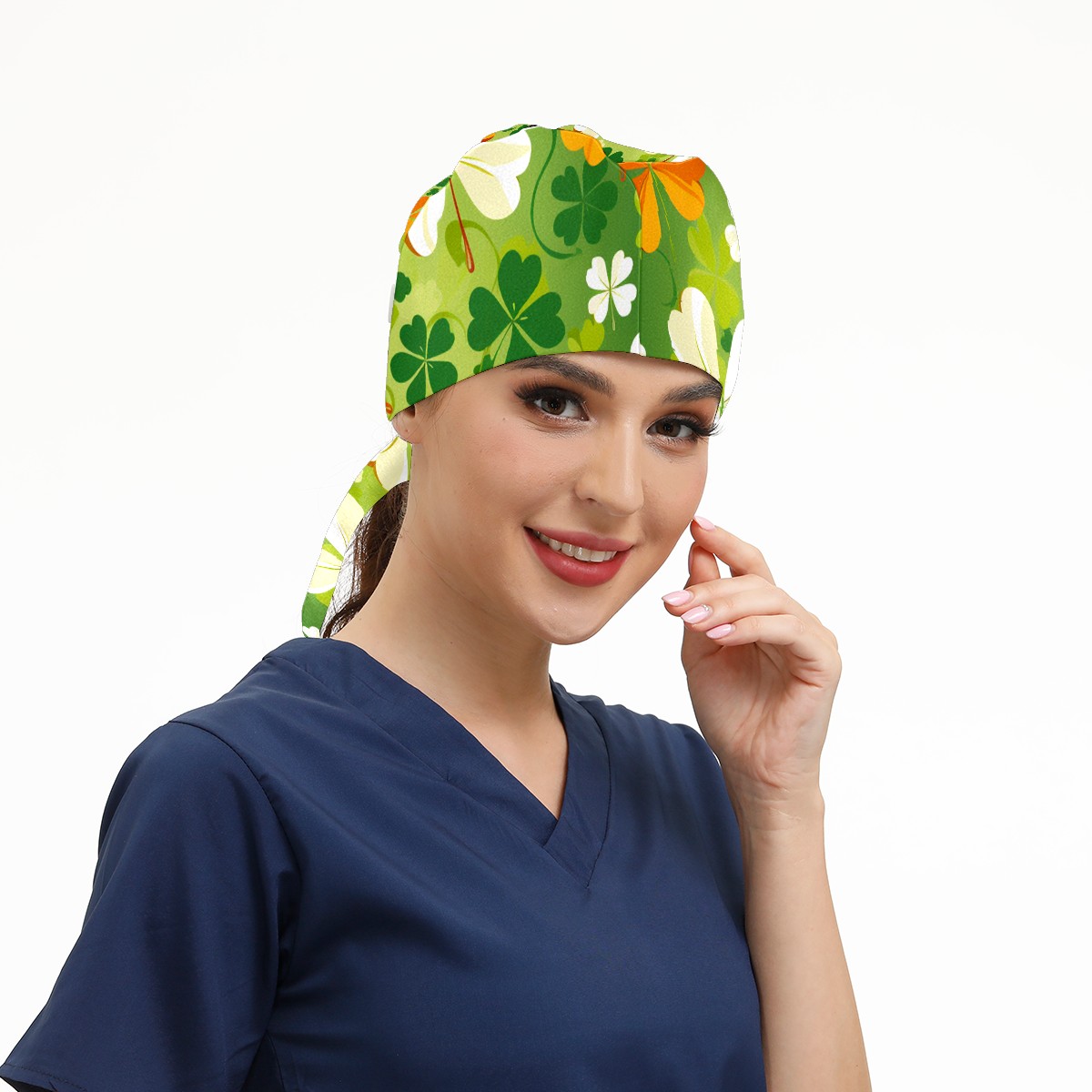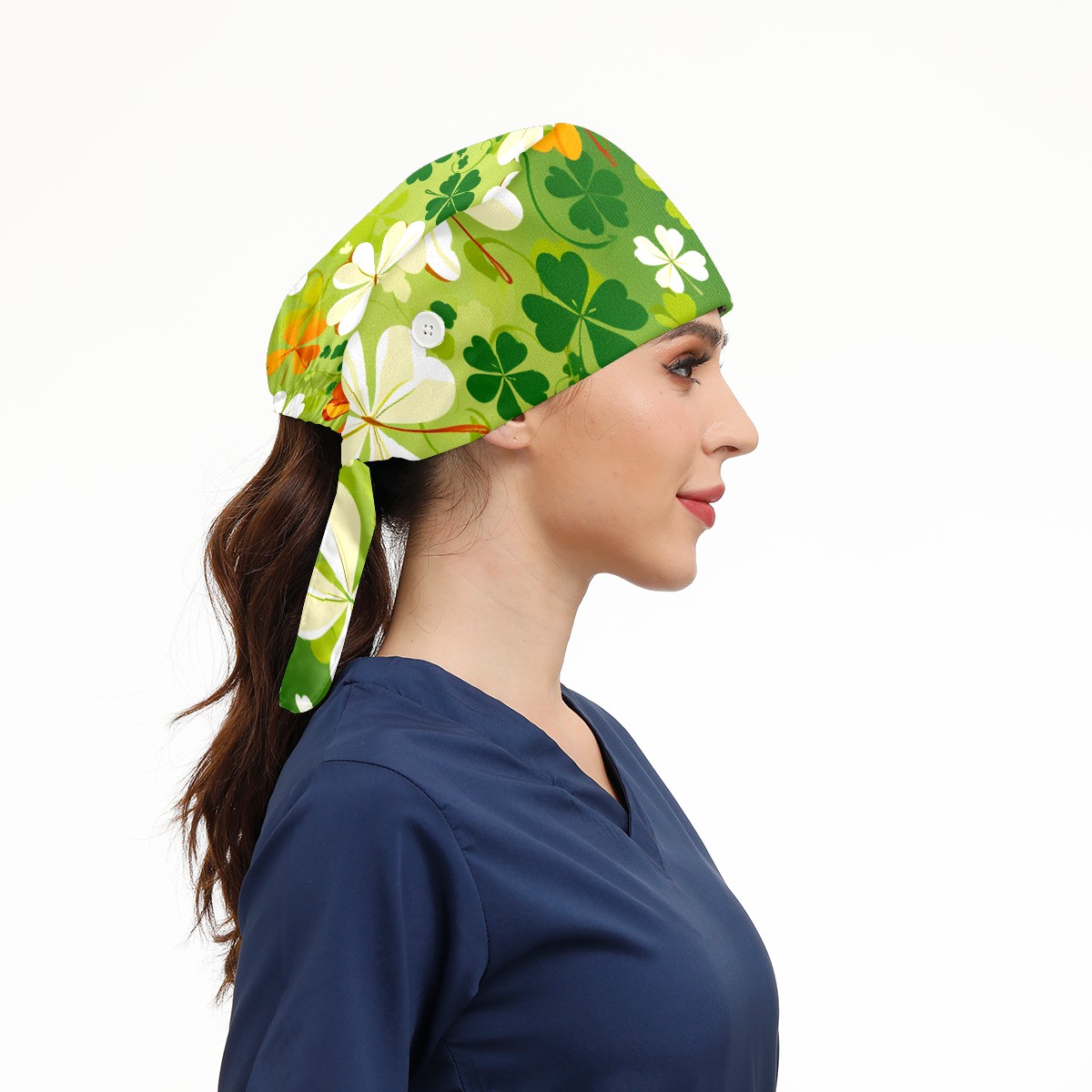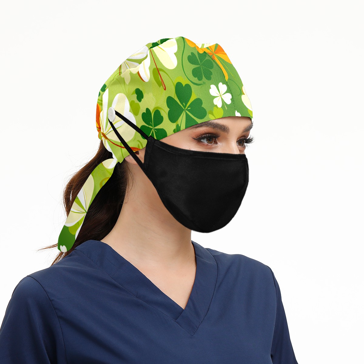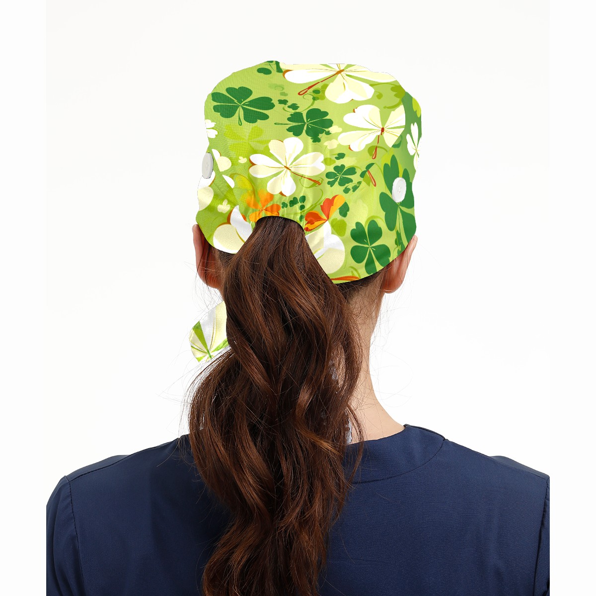 Working Caps with Button & Sweatband Satin Lined Cotton Adjustable Nurse Hats Elastic Band Scrub Cap Surgeon Hat Four Leaf Clover (43)