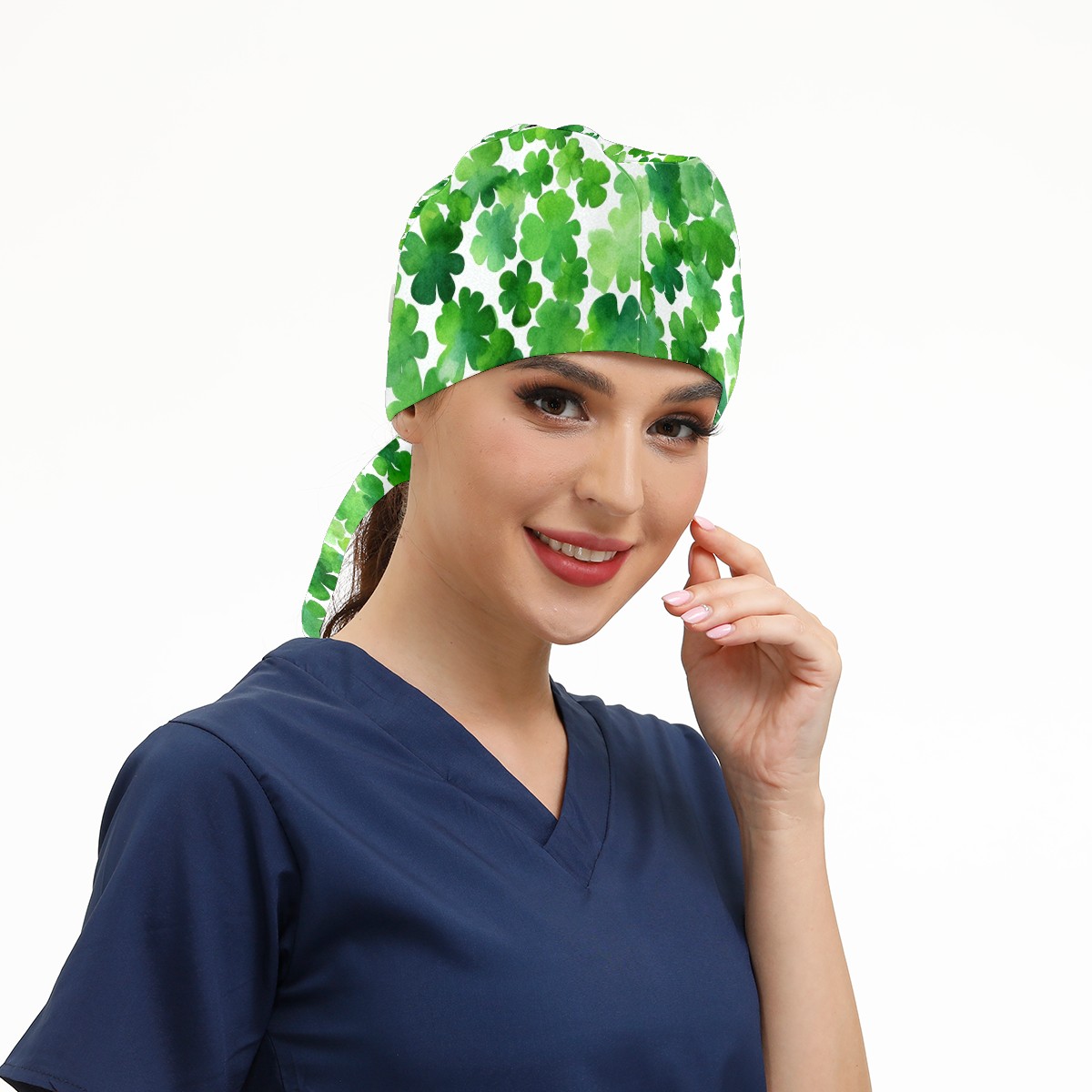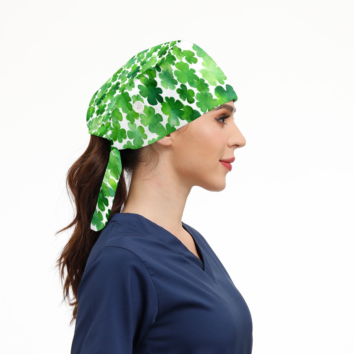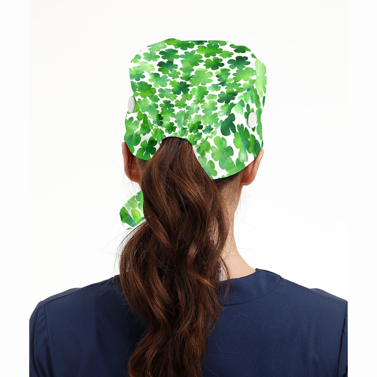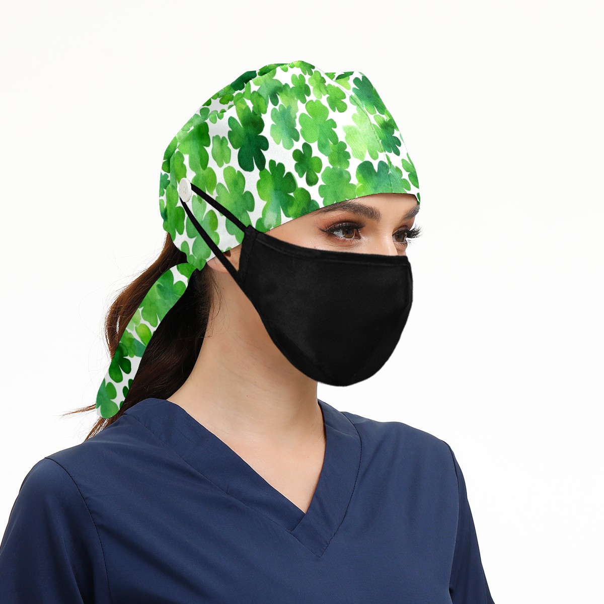 Working Caps with Button & Sweatband Satin Lined Cotton Adjustable Nurse Hats Elastic Band Scrub Cap Surgeon Hat Four Leaf Clover (13)