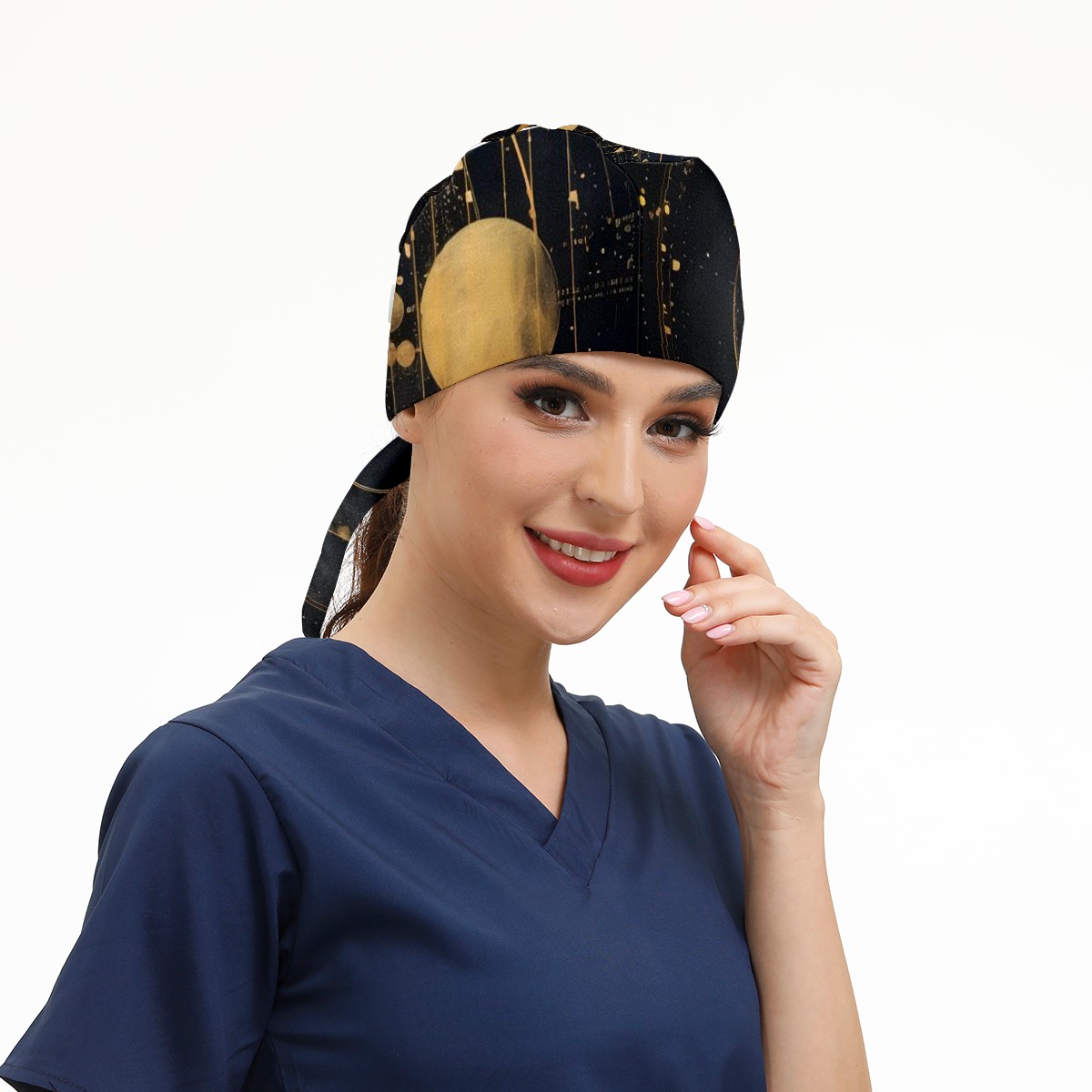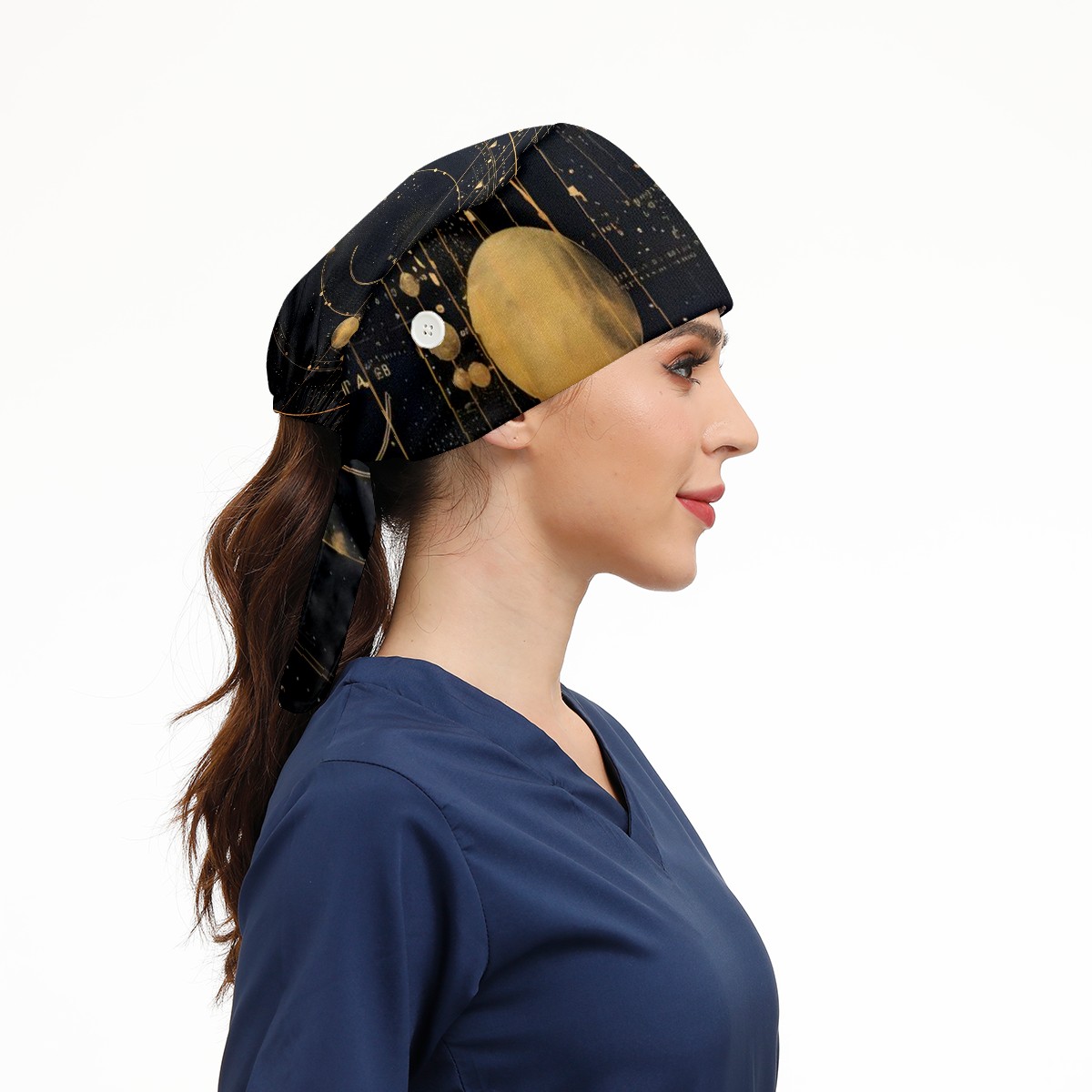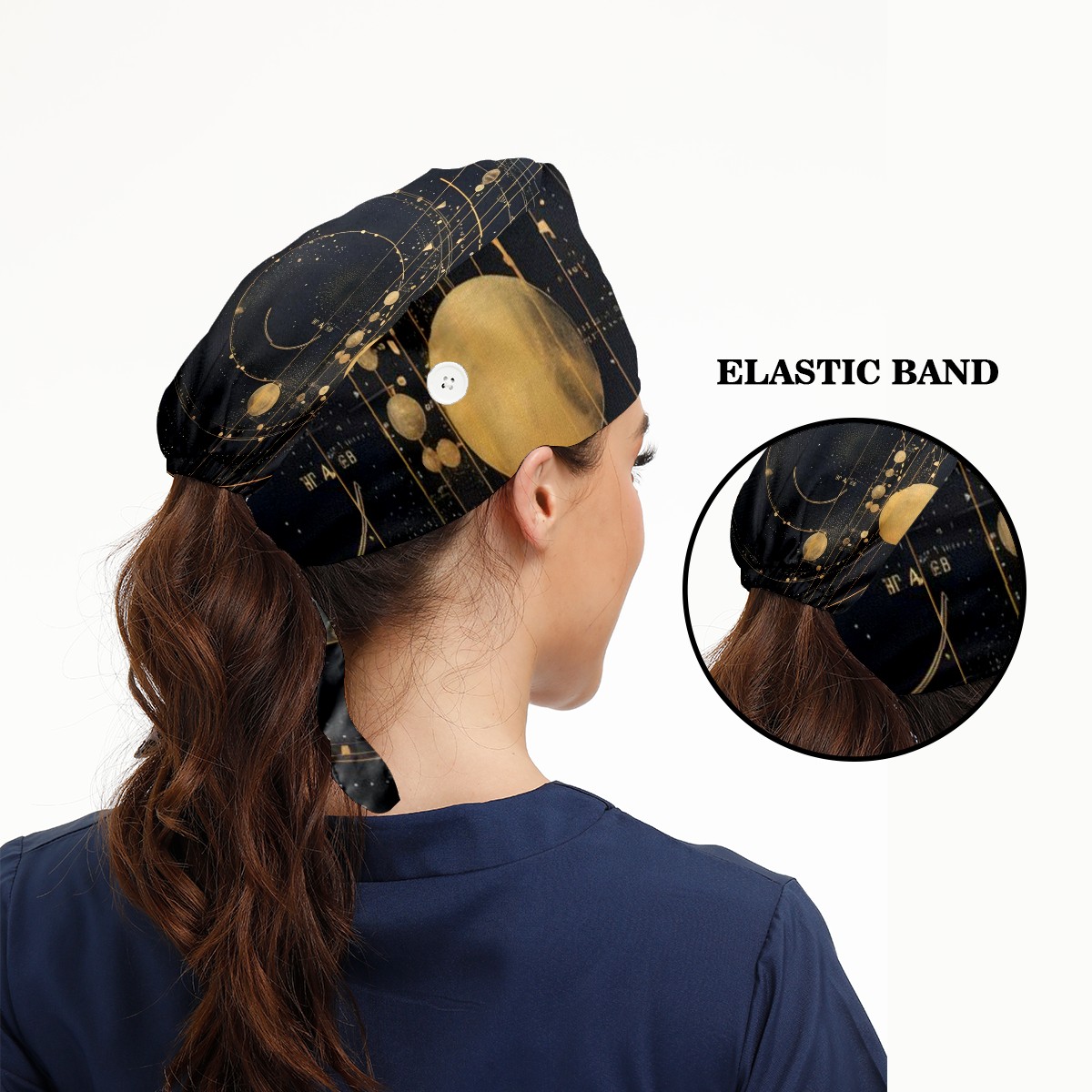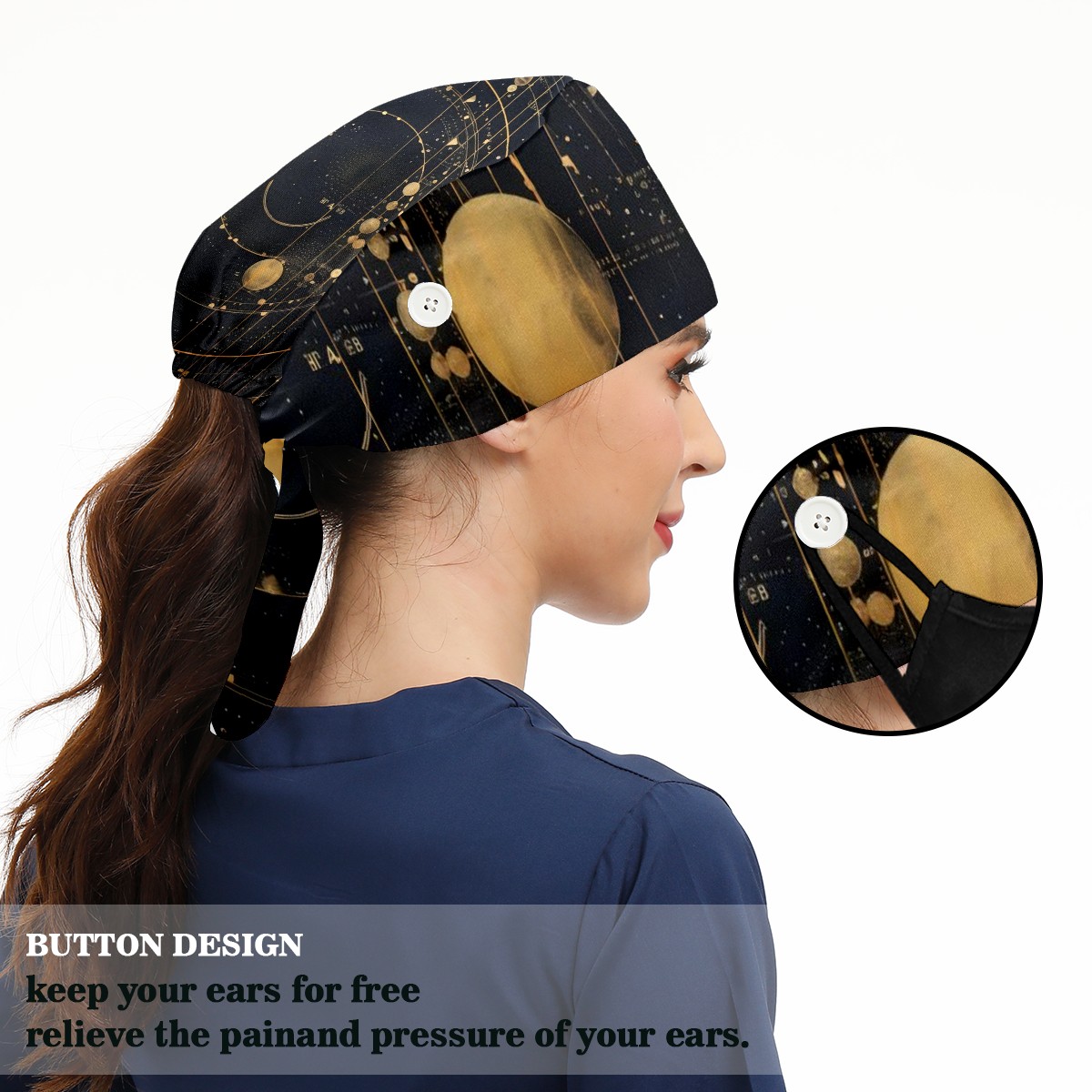 Working Caps with Button & Sweatband Satin Lined Cotton Adjustable Nurse Hats Elastic Band Scrub Cap Surgeon Hat Galaxy Starry Sky