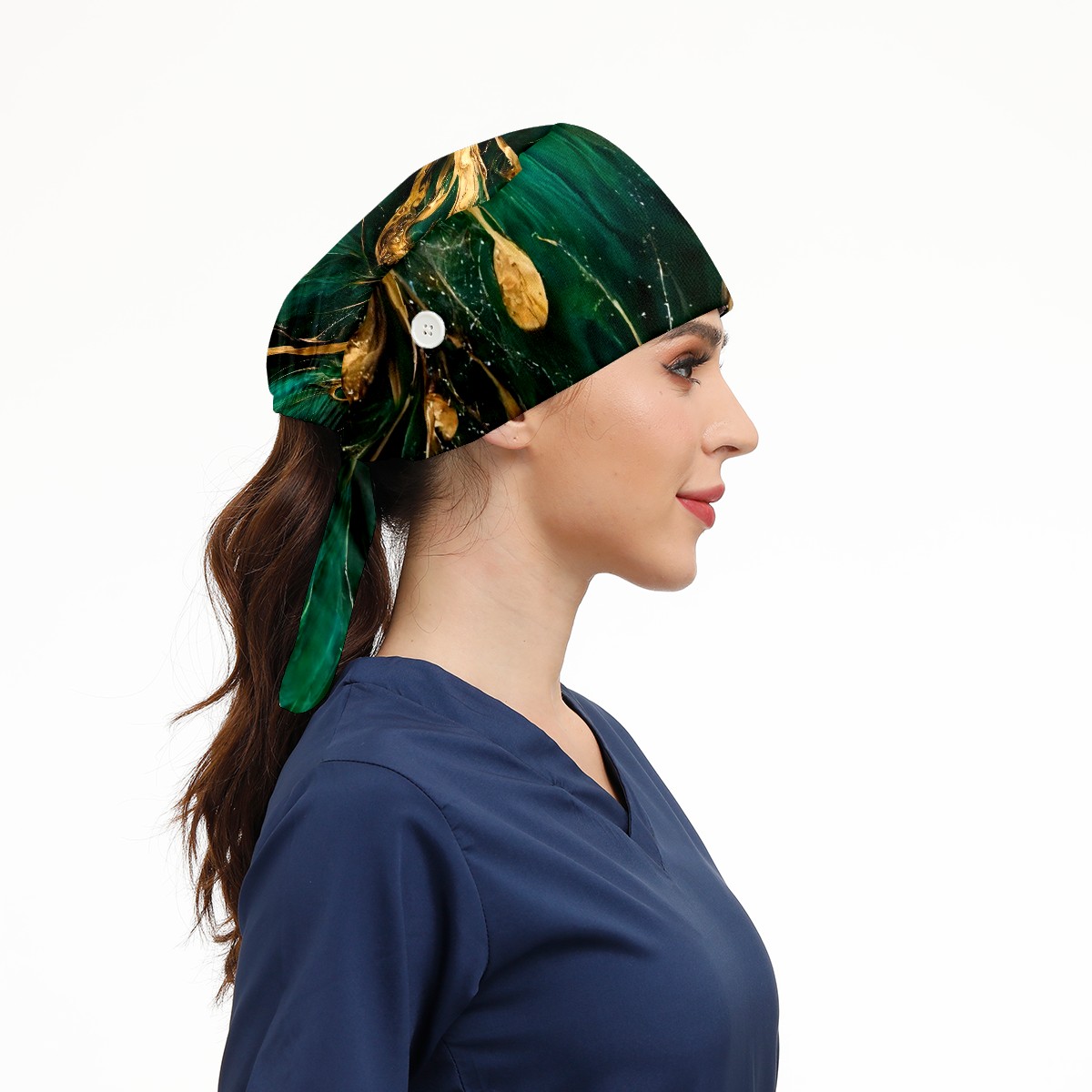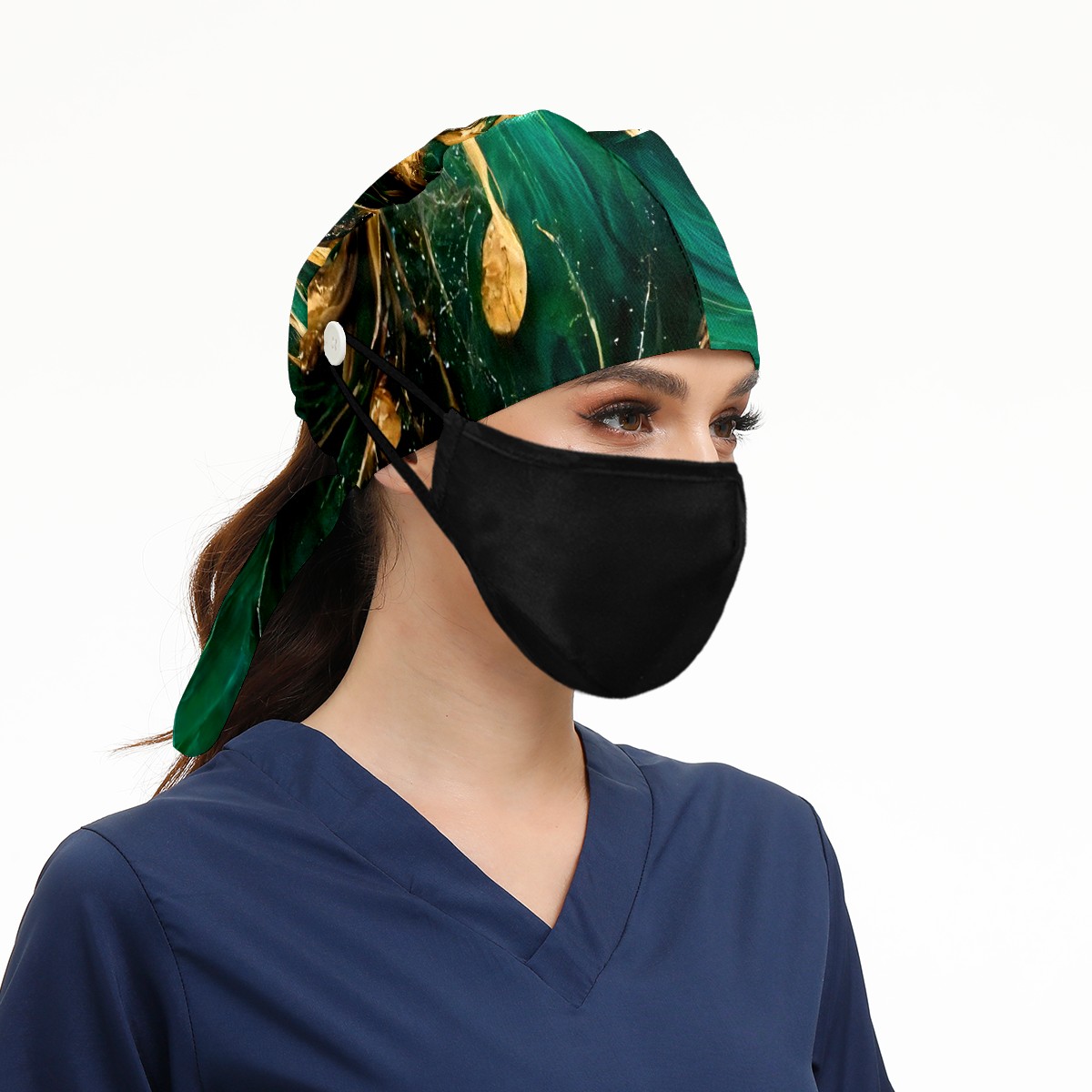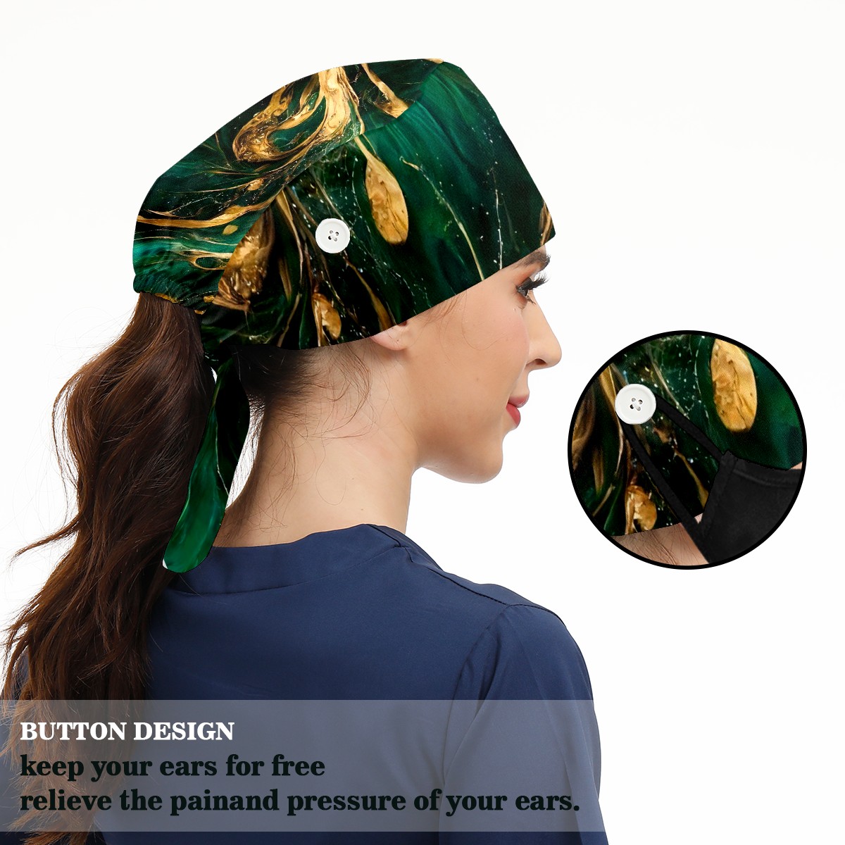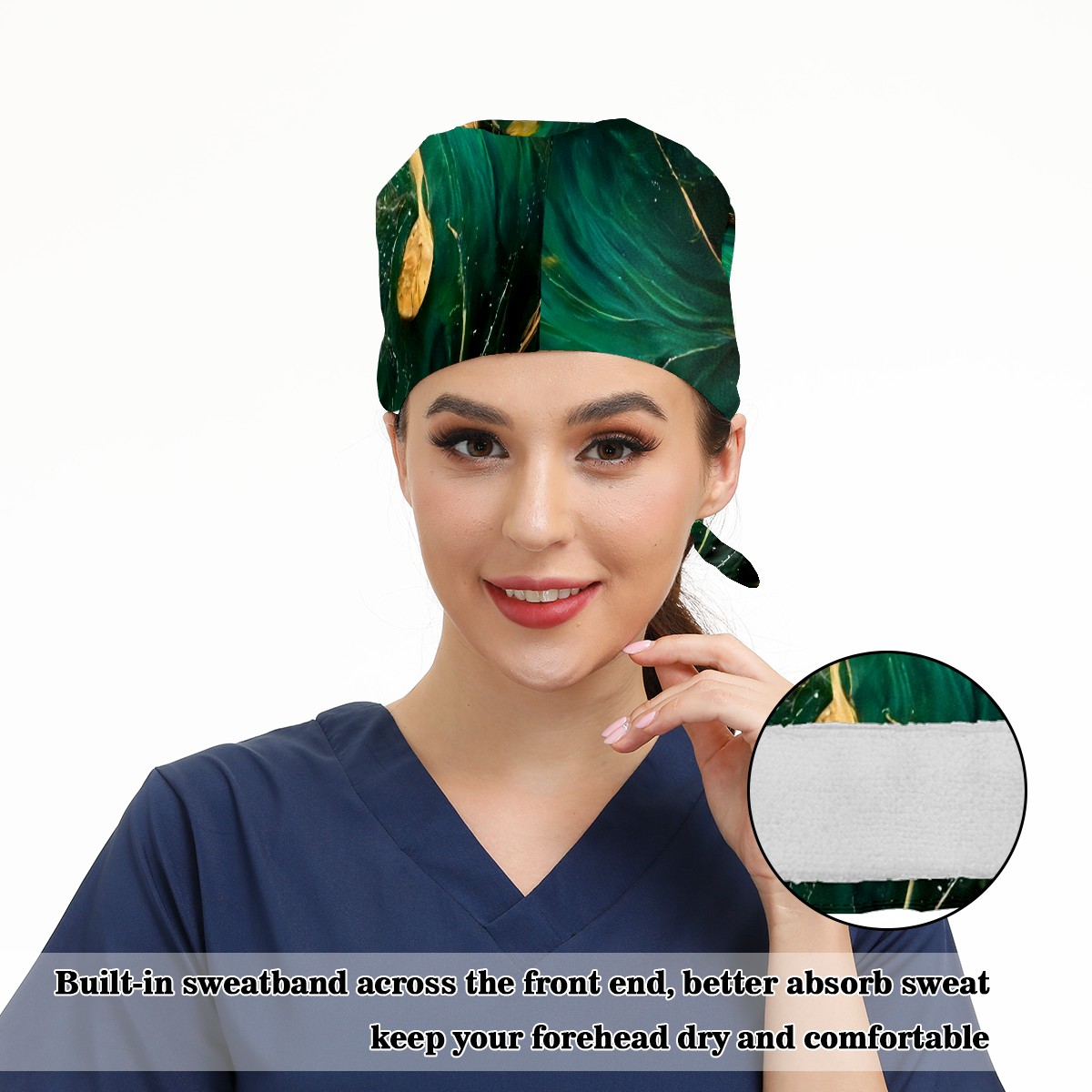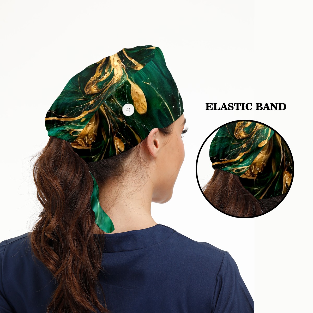 Working Caps with Button & Sweatband Satin Lined Cotton Adjustable Nurse Hats Elastic Band Scrub Cap Surgeon Hat Marble Grain