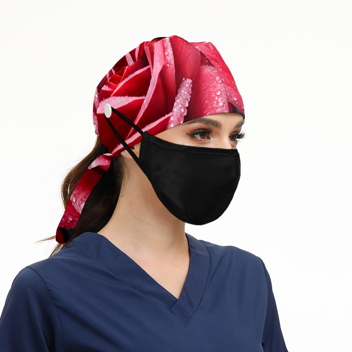 Working Caps with Button & Sweatband Satin Lined Cotton Adjustable Nurse Hats Elastic Band Scrub Cap Surgeon Hat Rose